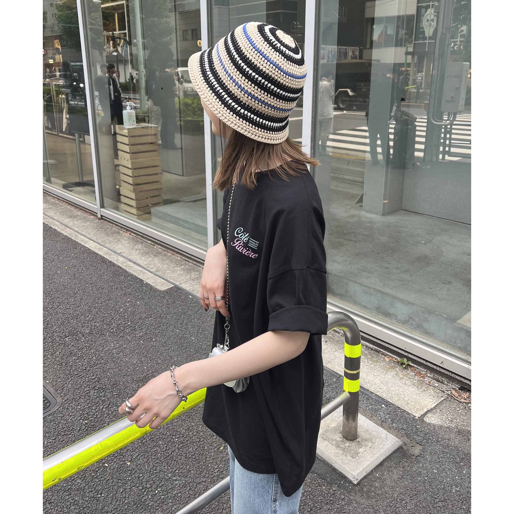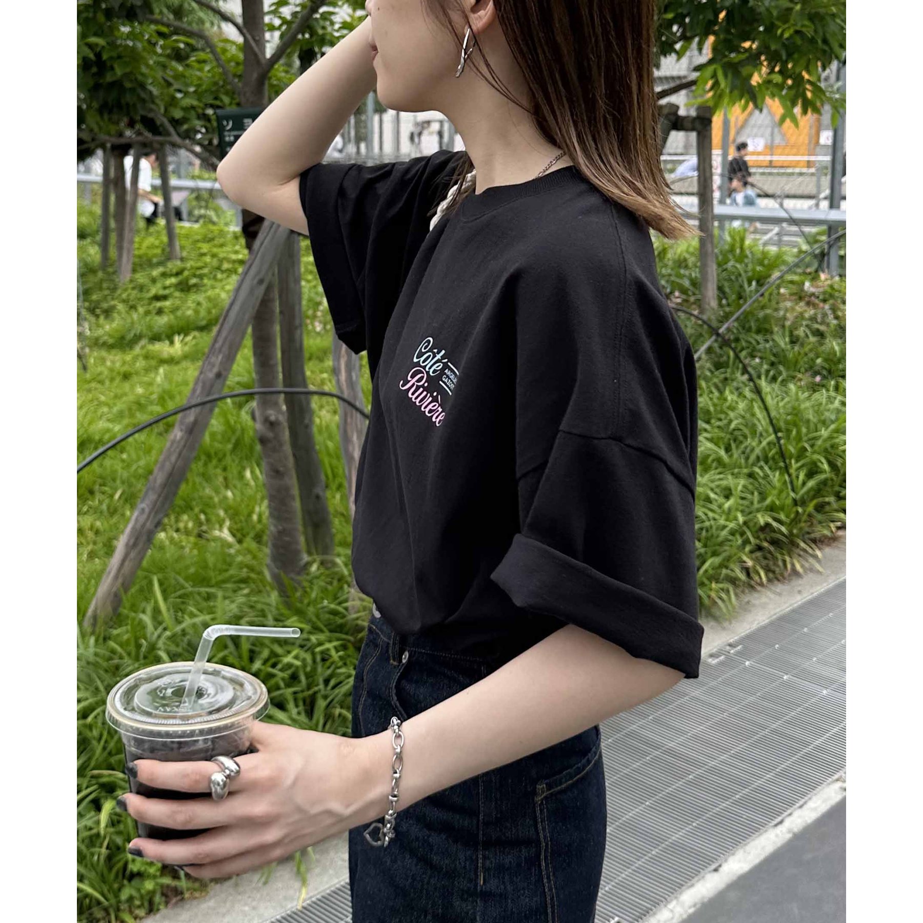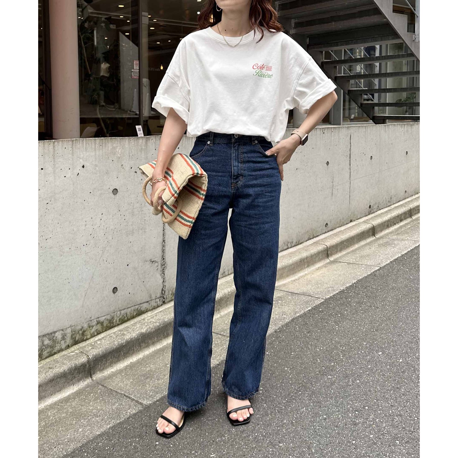 162cmレディーススタッフ:シンプルなボトムと合わせても映えるデザインなので、1枚でコーデが決まります。袖をロールアップして抜け感を出すのもおすすめです!