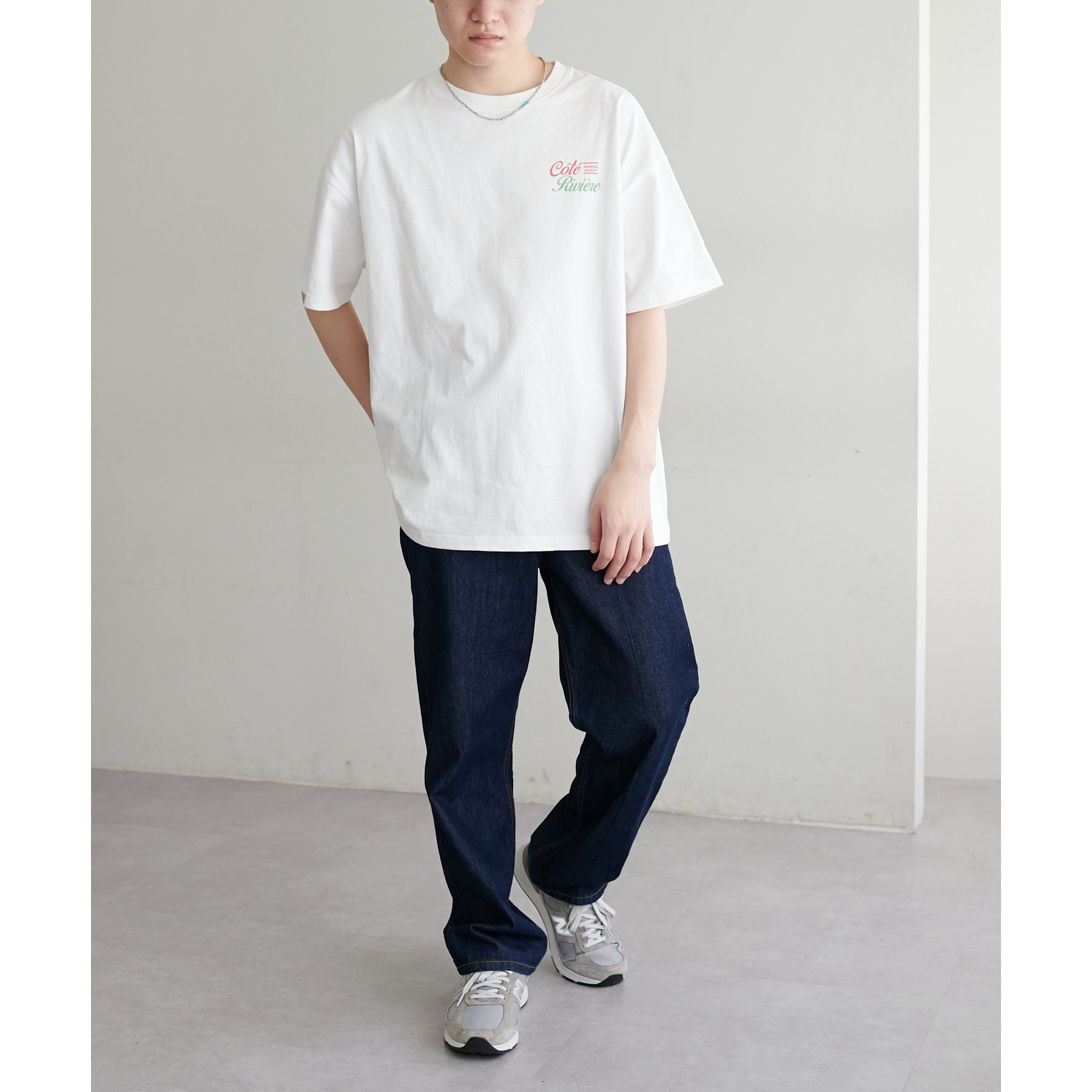 男女ともに着用可能なユニセックスデザインは一枚着でのオーバーなサイズ感での着用もこなれ感のある着こなしに◎