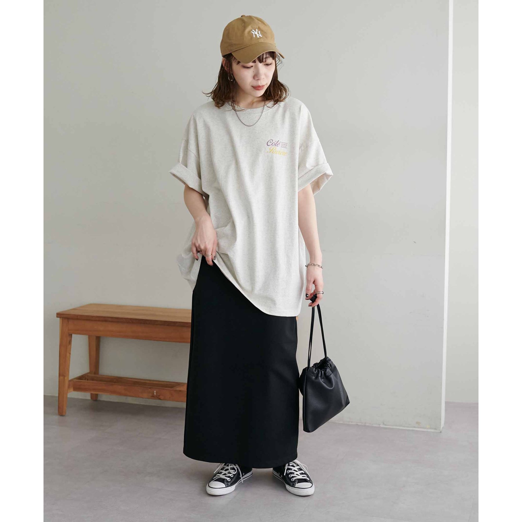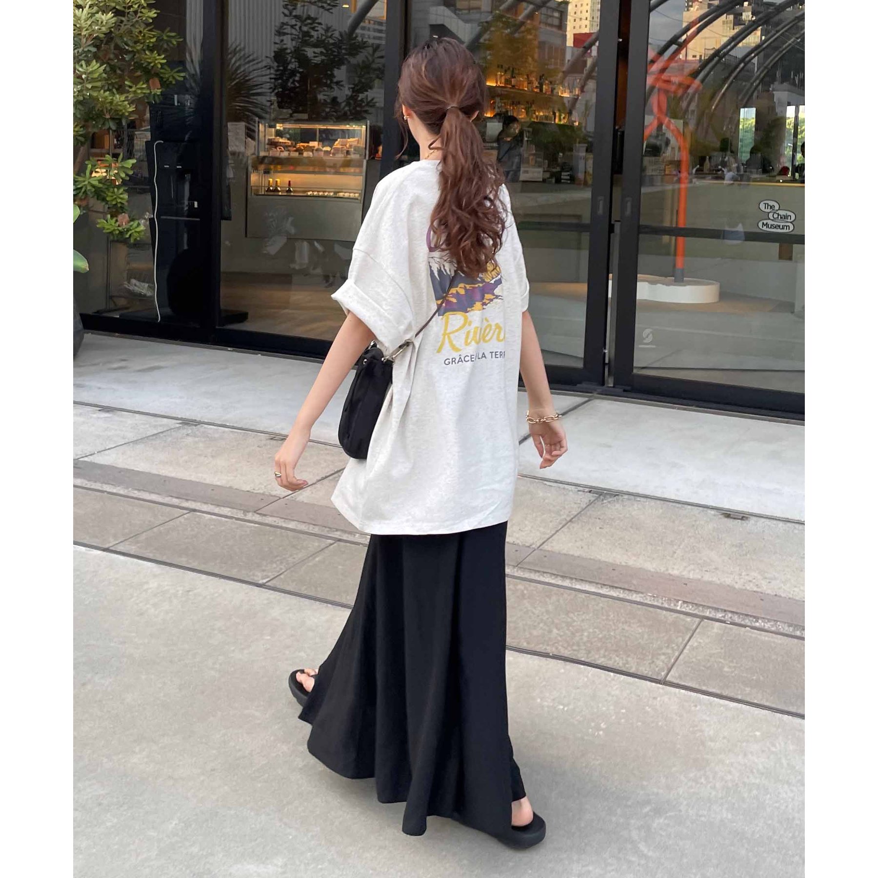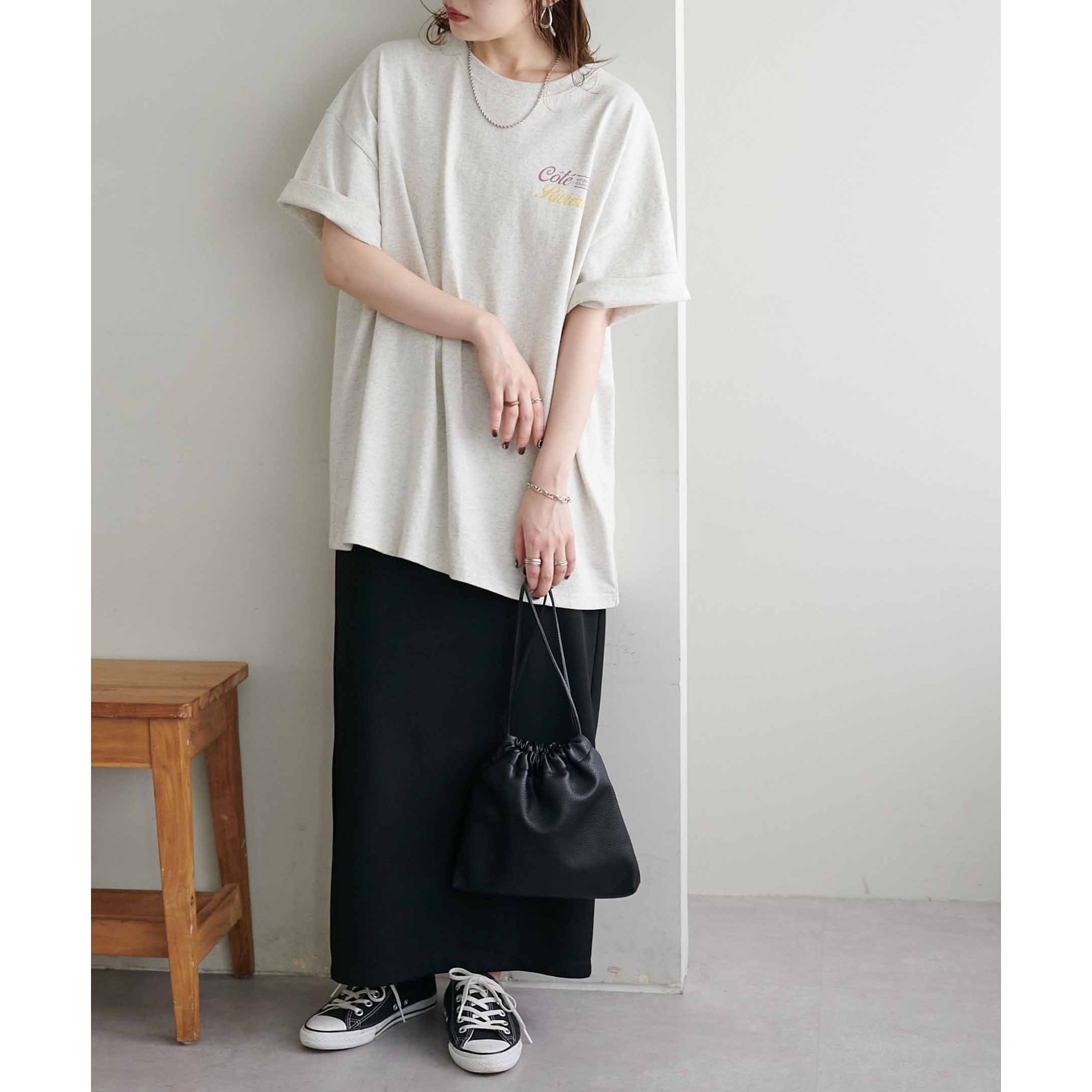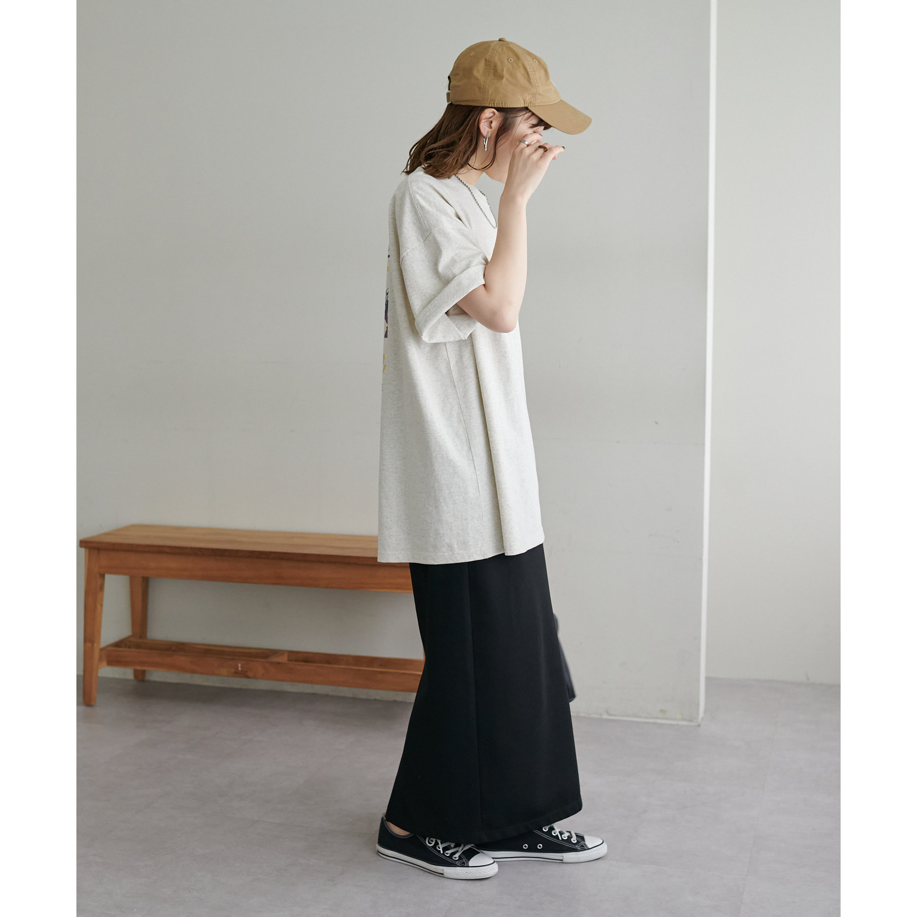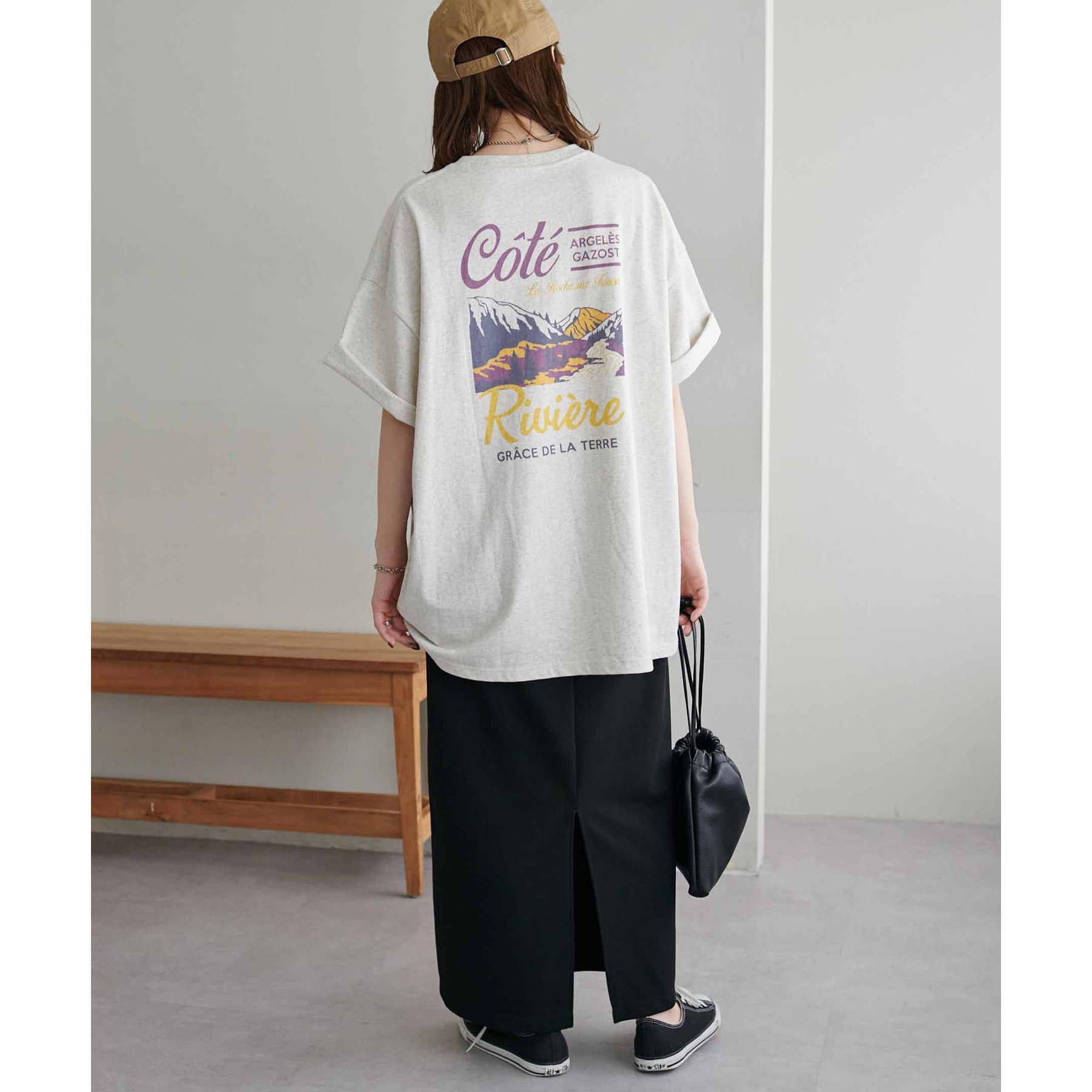 自然なこなれ感を演出するバックプリントTシャツ