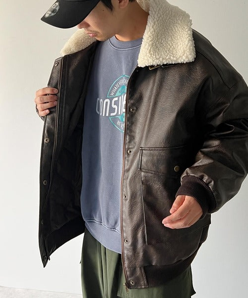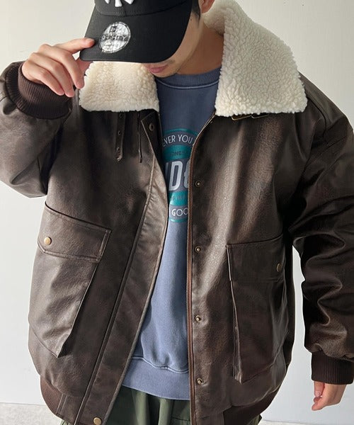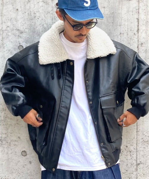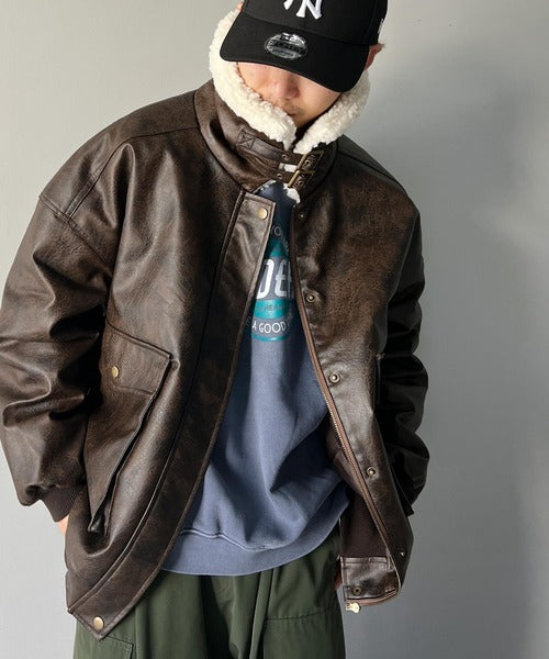 《Javaジャバコラボ》異素材MIXで周りと差がつく。襟ボアレザージャケット jm1010219