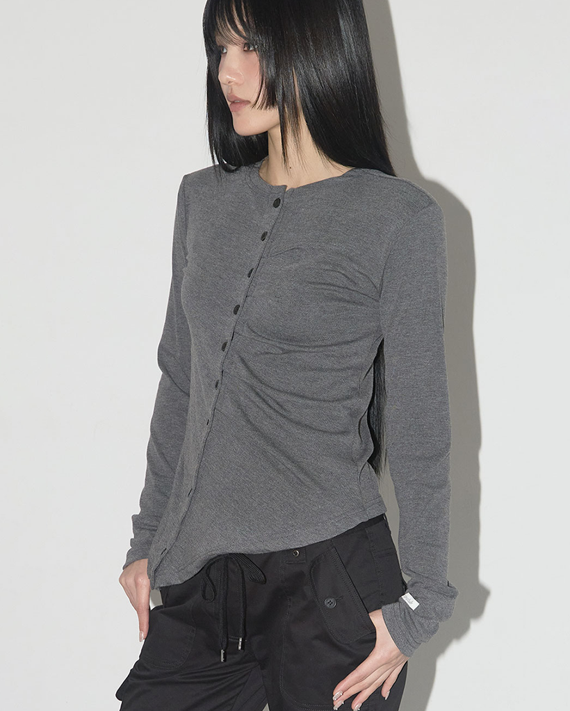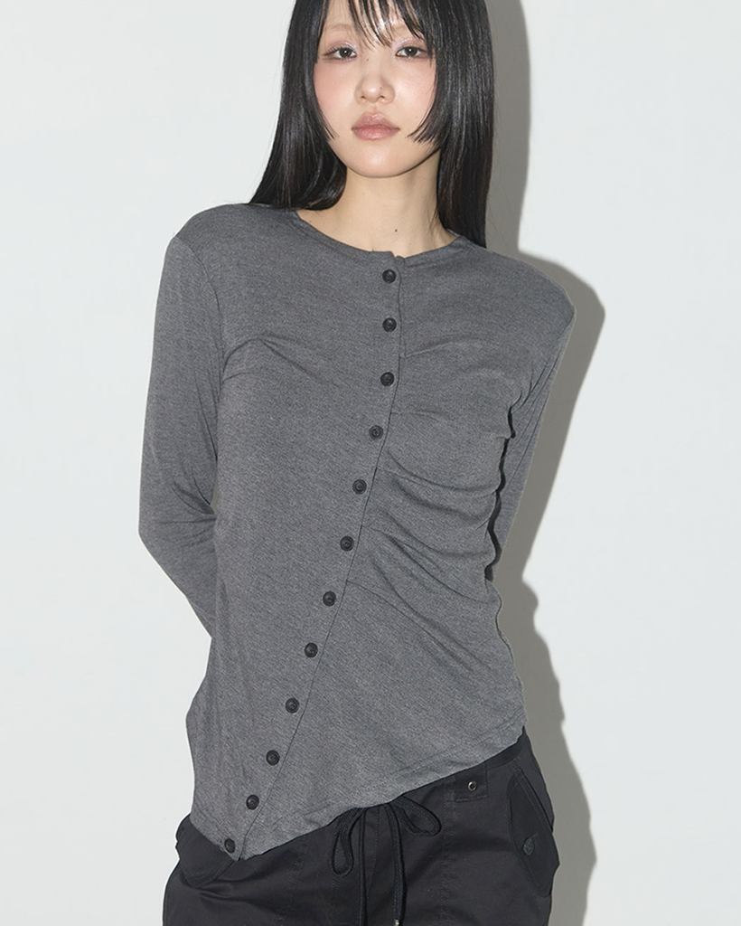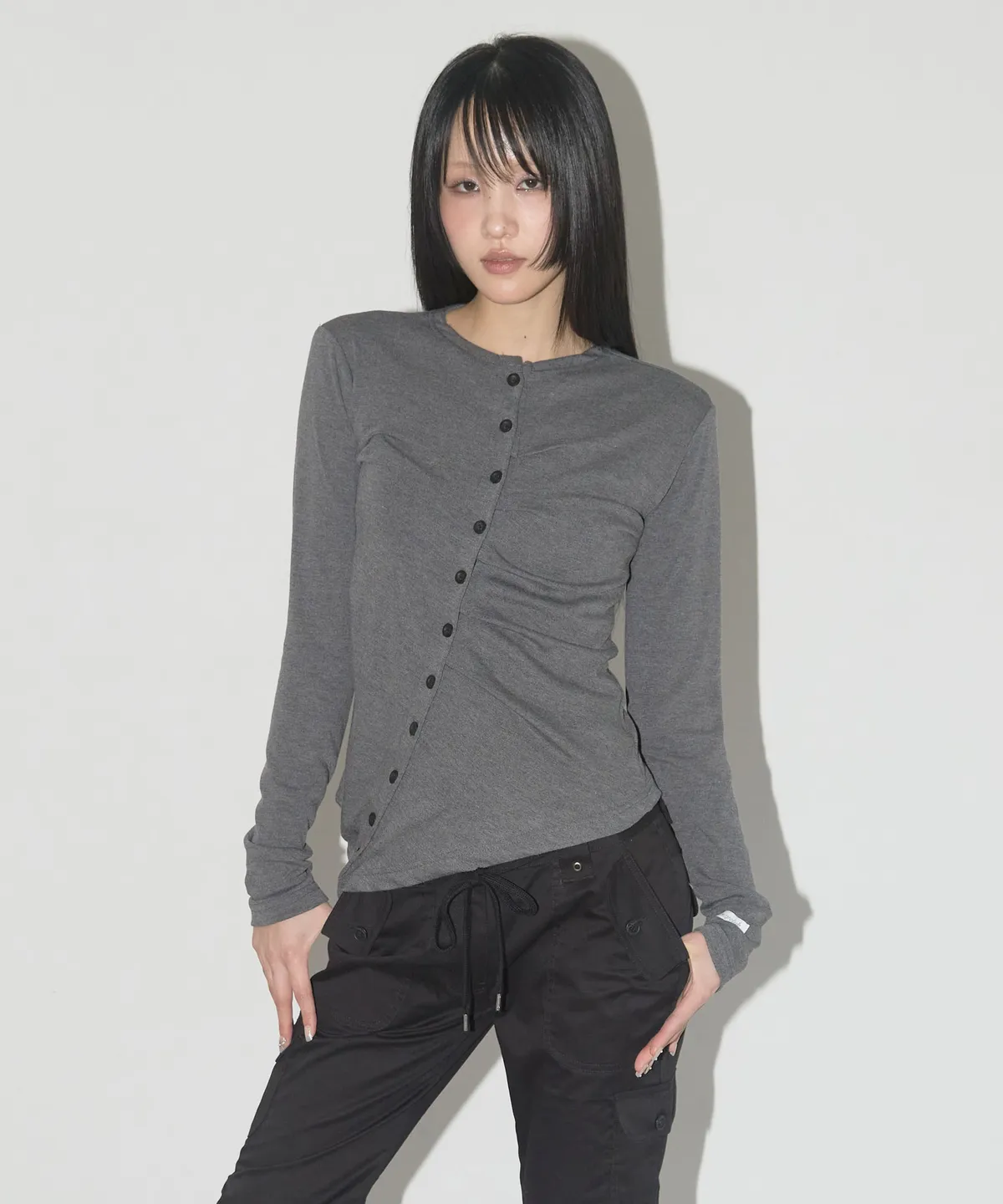 [Influencer pick] Unbalance Shirring Cardigan (Charcoal) F25QB076