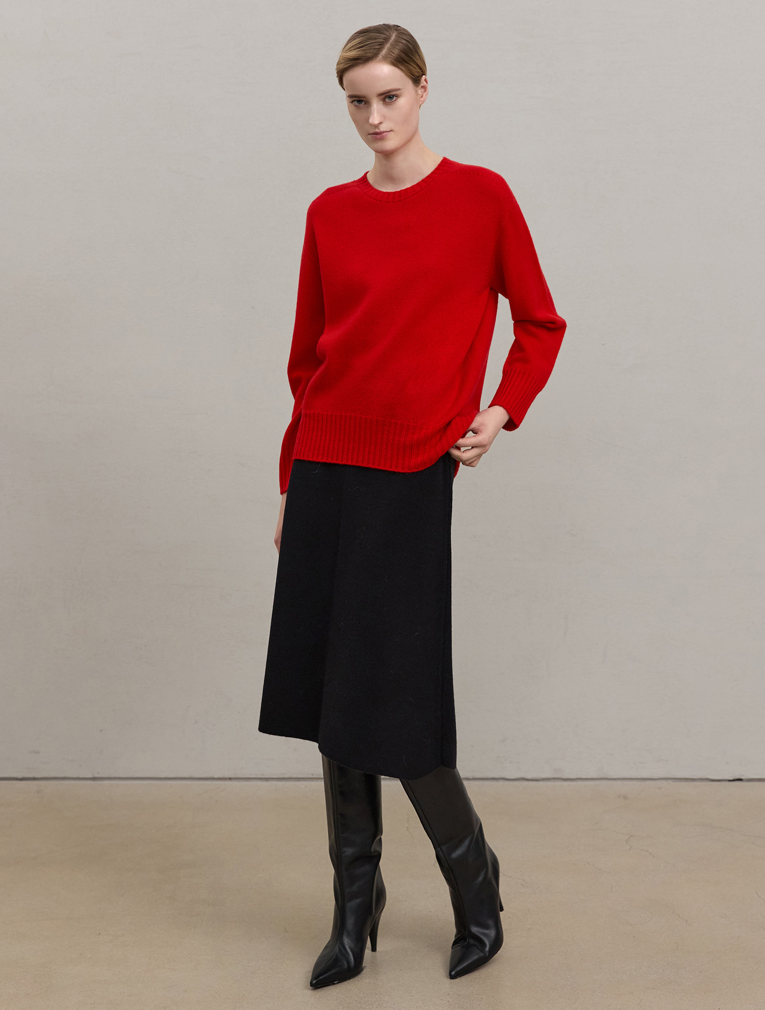 [Cashmere 100%] Wholegarments Round pullover - Red
