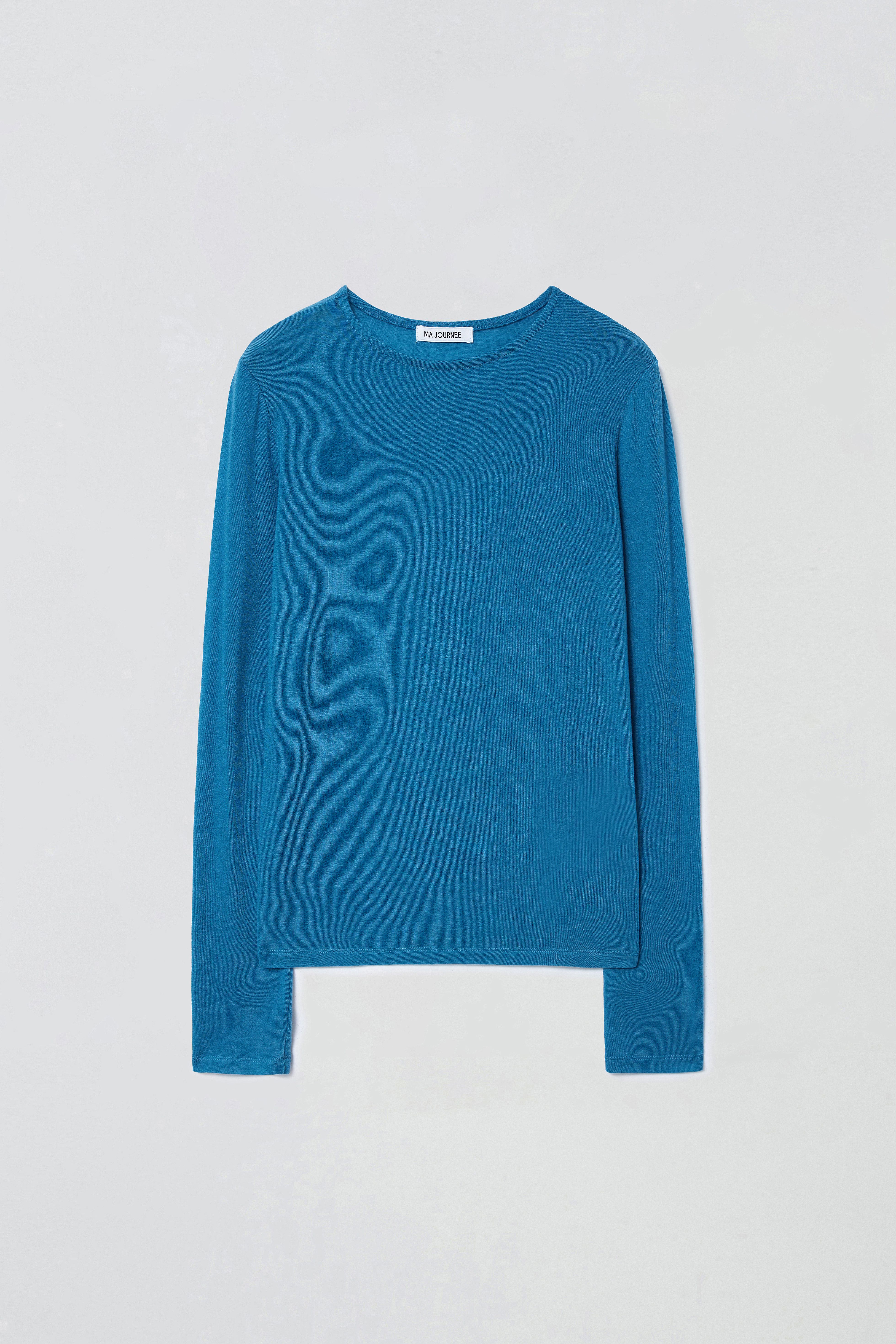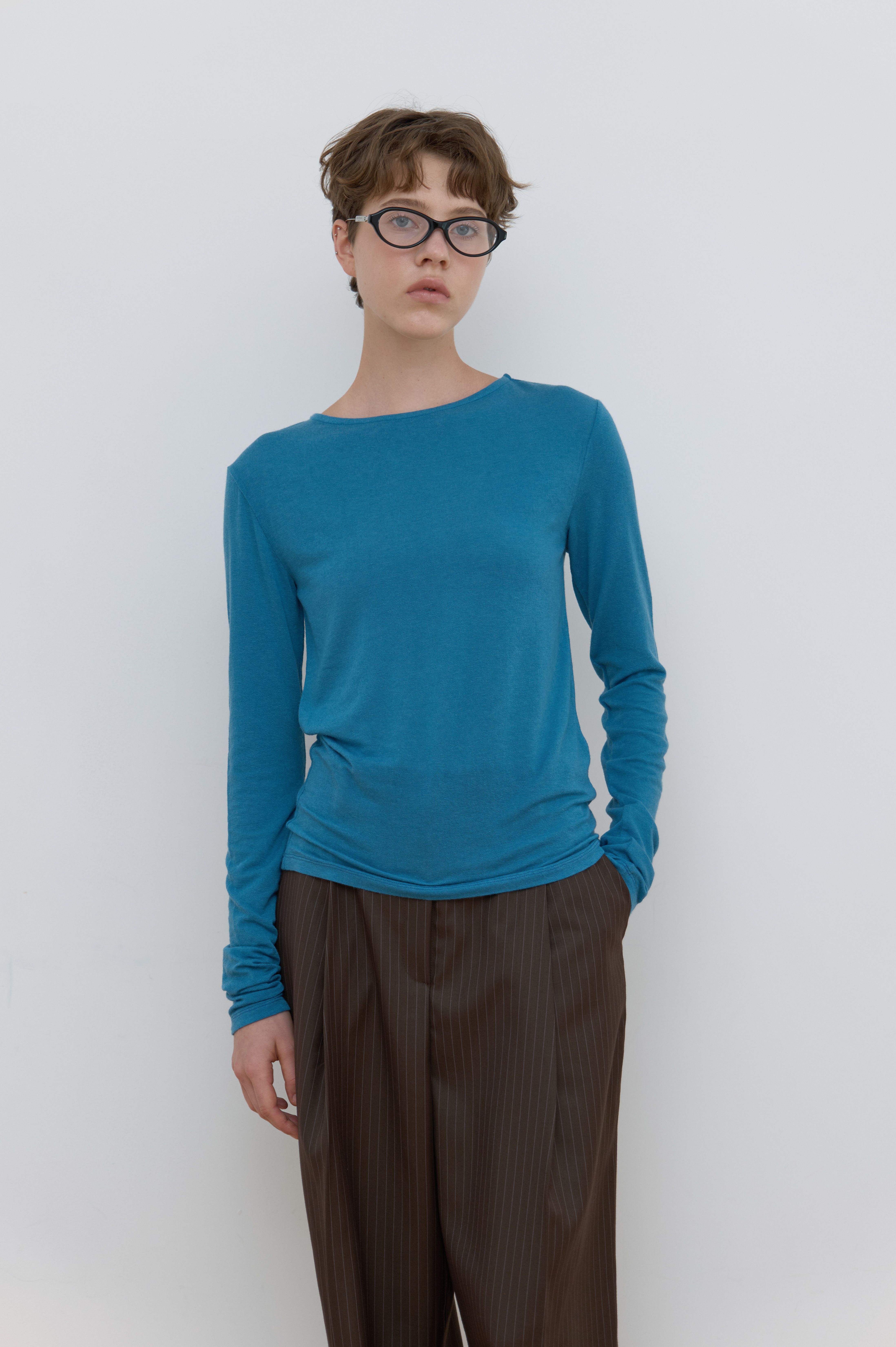 SHEER BOAT NECK TOP_DUST BLUE