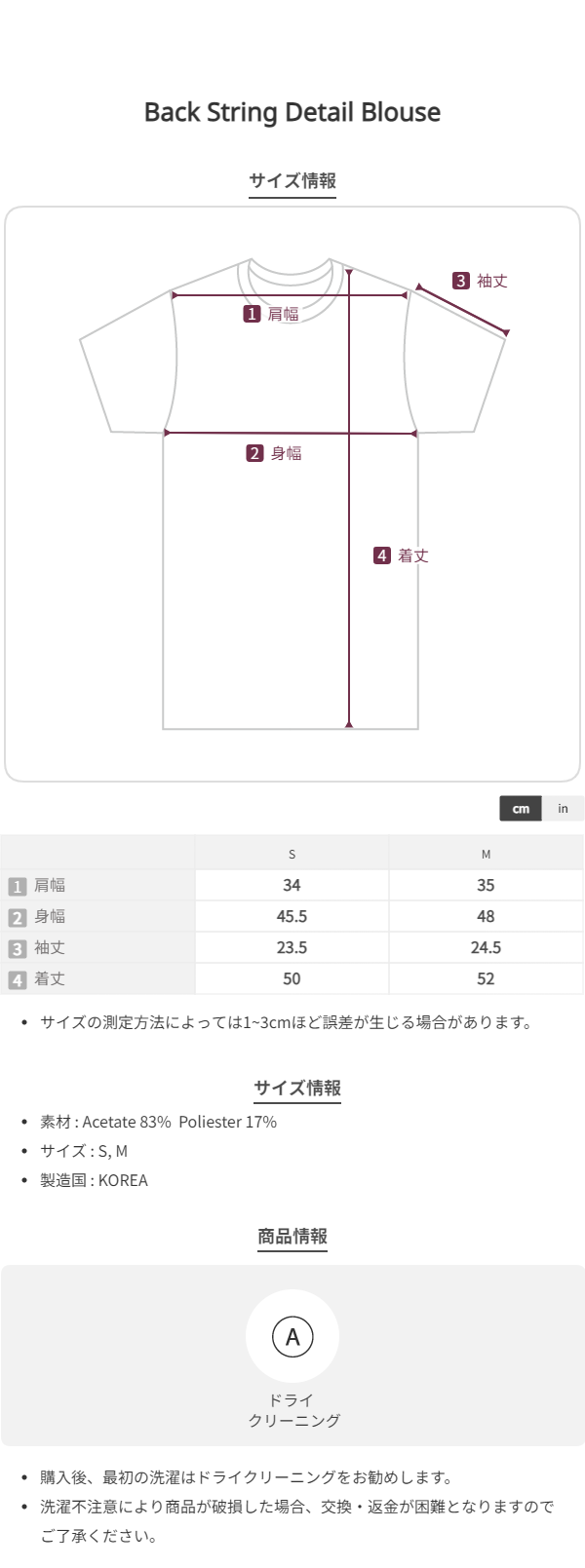 | 소재 | 아세테이트 83%, 폴리에스테르 17% |