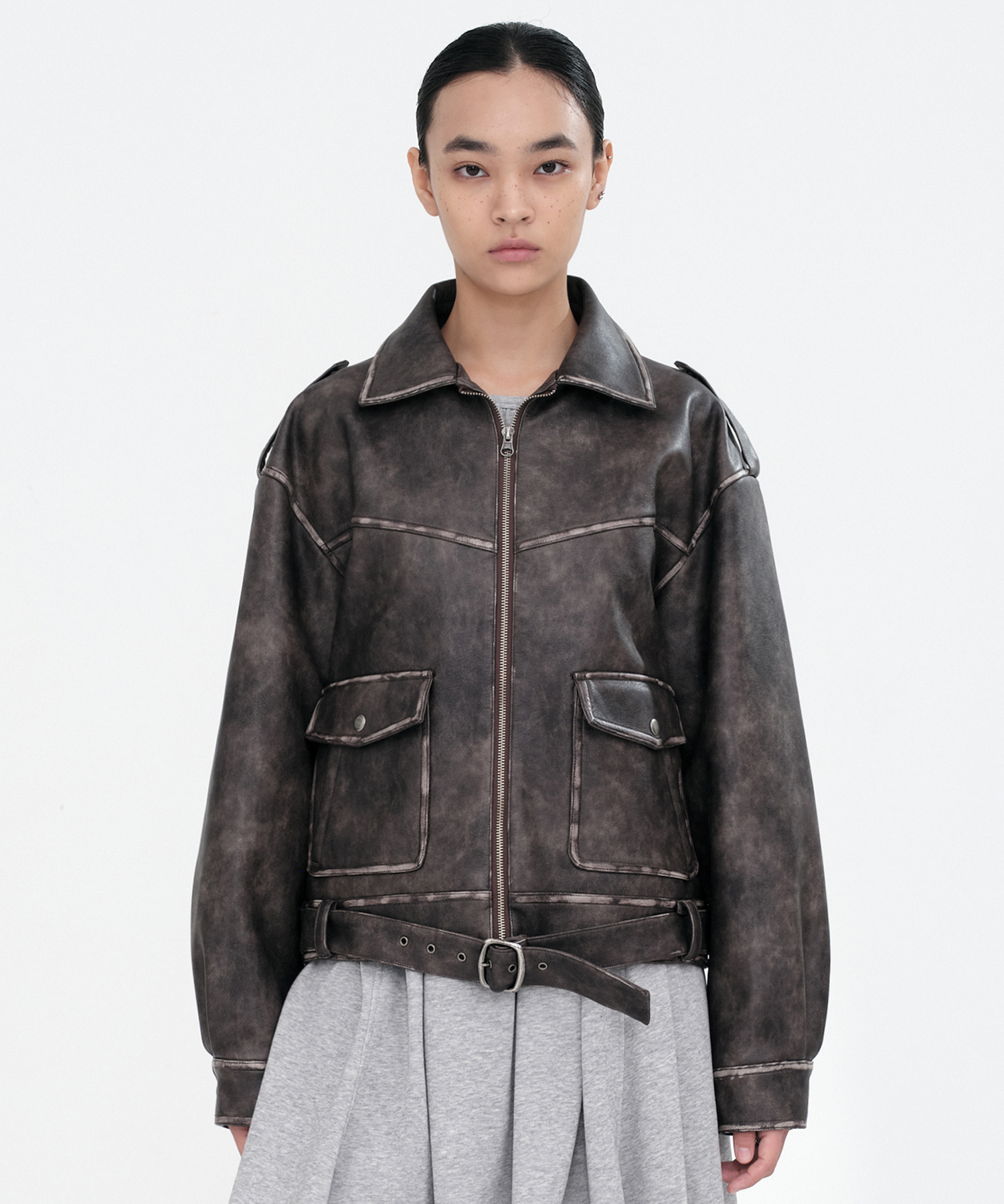 Belted Leather Jacket [Brown]