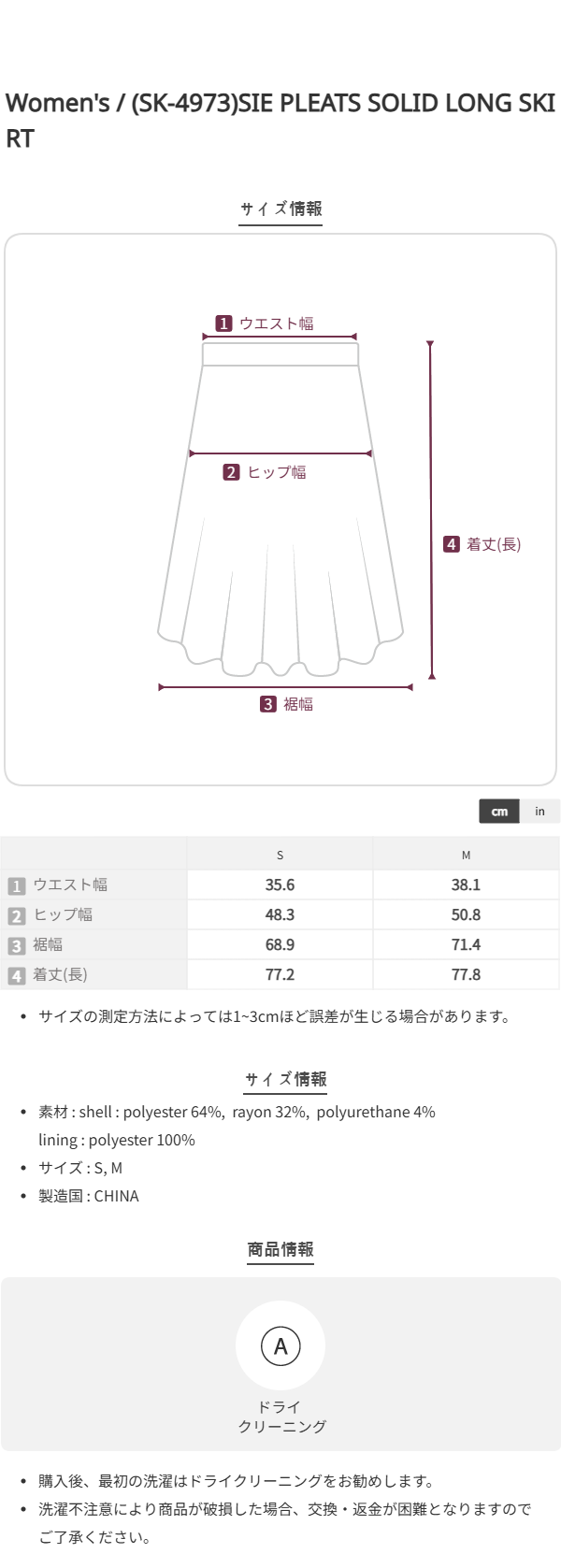 (SK-4973)SIE PLEATS SOLID LONG SKIRT