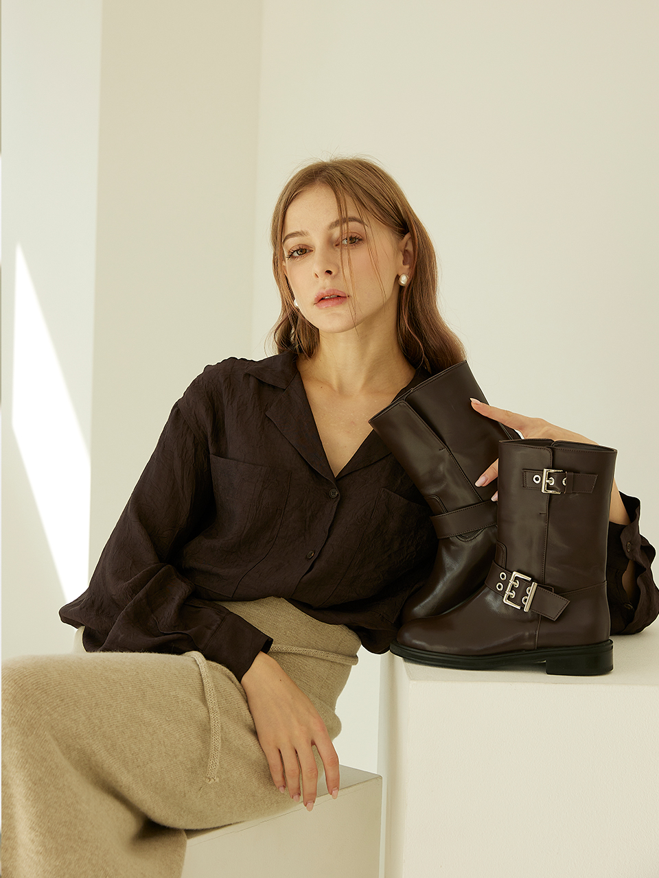 [Influencer pick]MD1121b Buckle Point Biker Boots_Wine Brown