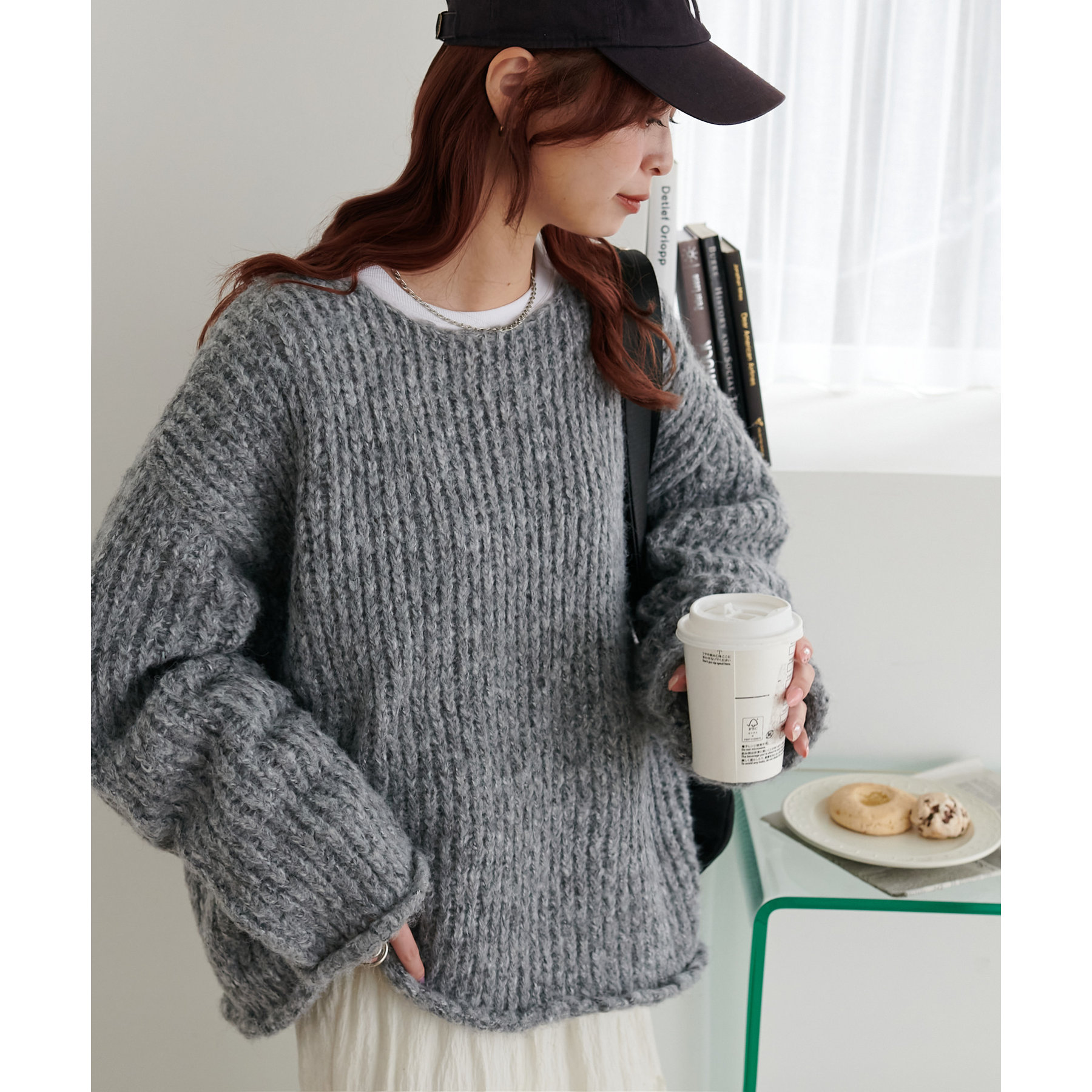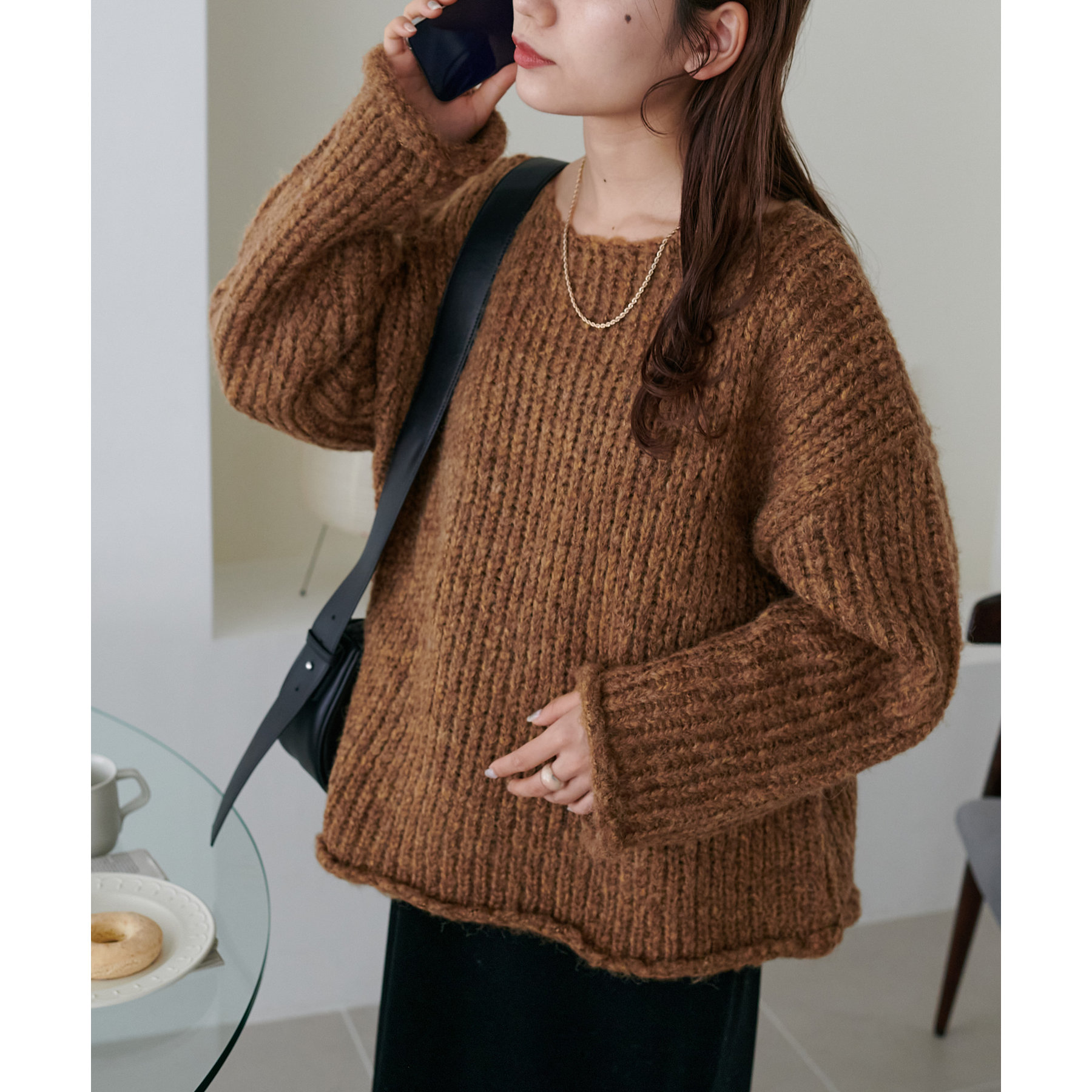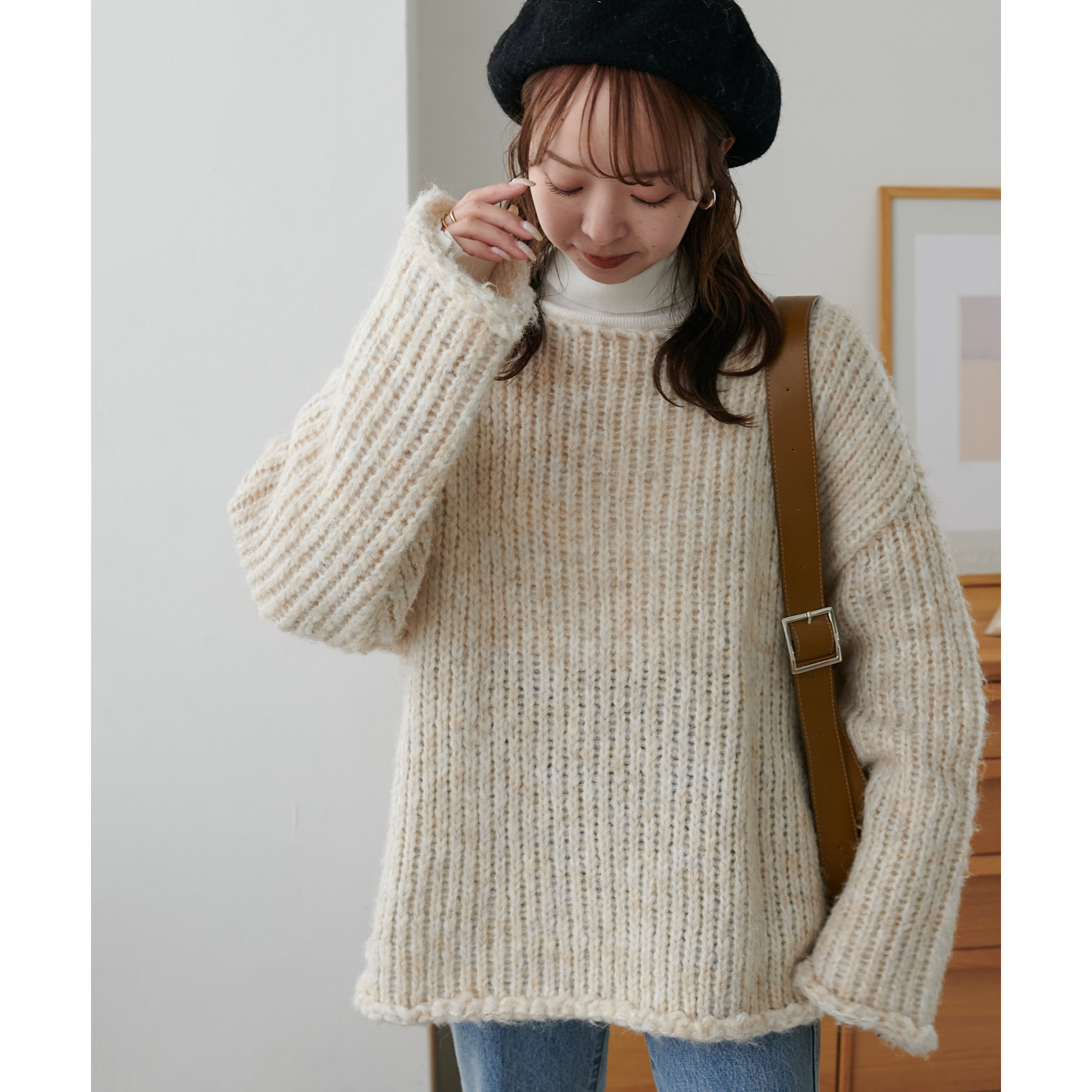 立体感のある手編み風のニットで柔らかな印象を楽しめるニット!