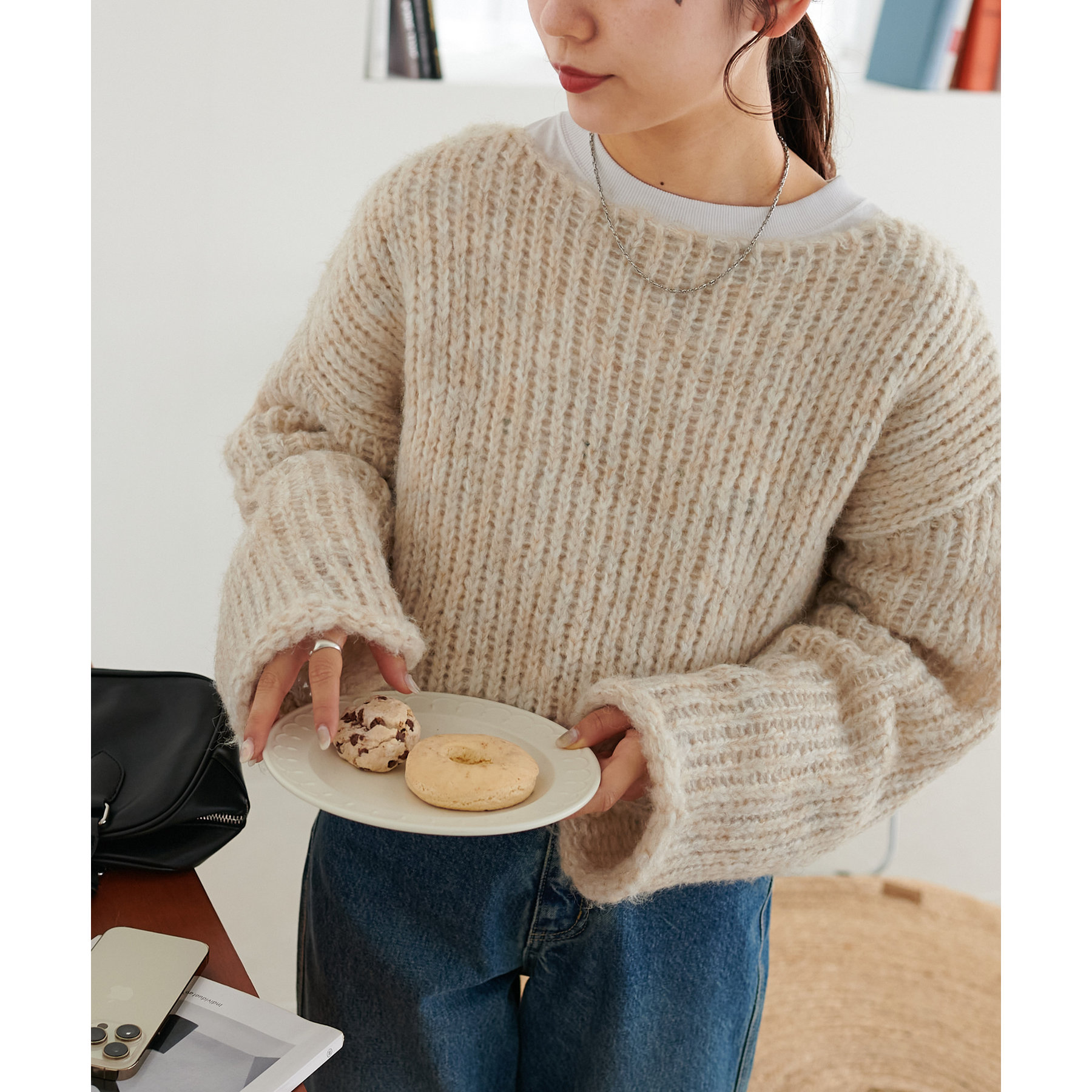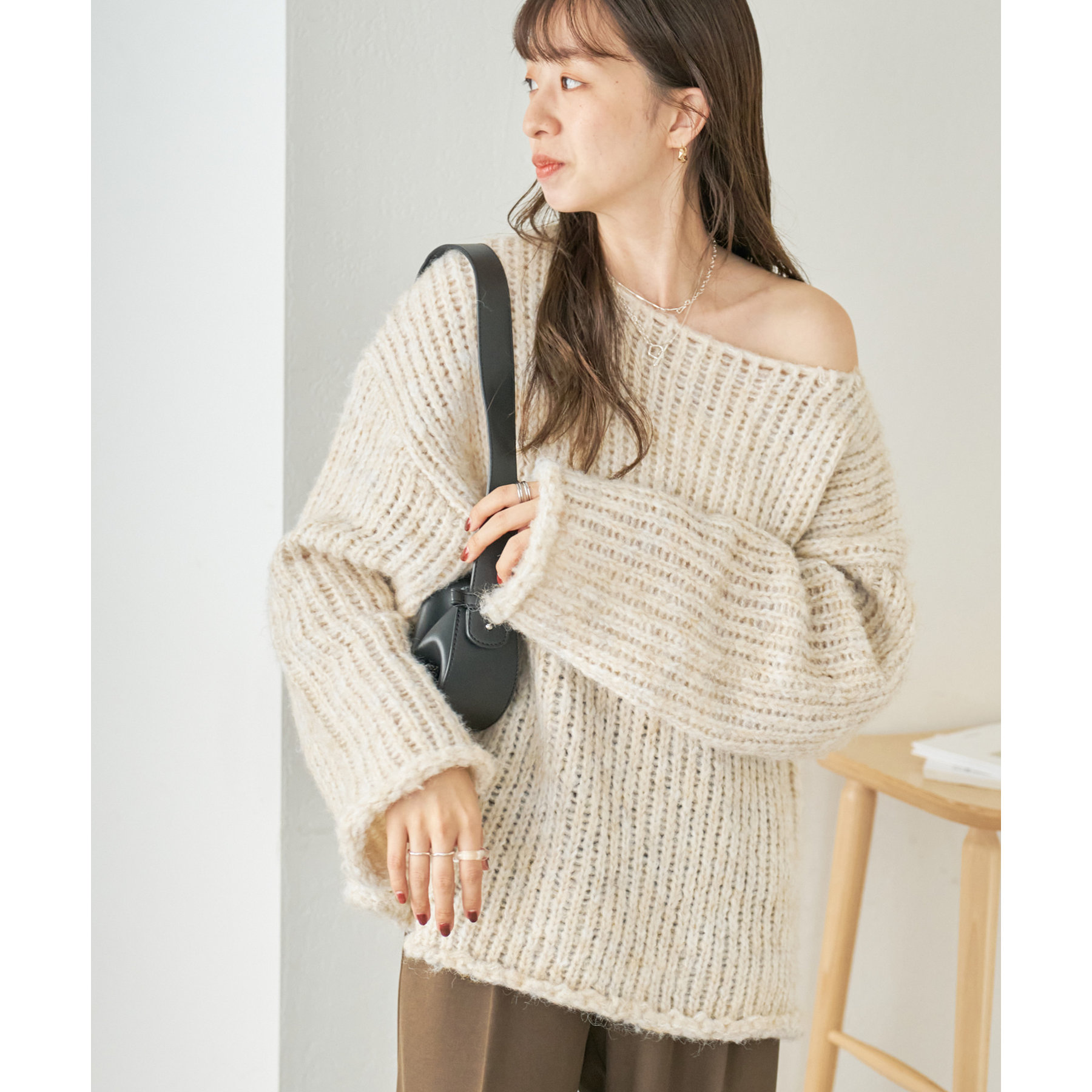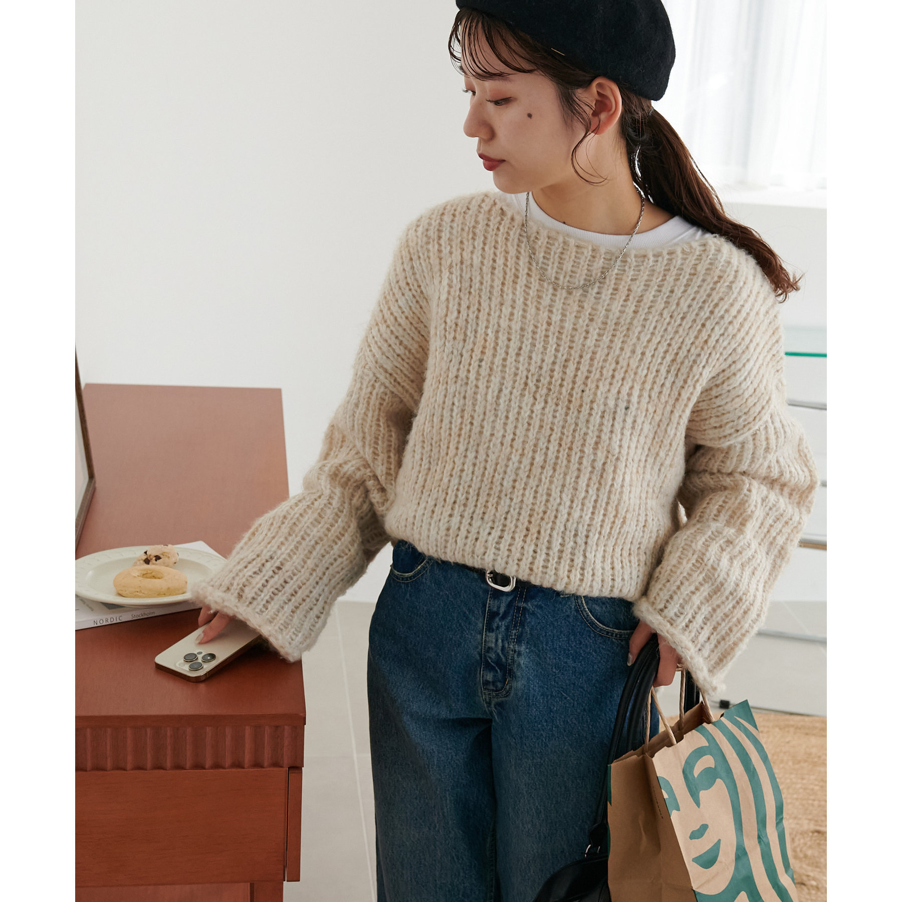 立体感のある手編み風のニットで柔らかな印象を楽しめるニット!