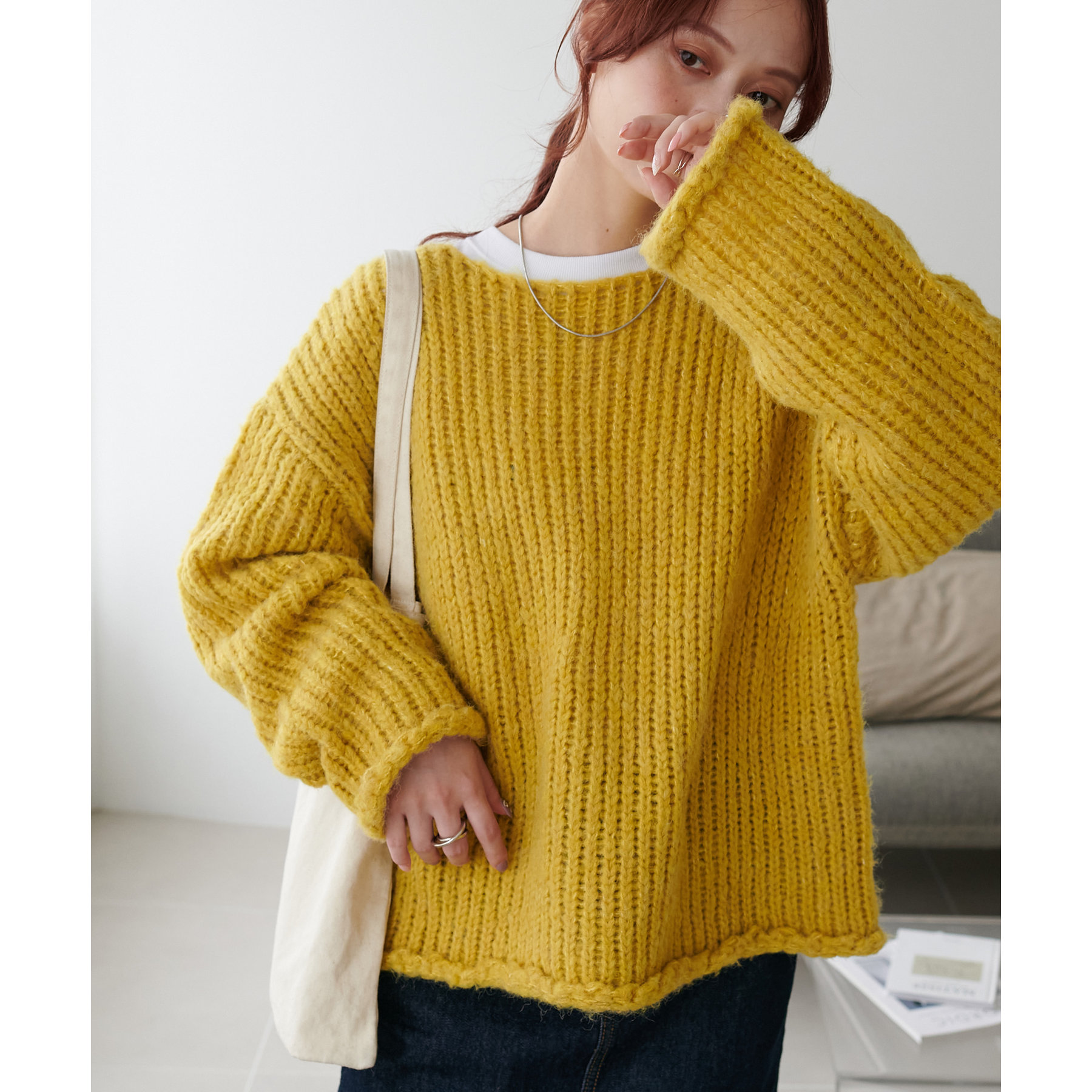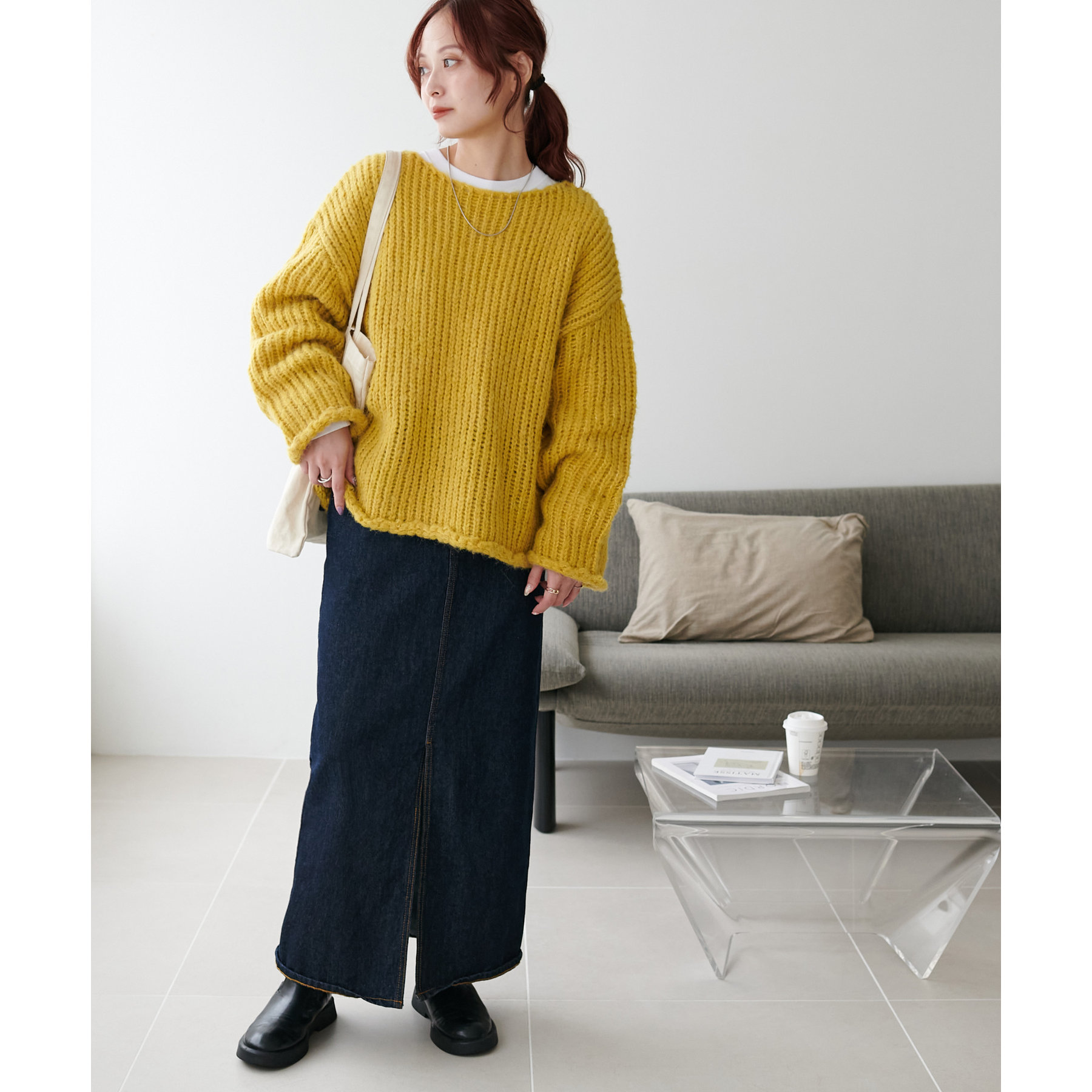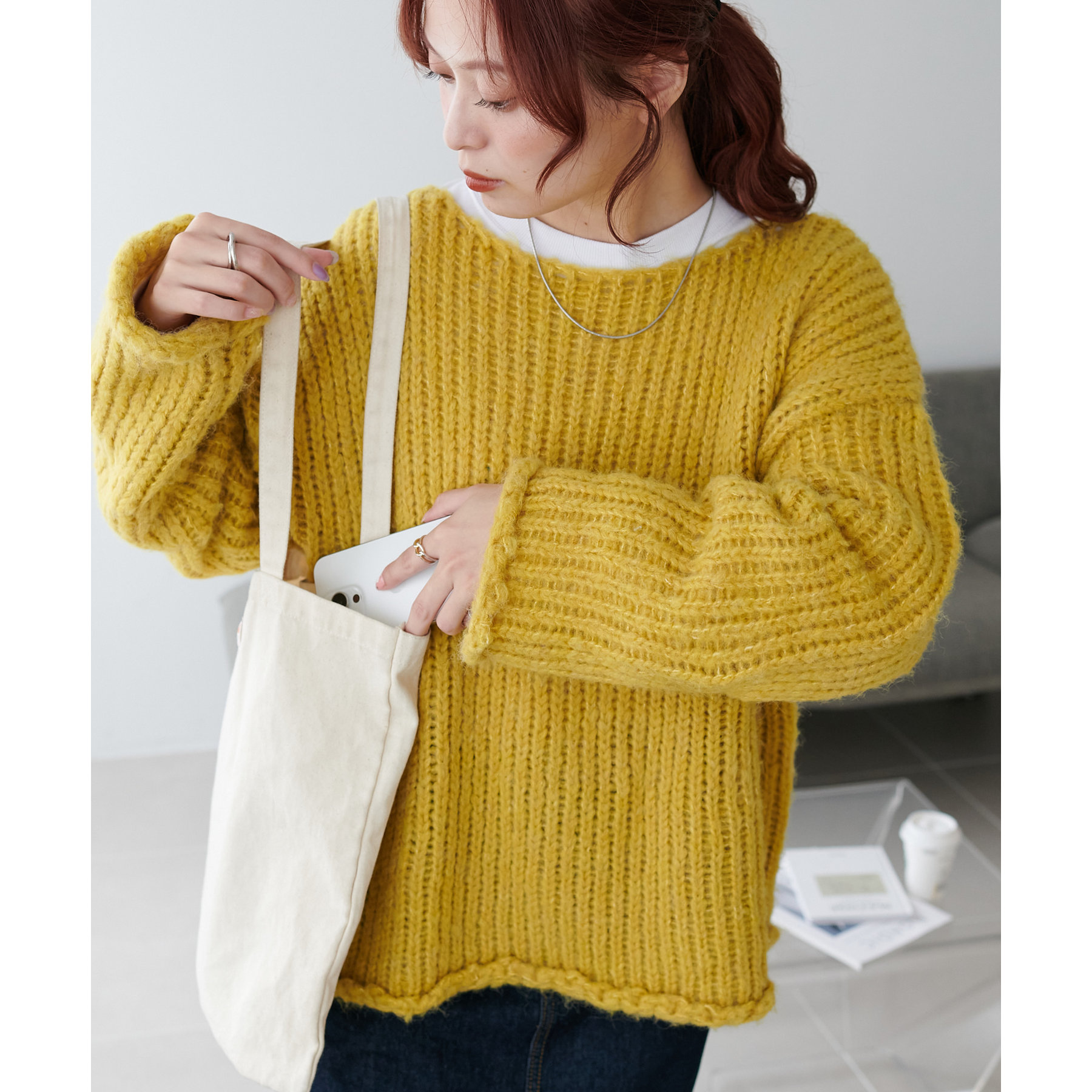 149cmスタッフ:ゆったりとした身幅のニットですが、裾がくるんとしていることで重たく見えにくいです〇