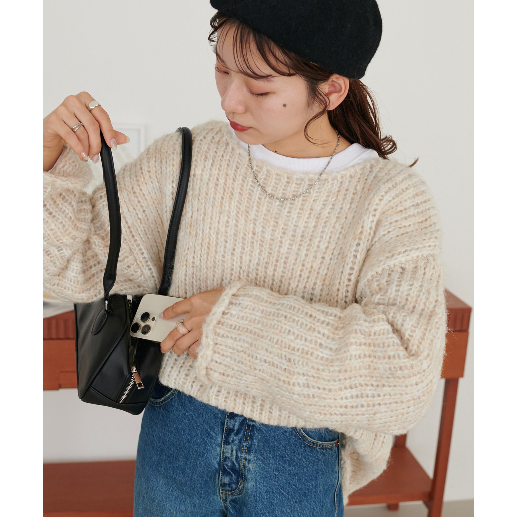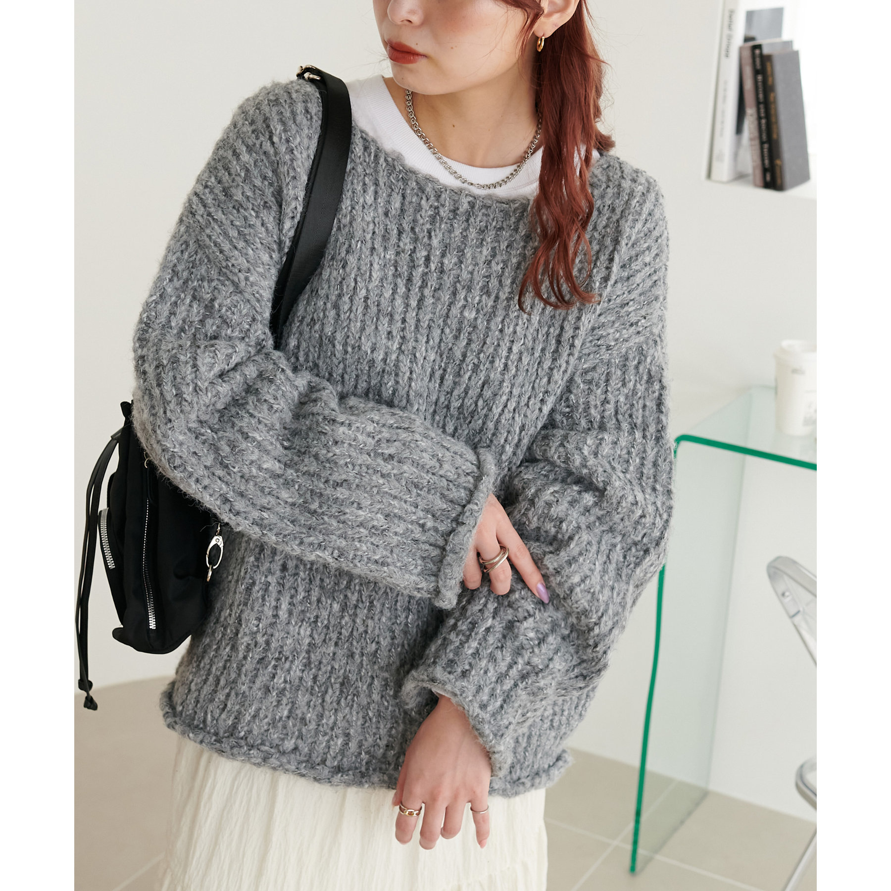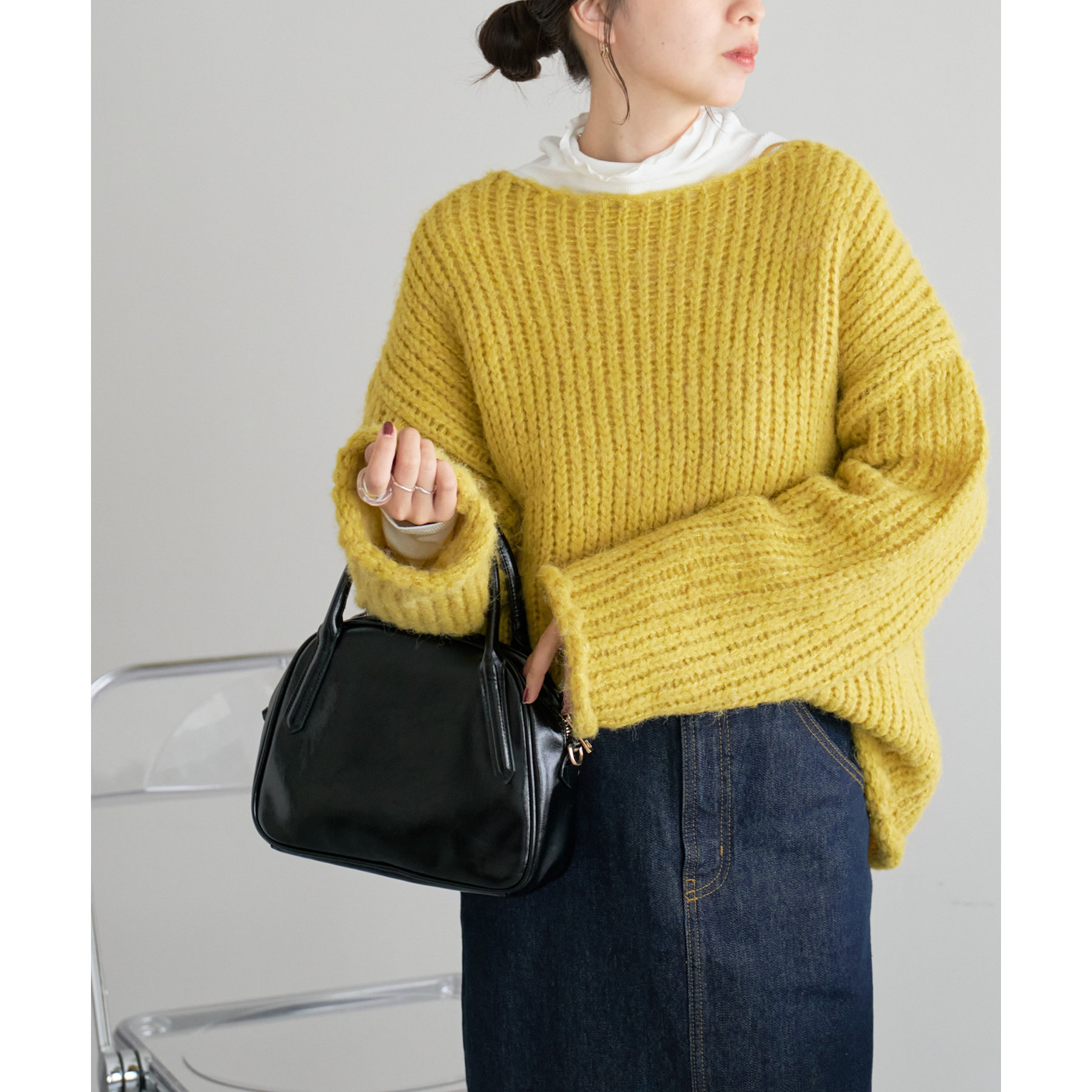 149cmスタッフ:ゆったりとした身幅のニットですが、裾がくるんとしていることで重たく見えにくいです〇