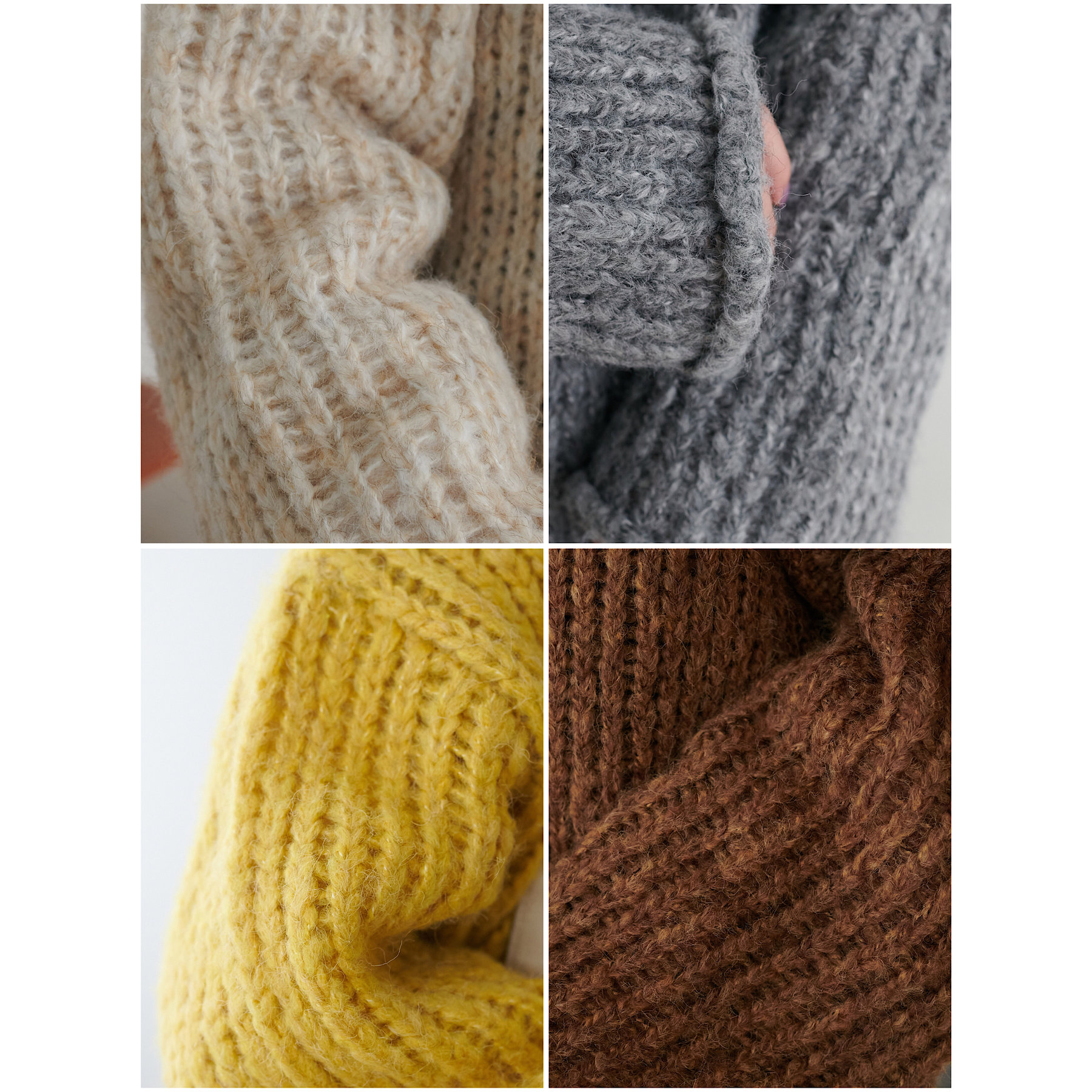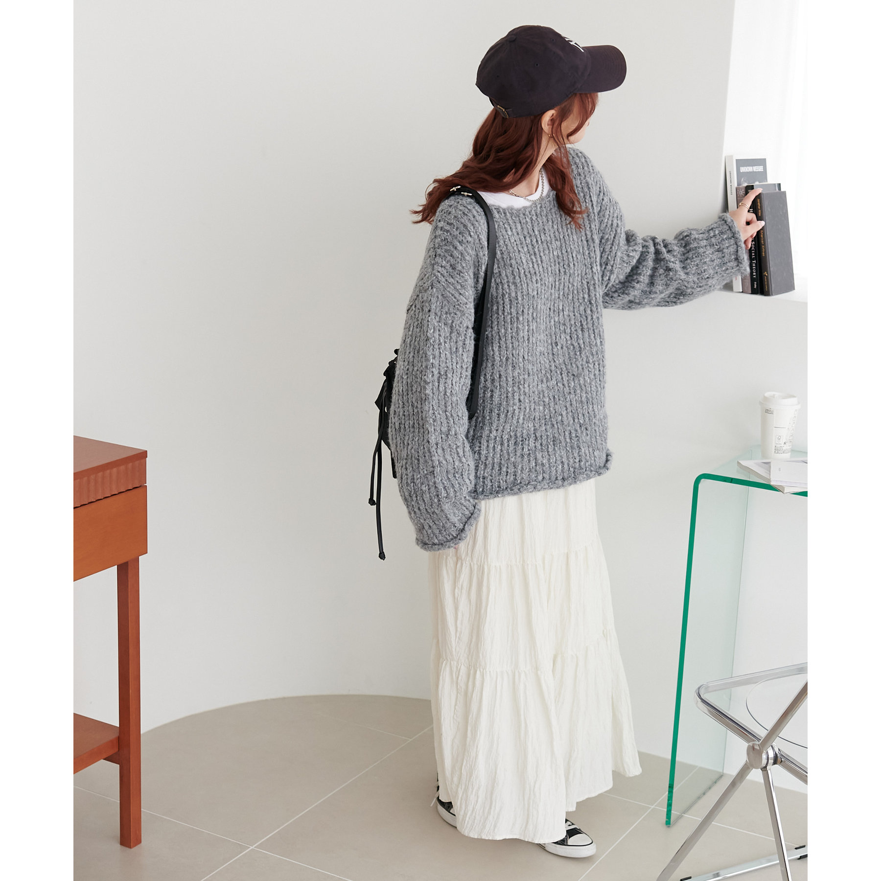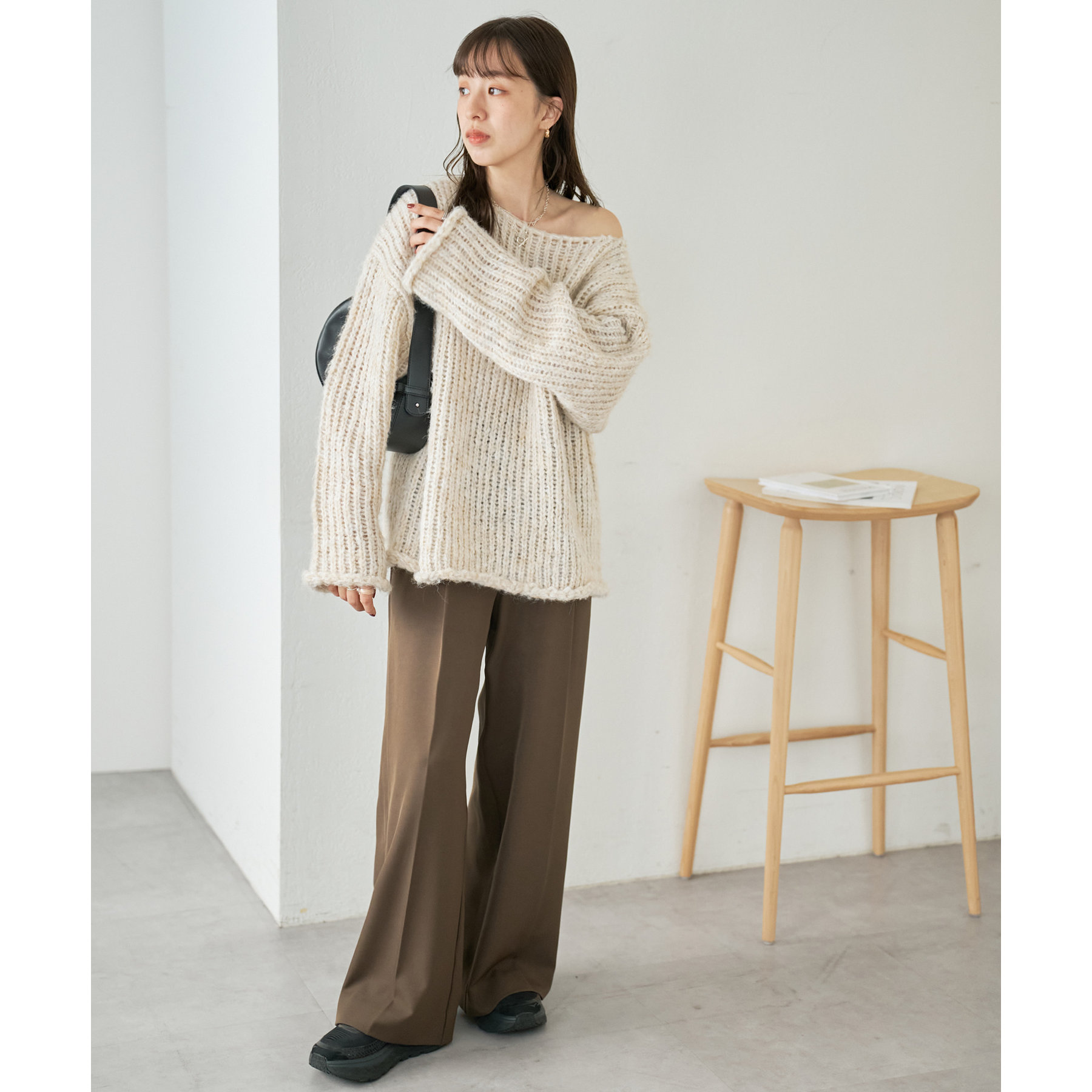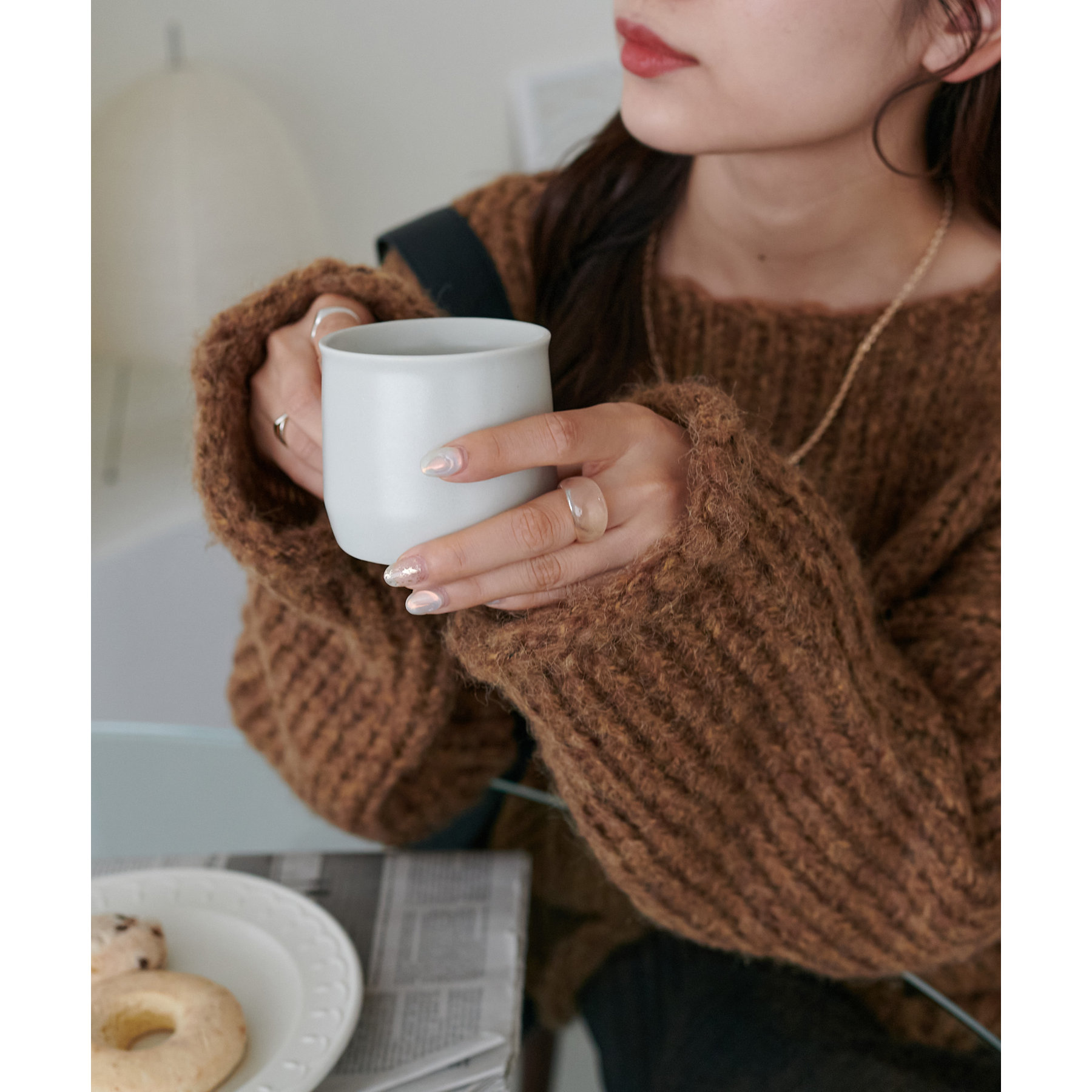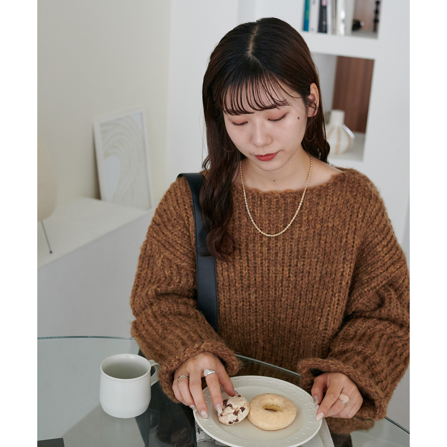 着丈は長めなので、腰回りをカバー。ボリューム感のあるニットが女性らしい雰囲気に〇