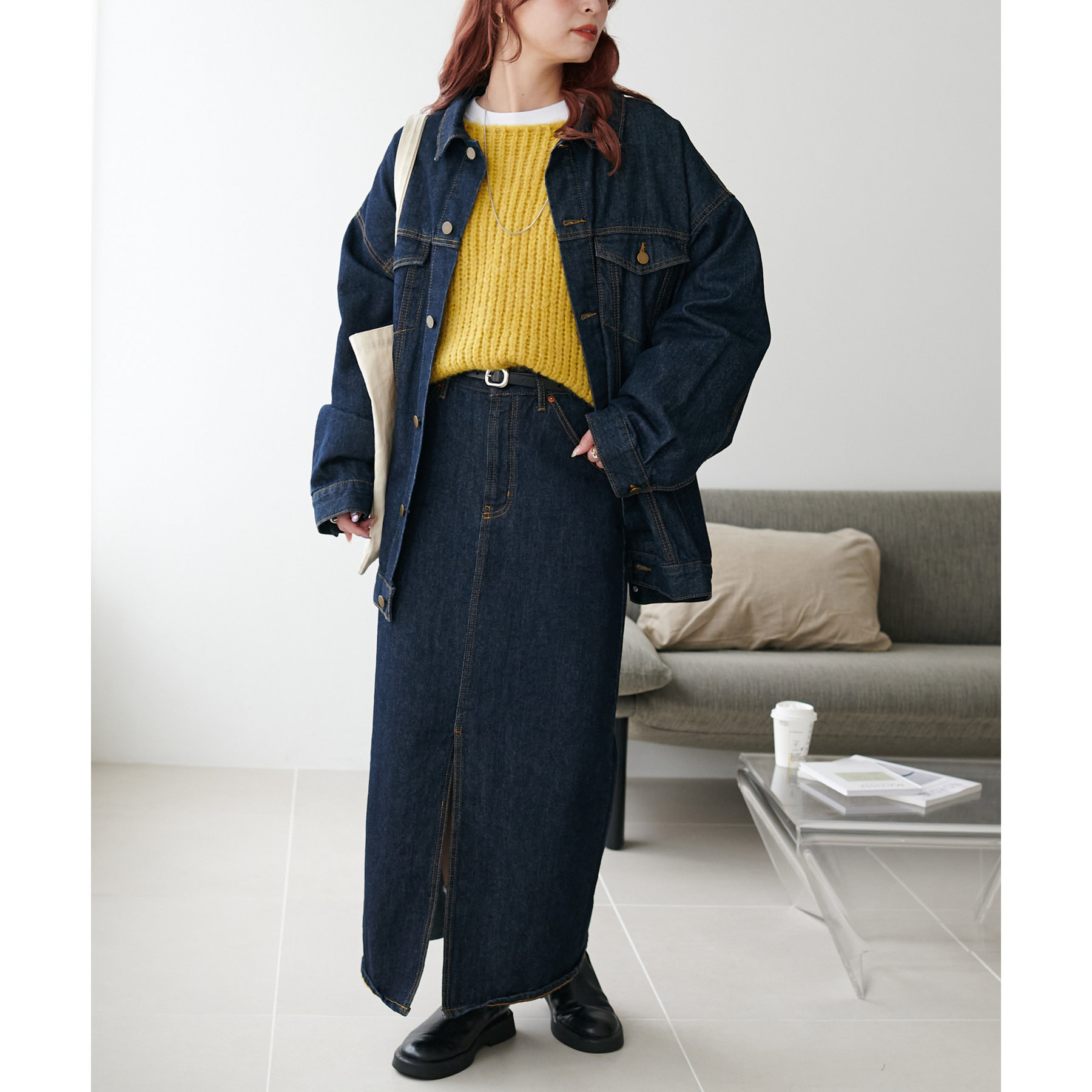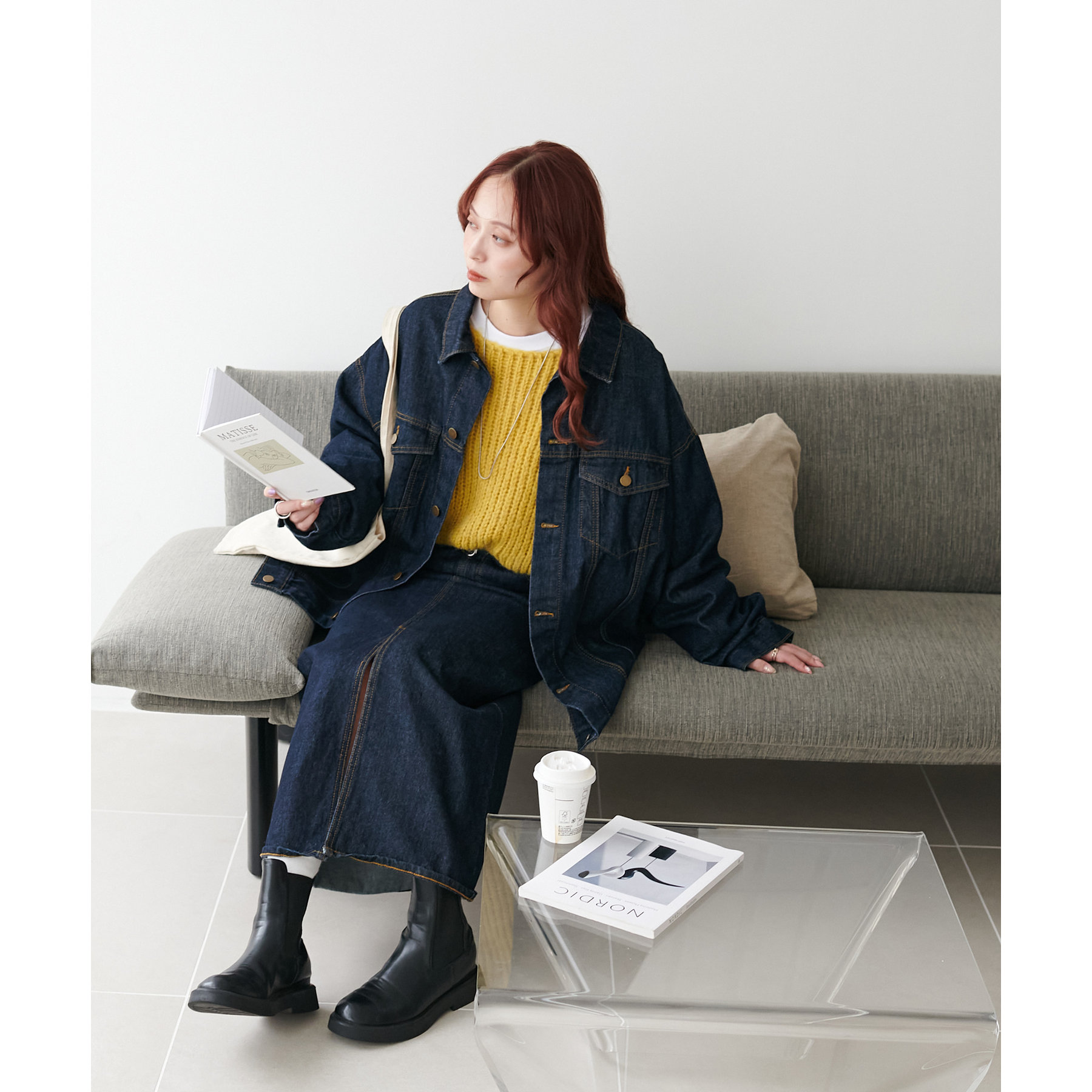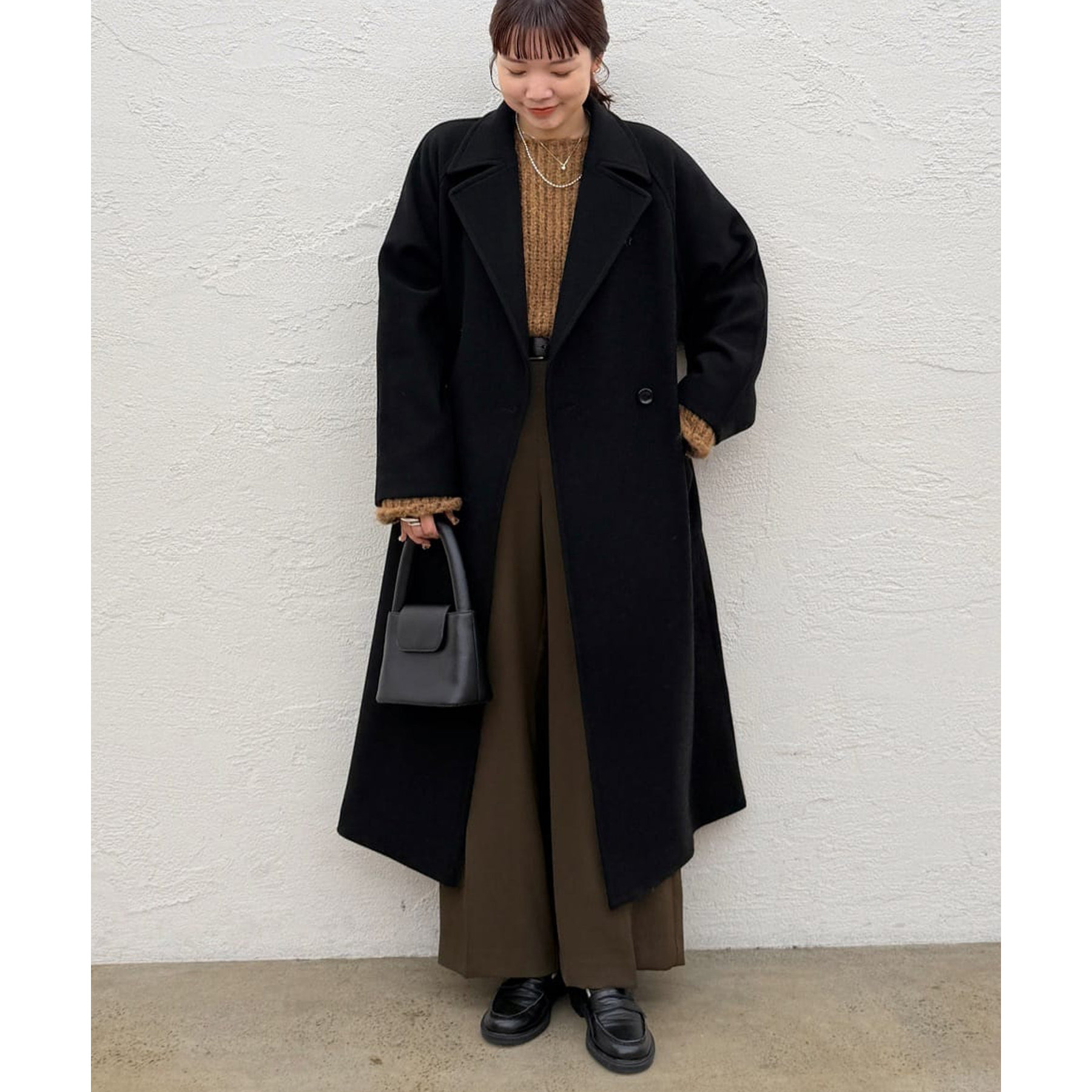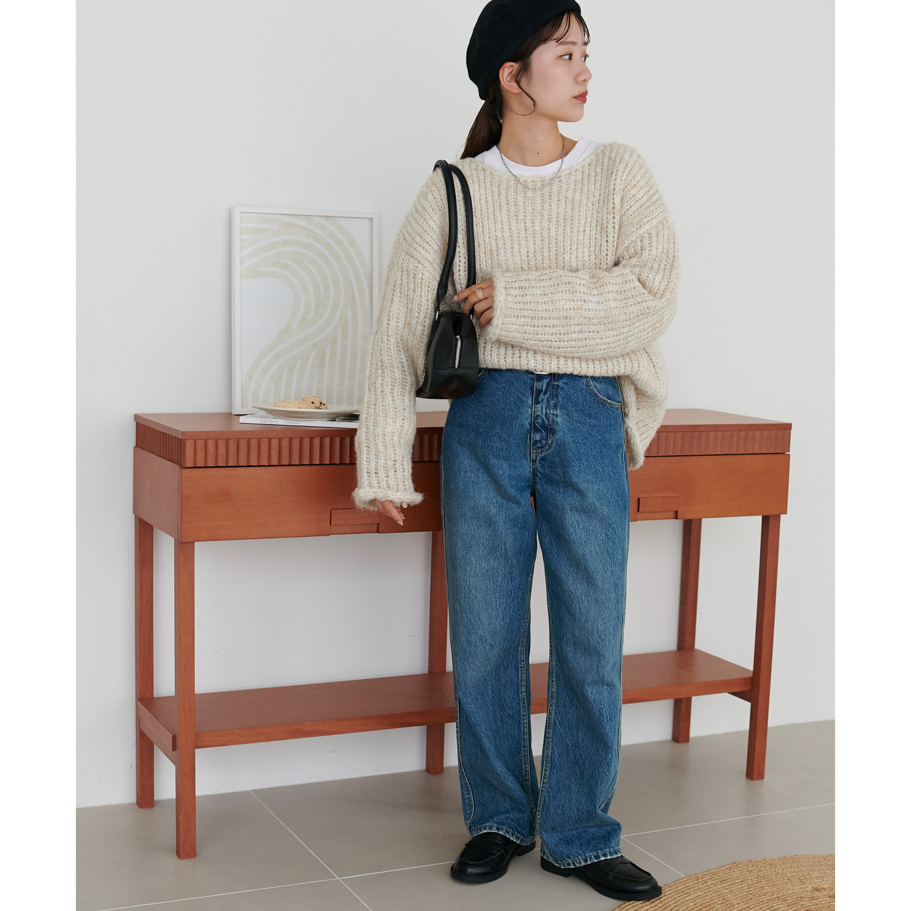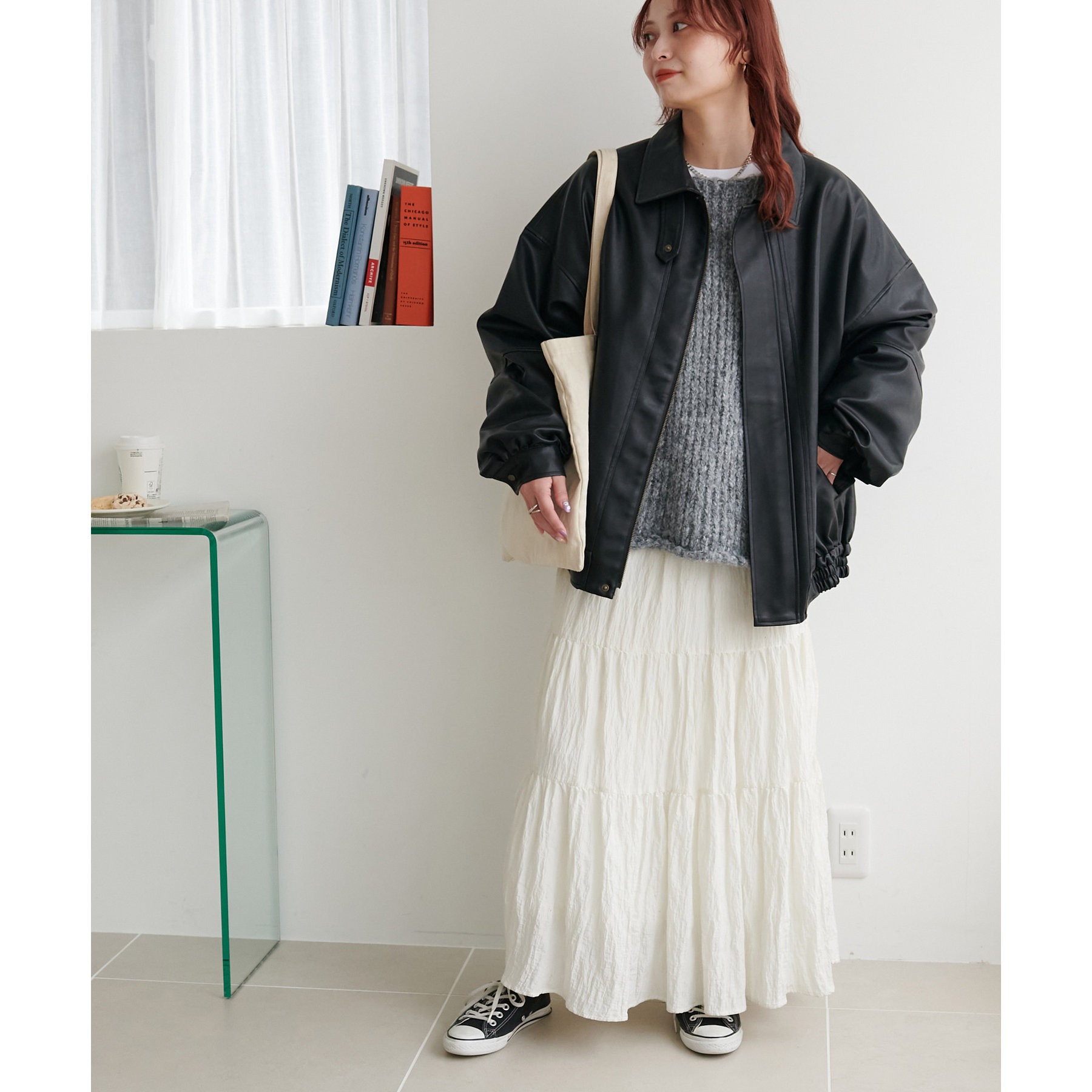 着丈は長めなので、腰回りをカバー。ボリューム感のあるニットが女性らしい雰囲気に〇