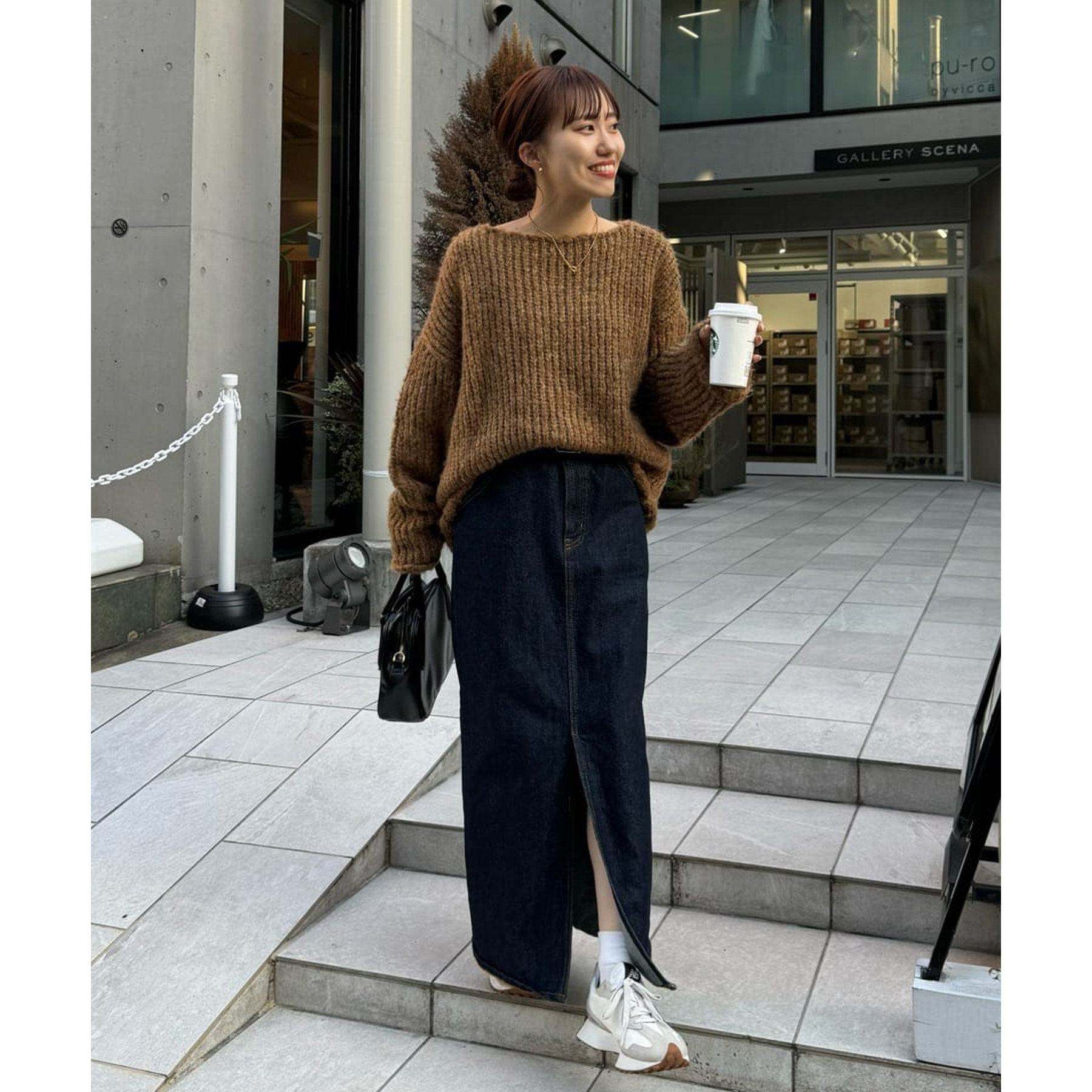 首元がヘルシーに見えるニットなので、デニムなどカジュアルなアイテムと合わせたコーデからスカートと合わせたキレイメコーデまでおすすめ!