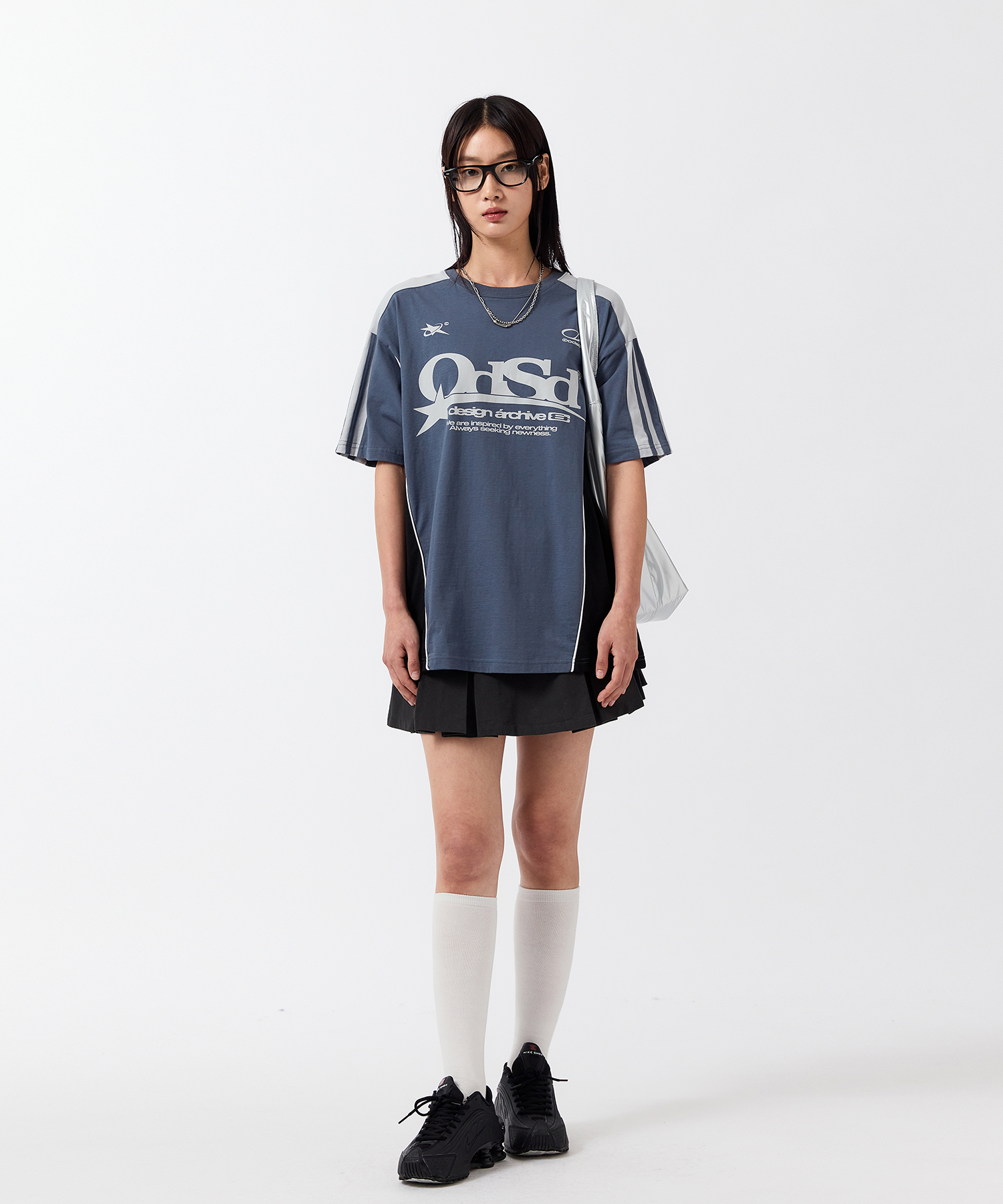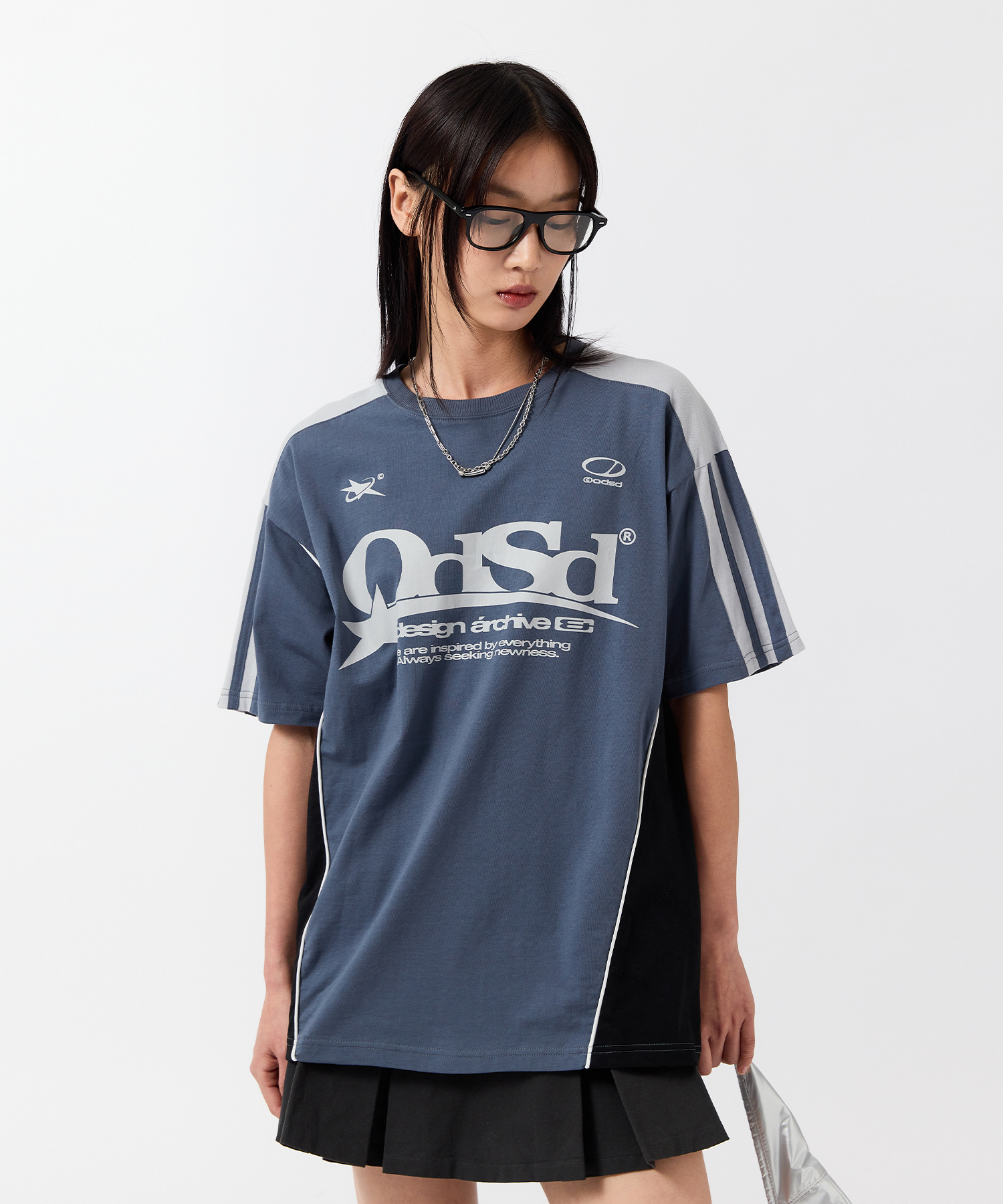 Odsd Sporty Color Block Overfit T-shirt - DUSTY BLUE