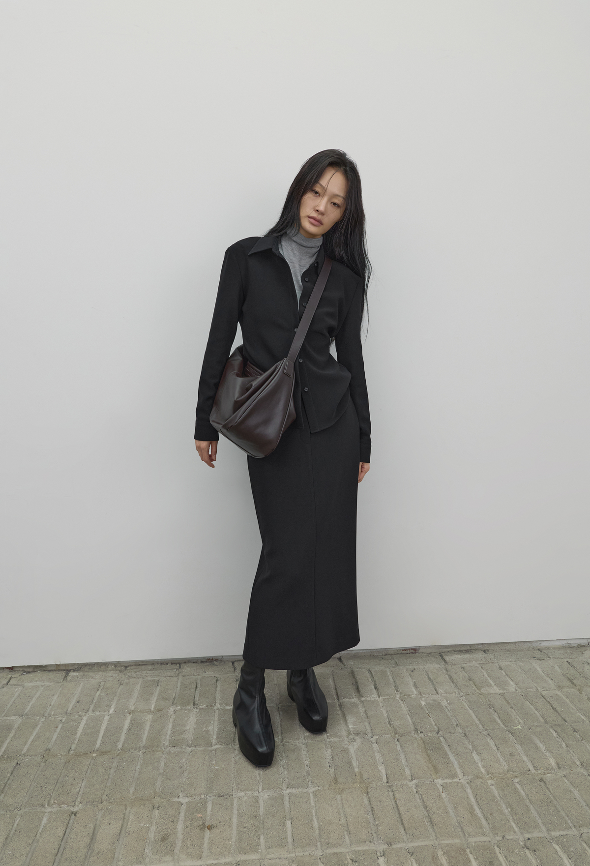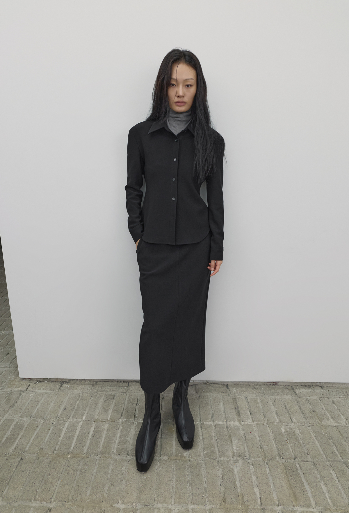 High-Density Slim-Fit Maxi Skirt - Black