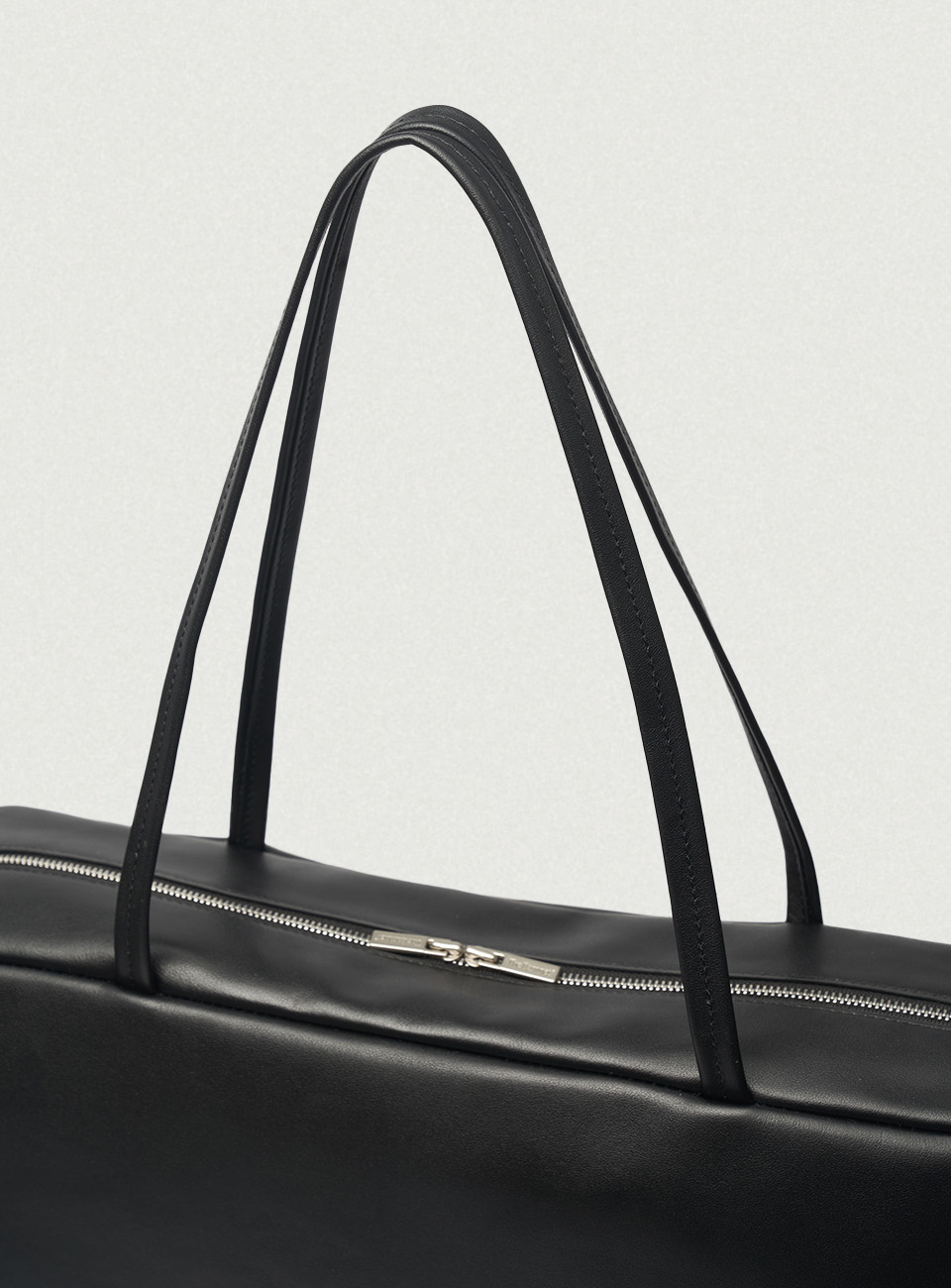 クラシックな長方形シェイプとジッパー開閉仕様の ボウリングバッグタイプ