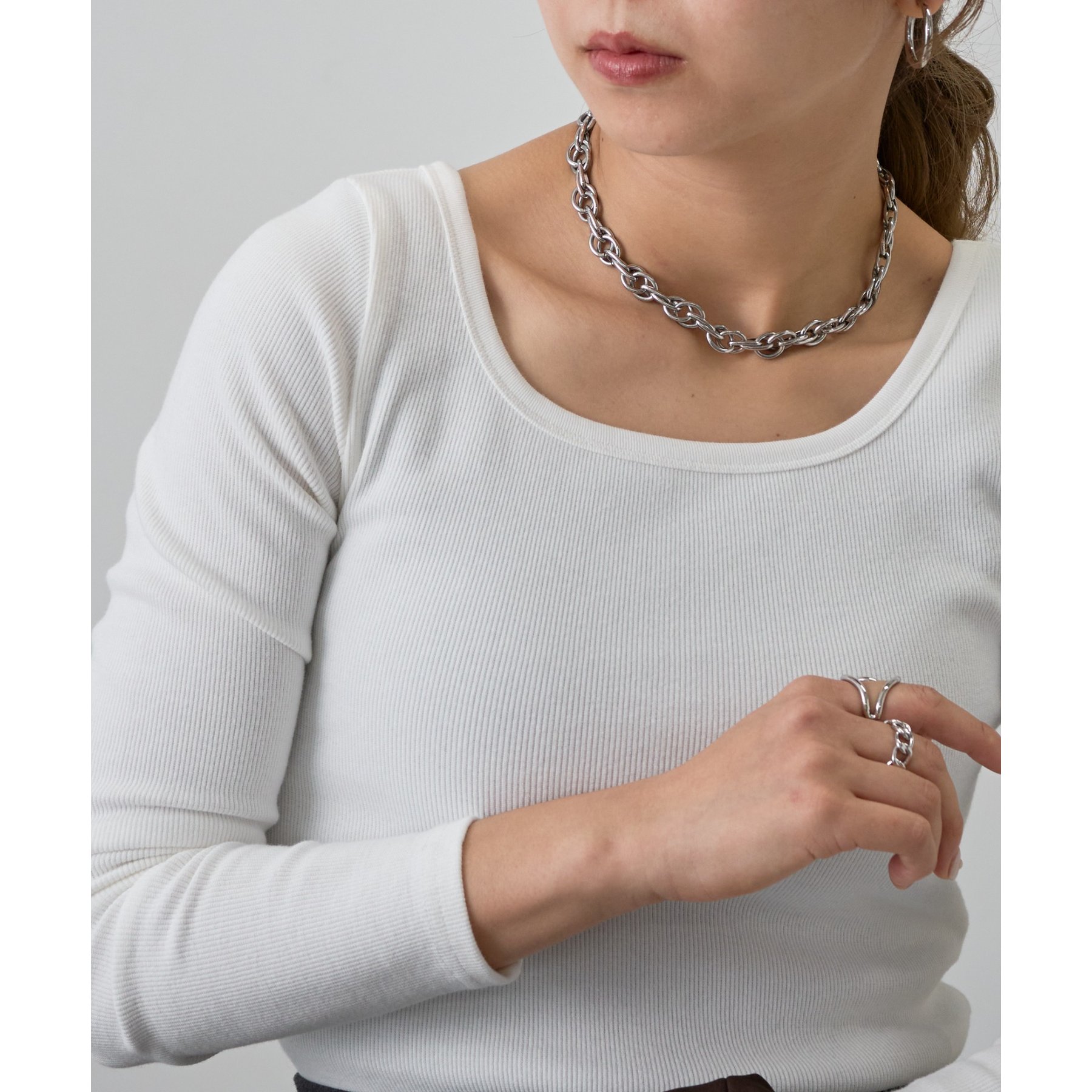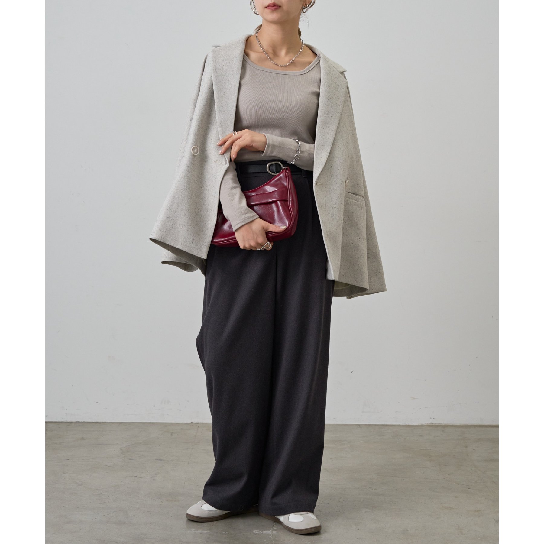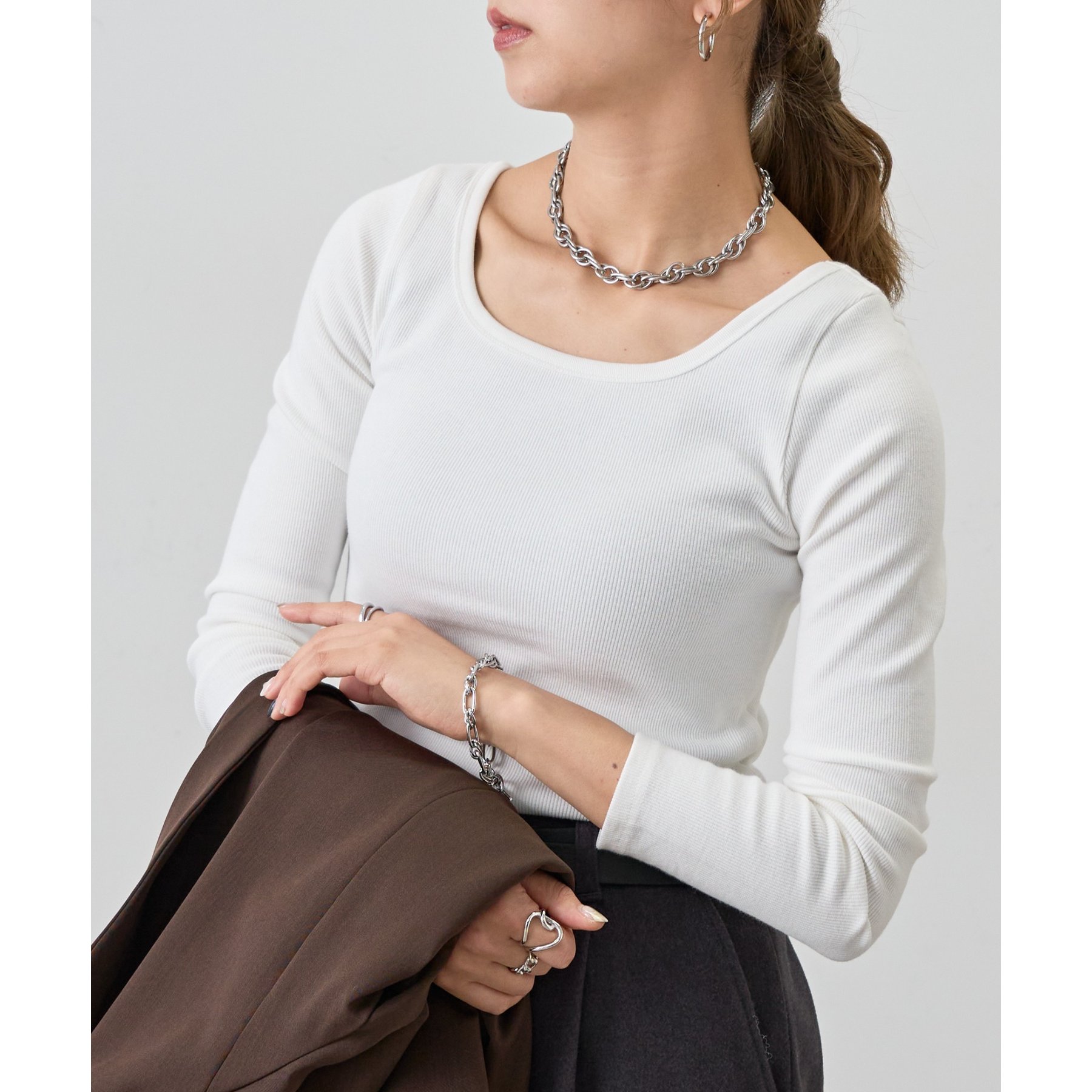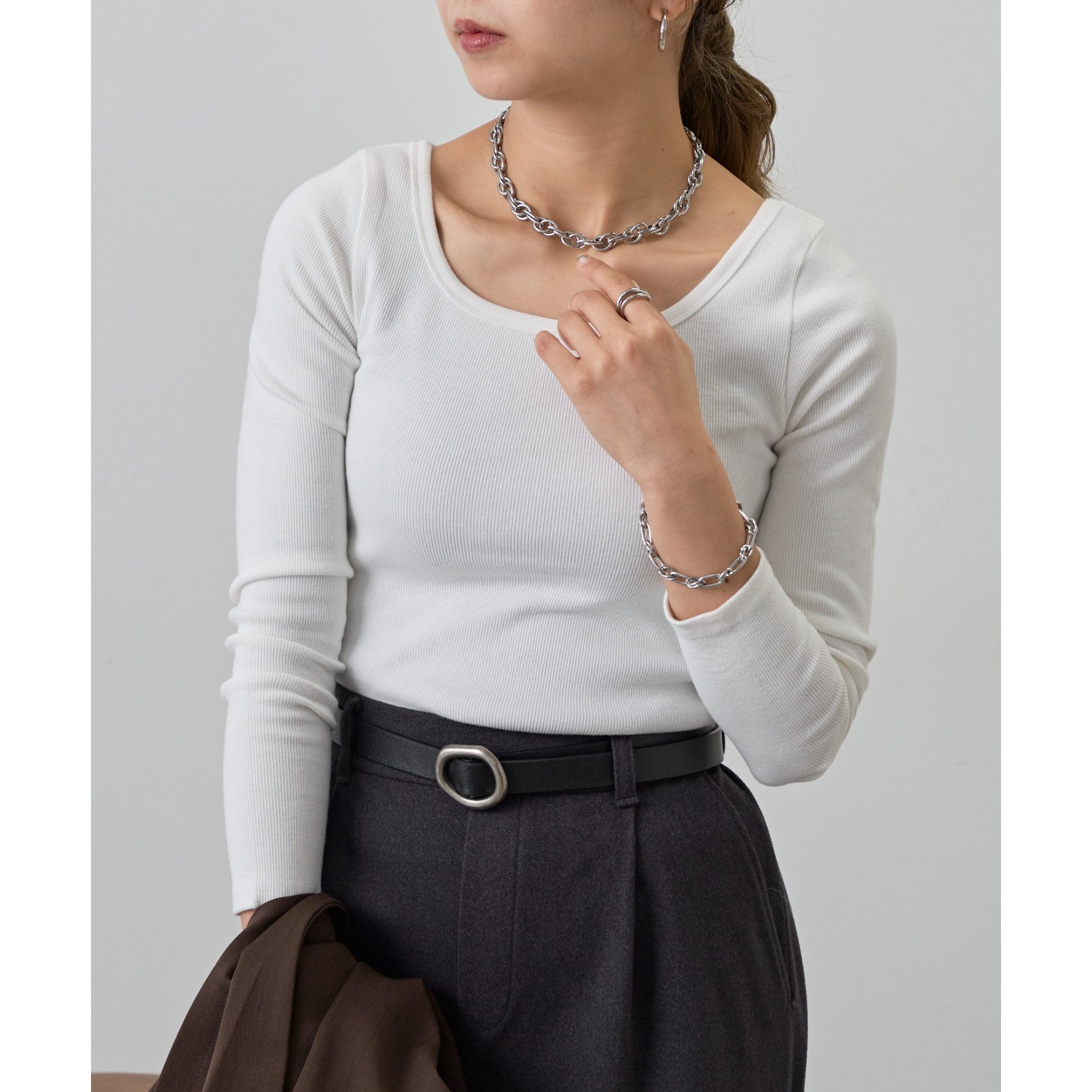 ジャケットなどのインナーにも使いやすいので、オフィスカジュアルにもおすすめ