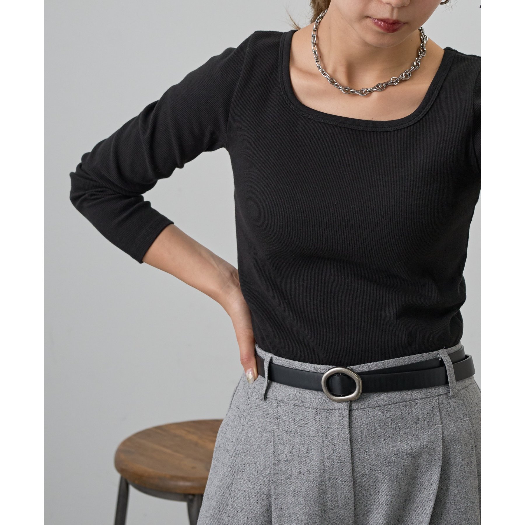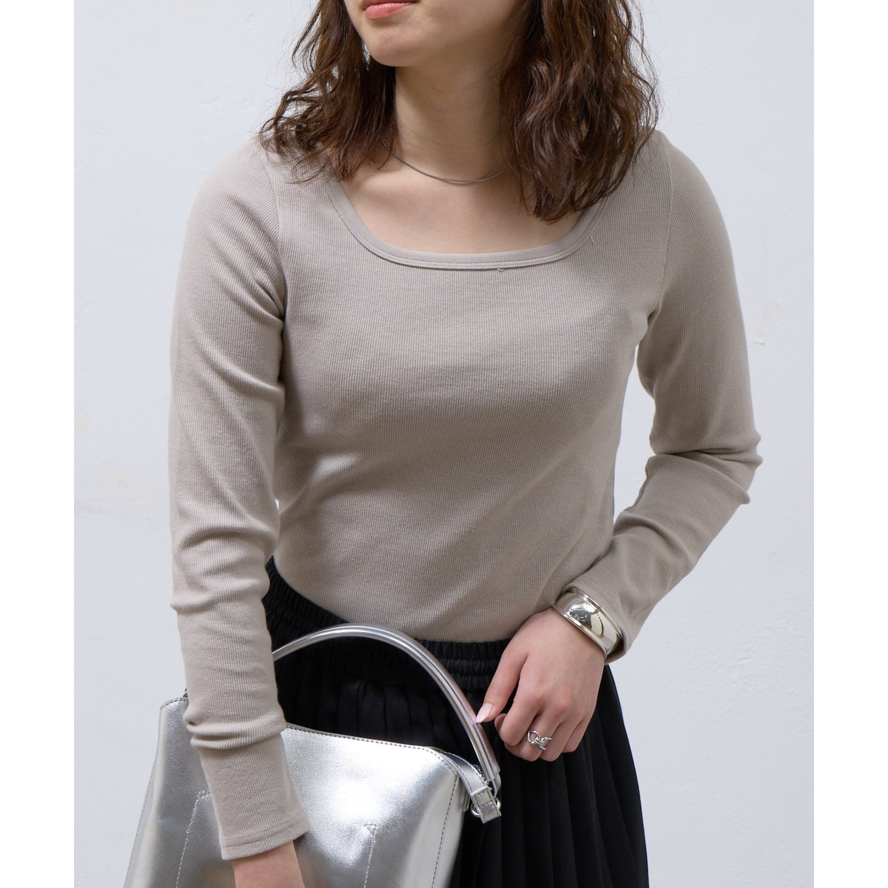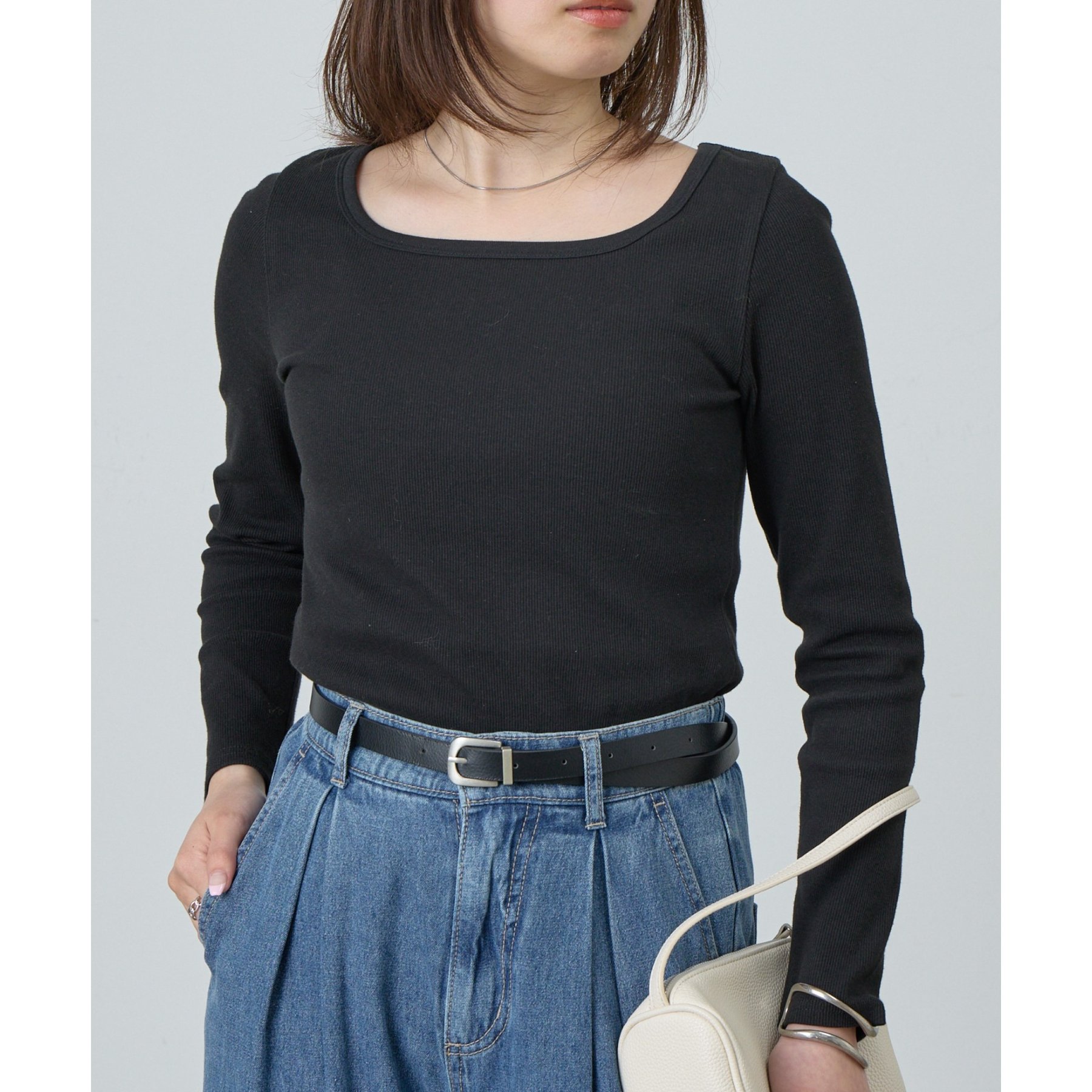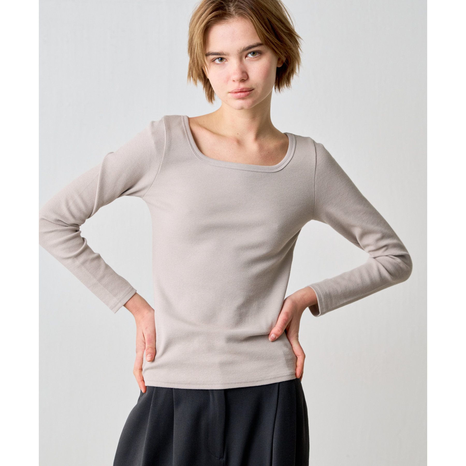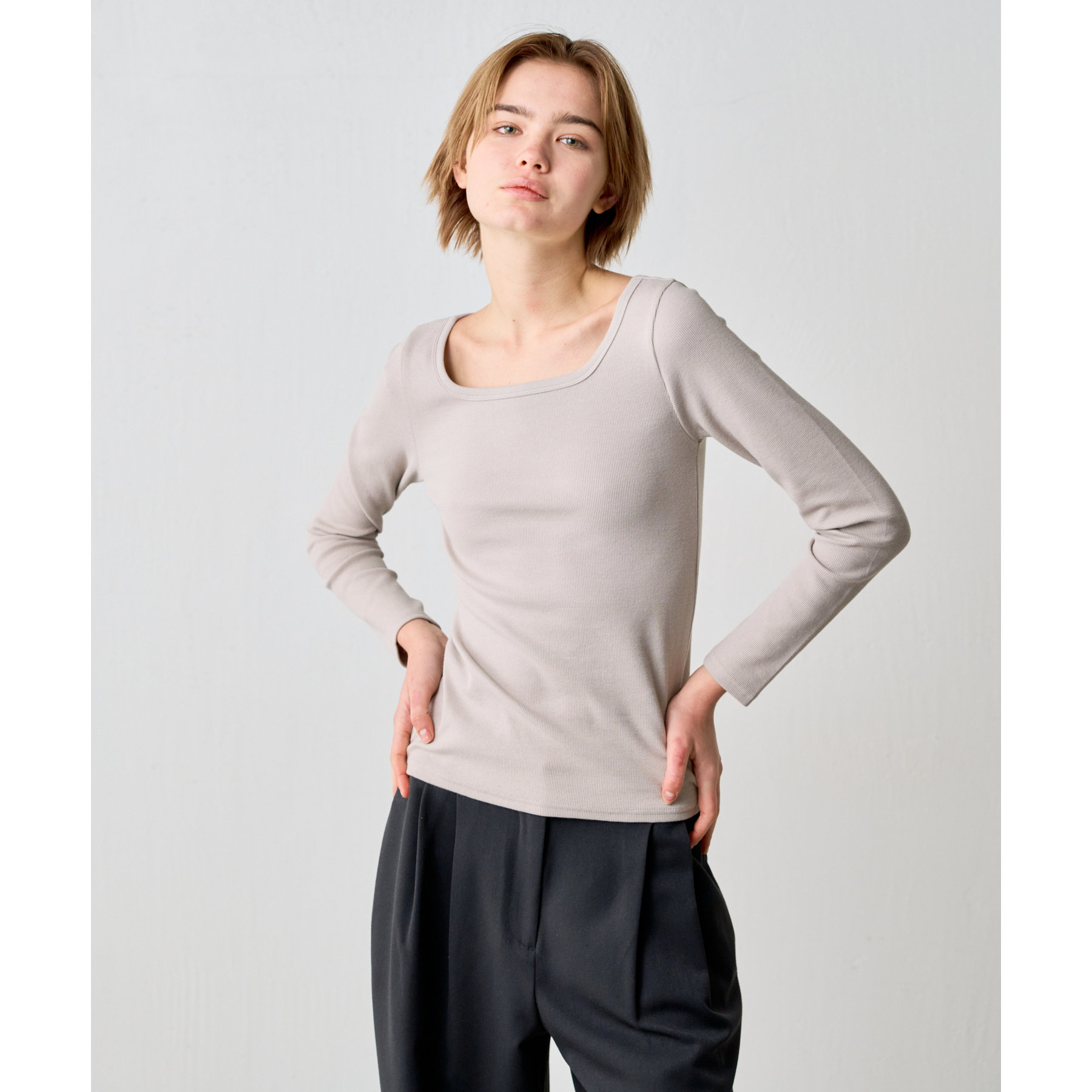 【BASIC LINE】スクエアネックリブロングスリーブプルオーバー