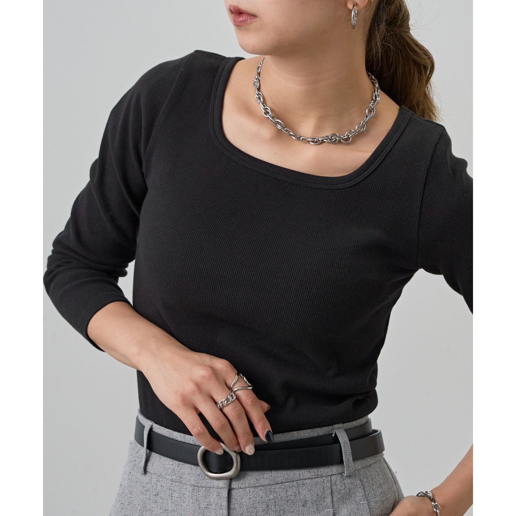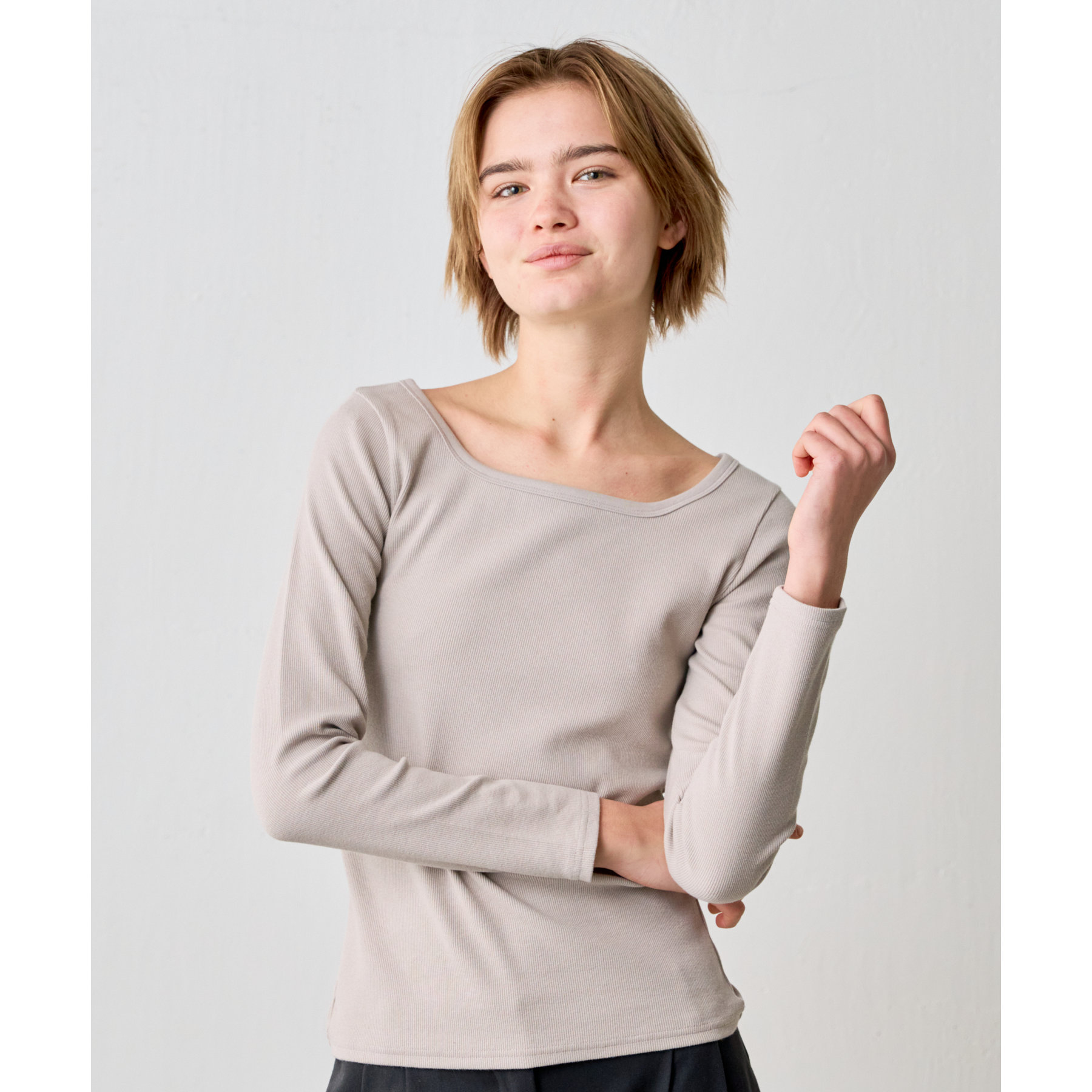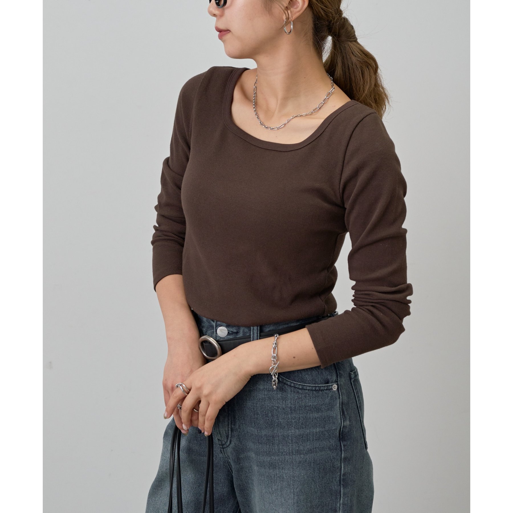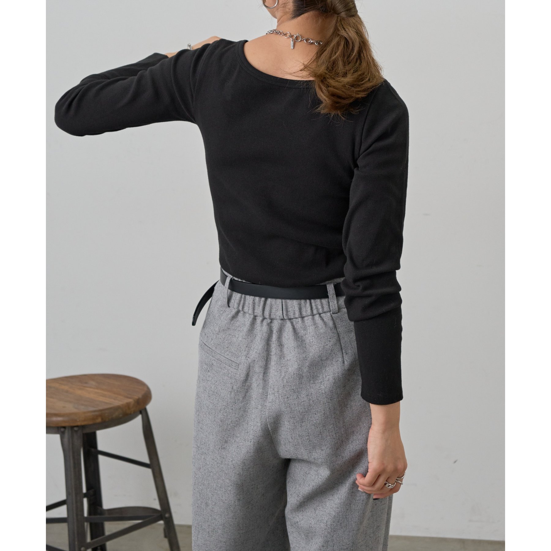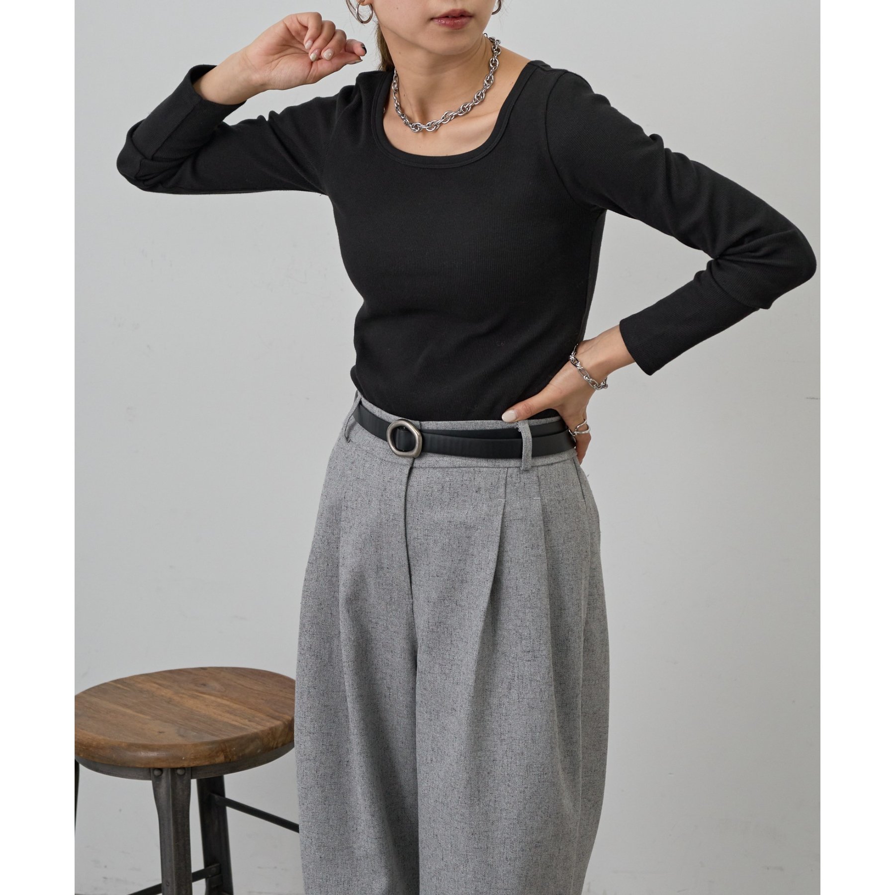 【BASIC LINE】スクエアネックリブロングスリーブプルオーバー
