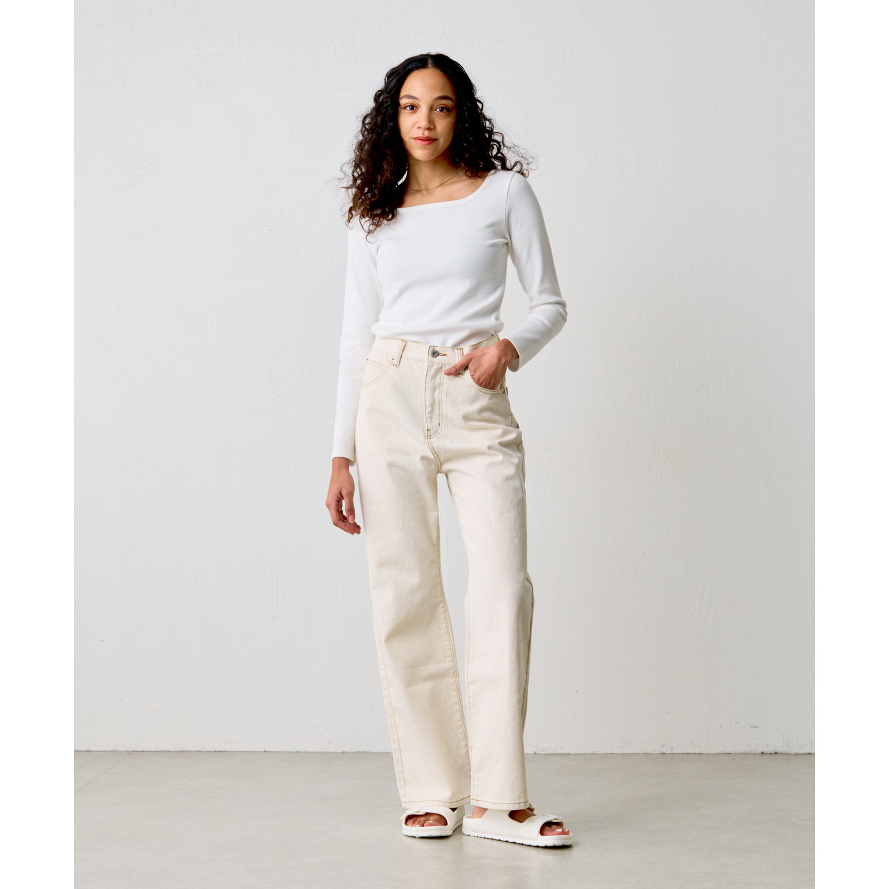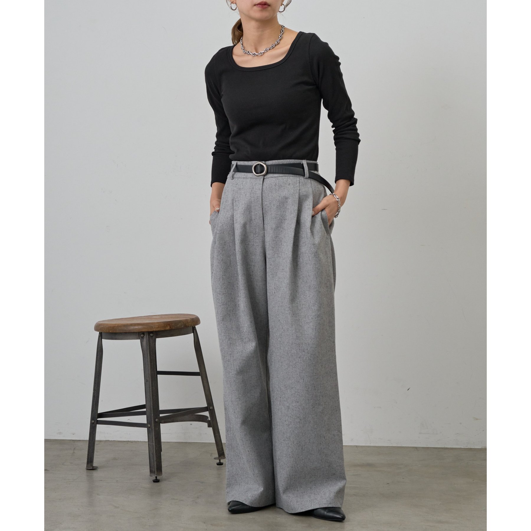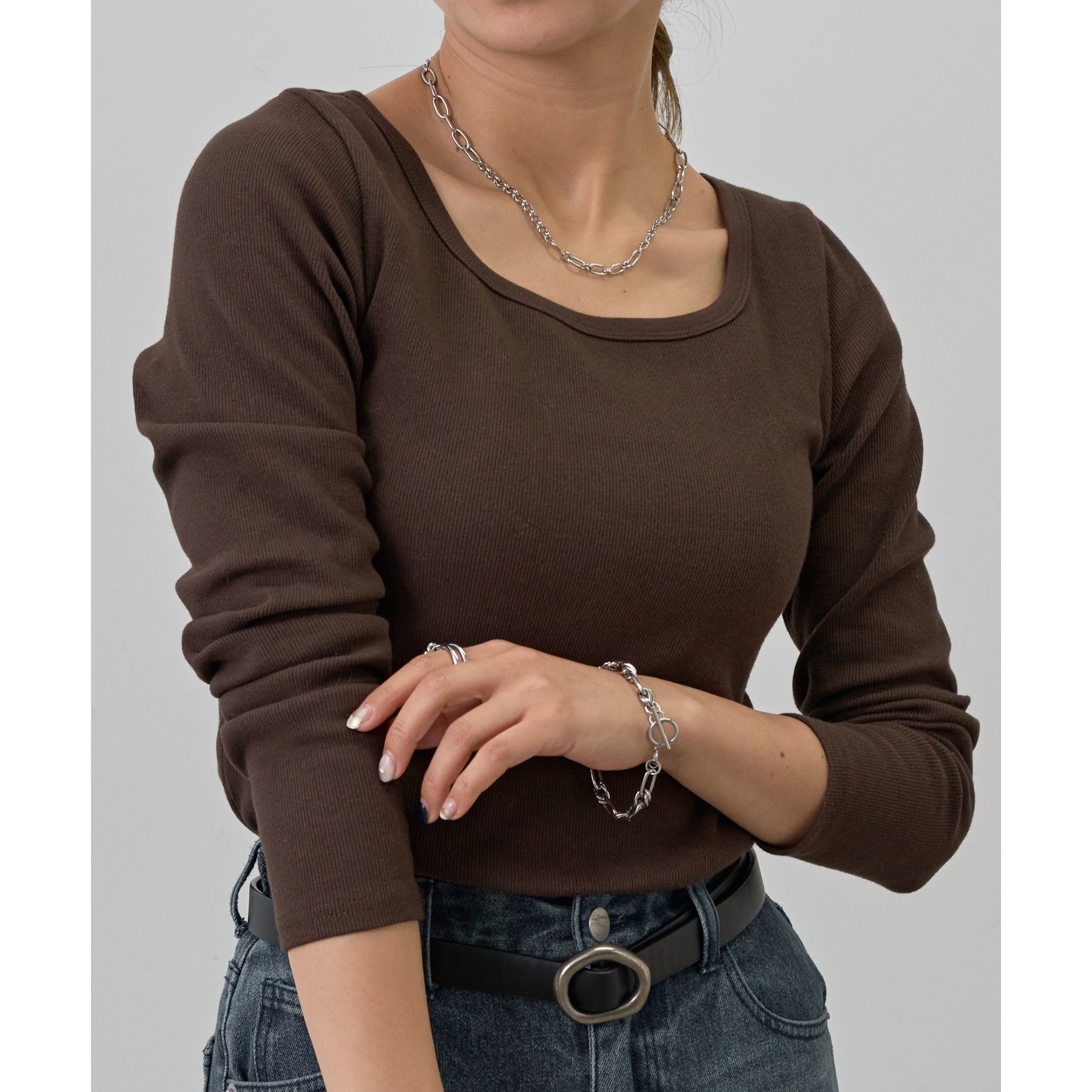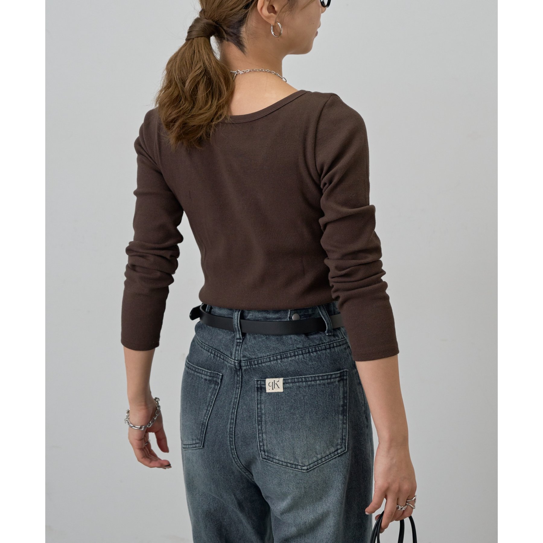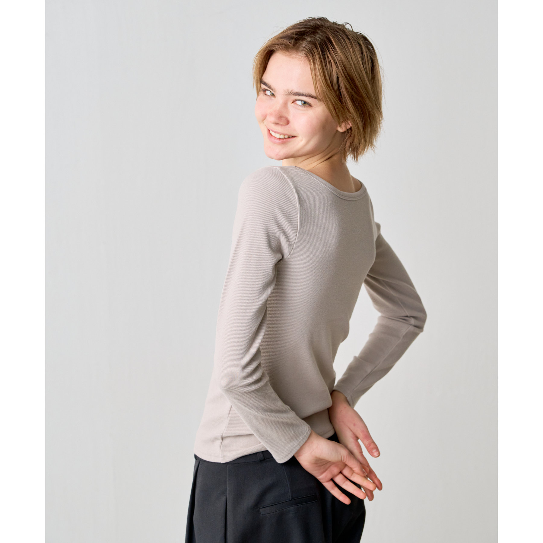 【BASIC LINE】スクエアネックリブロングスリーブプルオーバー