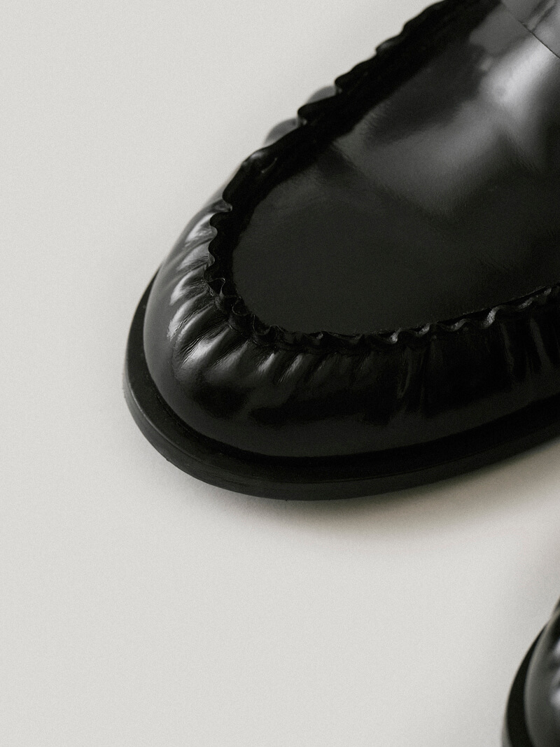 クラシックと男らしい共存。精巧に作られたアール・ブラックペニーローファー。アメリカでアイビーリーグ風の人気を博したペニーローファーは、アイビーリーグの大学生がローファーの上部の穴を飾るために1ペニーコインを身に着けます。クラシックなペニーローファーは、ヴィンテージのダンプリングプリーツが施されたクラシックなペニーローファーのデザインで、より官能的な雰囲気を作り出します。柔らかく柔らかく光沢のある箱型カーフレザー素材で作られ、牛革の内側の皮が靴のラインをしっかりと支えます。履くと足の形がきちんと整っています。足の付け根の幅が適度なほど快適になります。靴底の滑らかなムーズシンボルのペンダントが小さなエッジを与えます。フォーマルなスタイルからカジュアルなスタイルまで、さまざまなスタイルのコーディネートに合わせましょうボックスカーフレザー内側の牛革ダンプリングデザインウッドヘップスムードロゴのラバーソールで快適感を高めています*アールブラックペニーローファーのサイズを推奨*ボックスカーフレザーは光沢がありしっかりした丈夫な素材なので、履くほど自然にシワや傷がつきます。 わずかな傷や色の違い、粒状の痕、腱、革の内側や仕上げの剥がれ、粉末や汚れが見られることもあります。これは天然革の特徴であり、汚染や中耳炎のリスクがあるため、湿気を避けるために丁寧に手入れしてください(目や雨には注意してください)。製品の性質上、靴のかかとやアウトソールに傷やシミがある場合がありますので、ご注意ください。*これは1:1のカスタムメイド製品であり、注文後にキャンセル・交換・返品・返金はできません。カスタム生産期間は10〜14営業日かかります