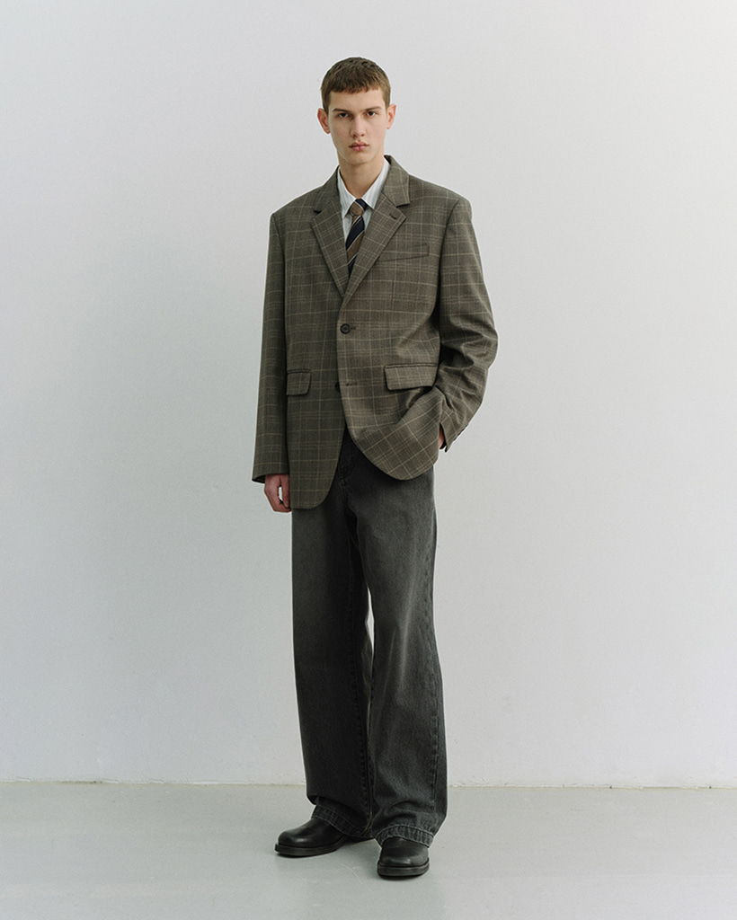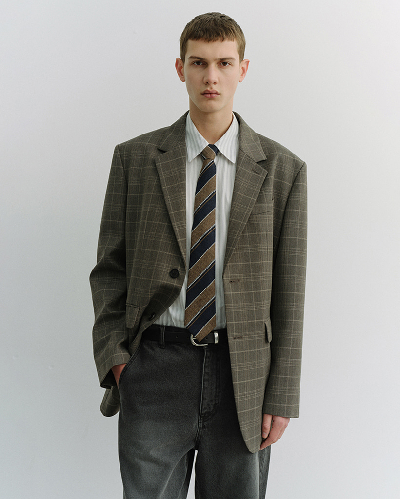 UNISEX 2 BUTTON WOOL BLAZER GREY CHECK_M_UDJA6A102G2