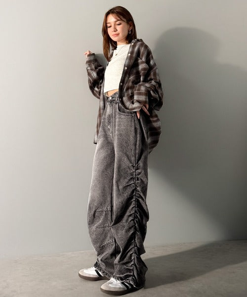 裾までゆるやかに落ちるワイドシルエットが、トレンドのストリート感を演出。