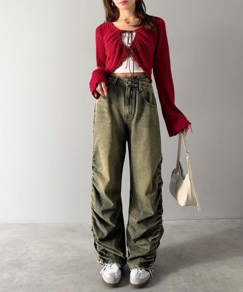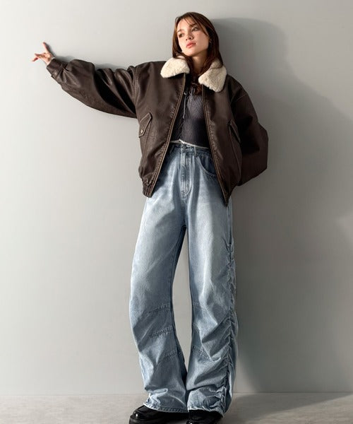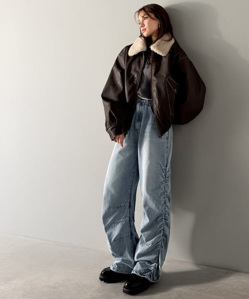 上からショートダウンやボアブルゾンを羽織って、旬の“コンパクト×ワイド”シルエットを楽しんで◎