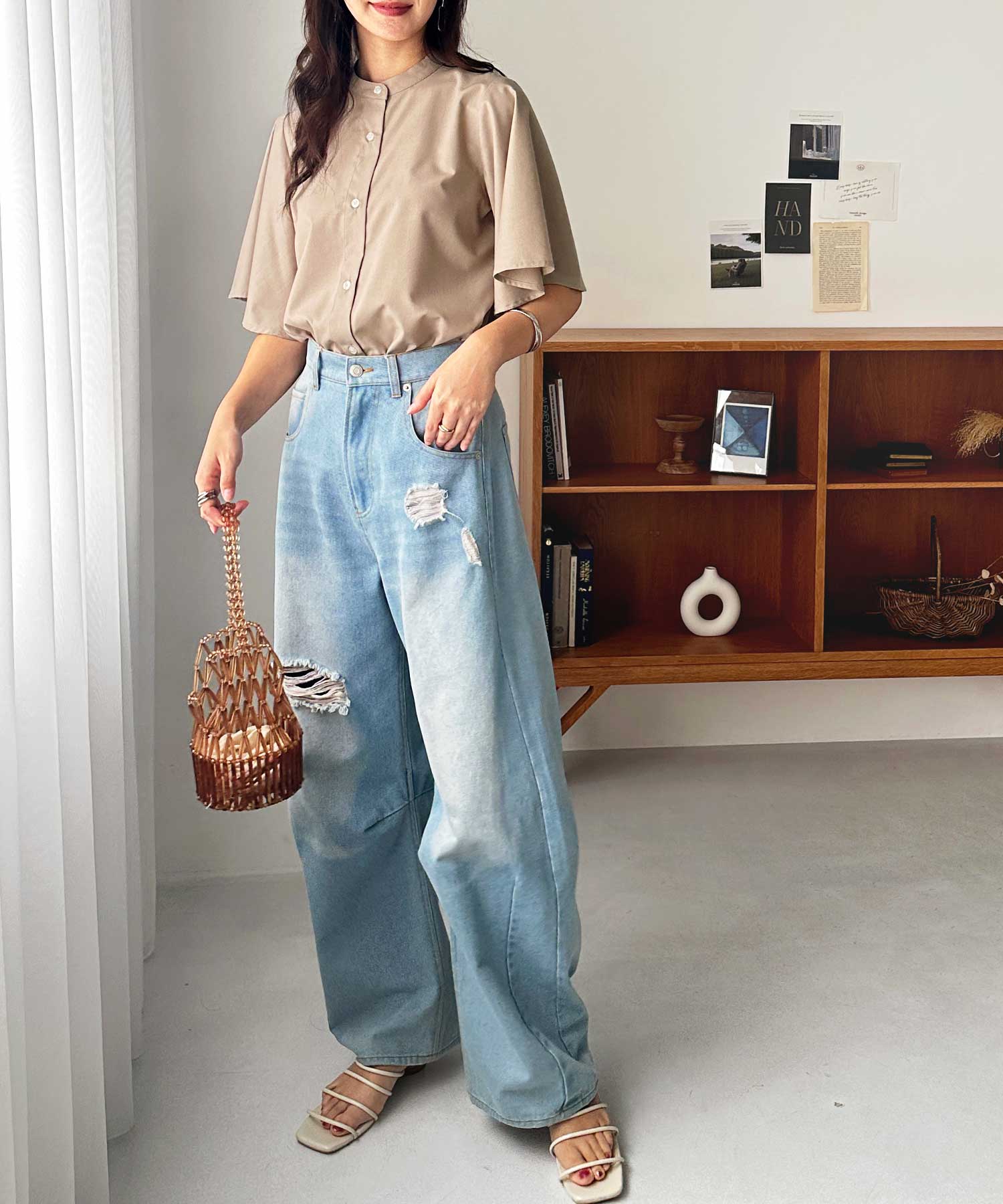 ウエストインでパンツやスカートに合わせるのがおすすめ。