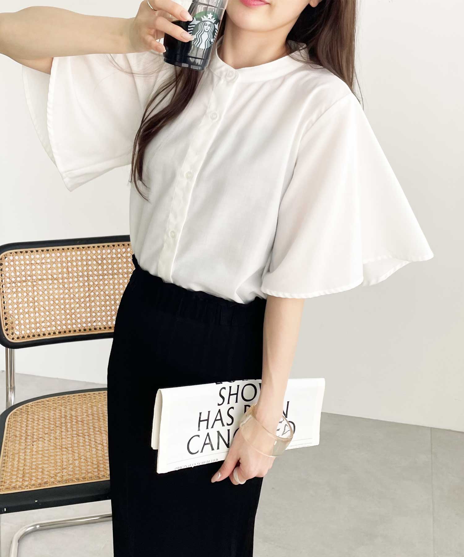 品よくおしゃれな着こなしが叶うフレアー袖ブラウス
