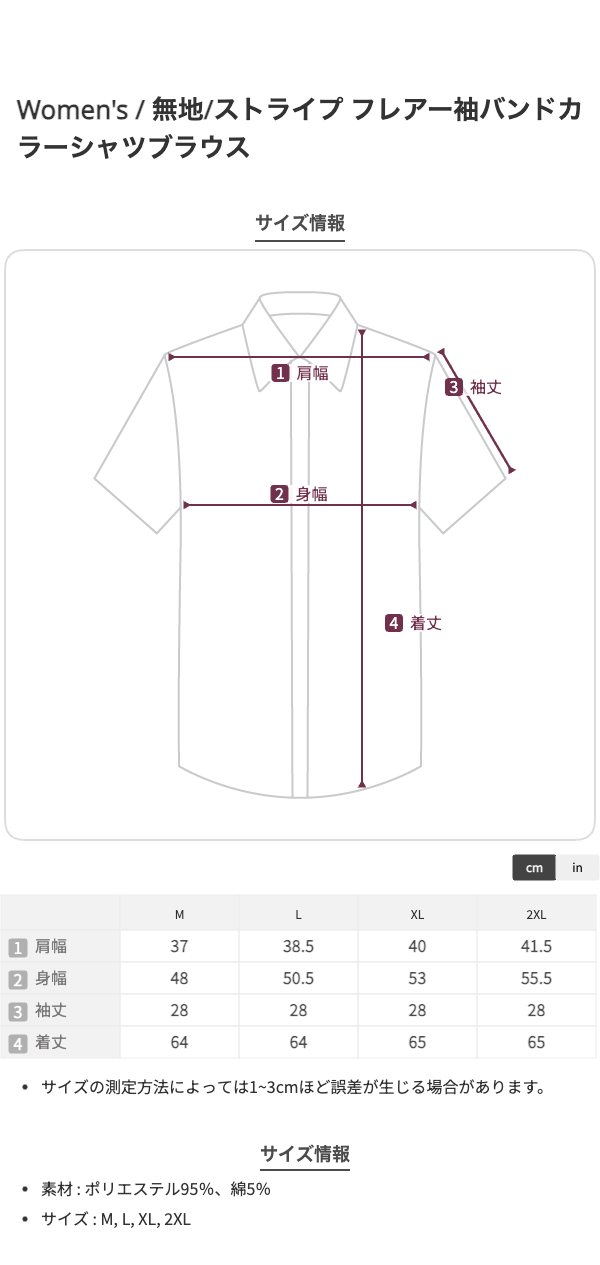 M:バスト96、肩幅37、後着丈64、袖丈28