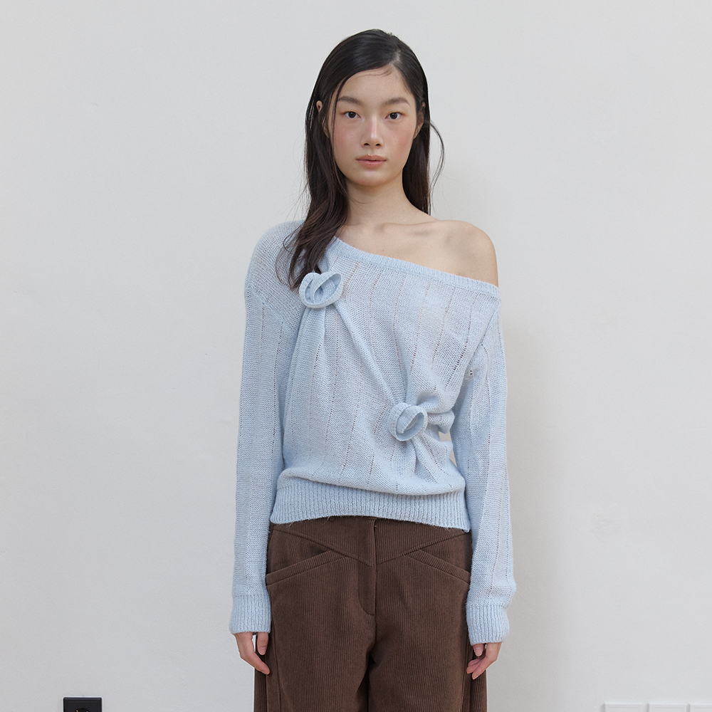 ROSE BROOCH ONE SHOULDER KNIT (SKY BLUE)