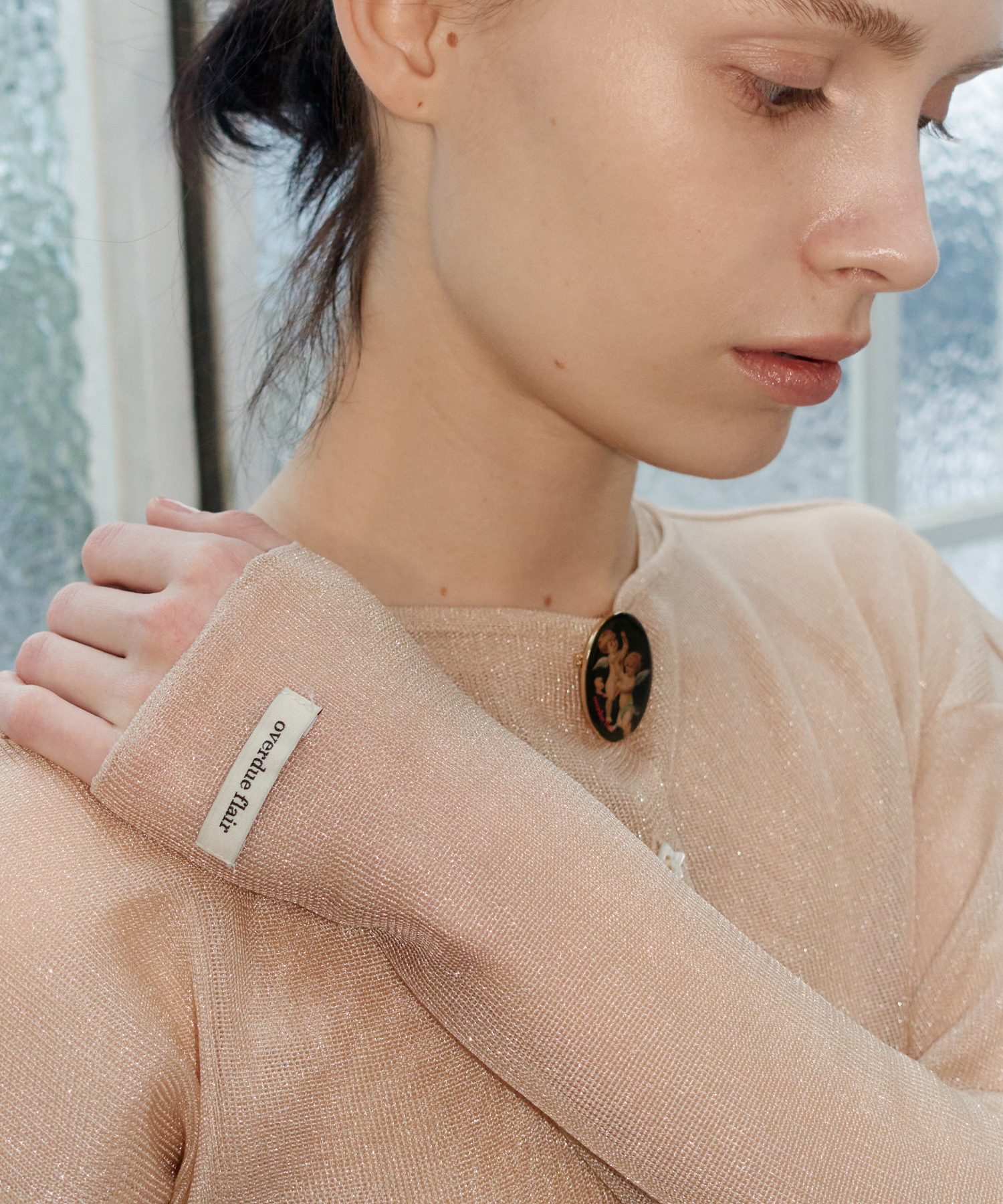 SHEER GLOSSY CARDIGAN_NUDE BEIGE