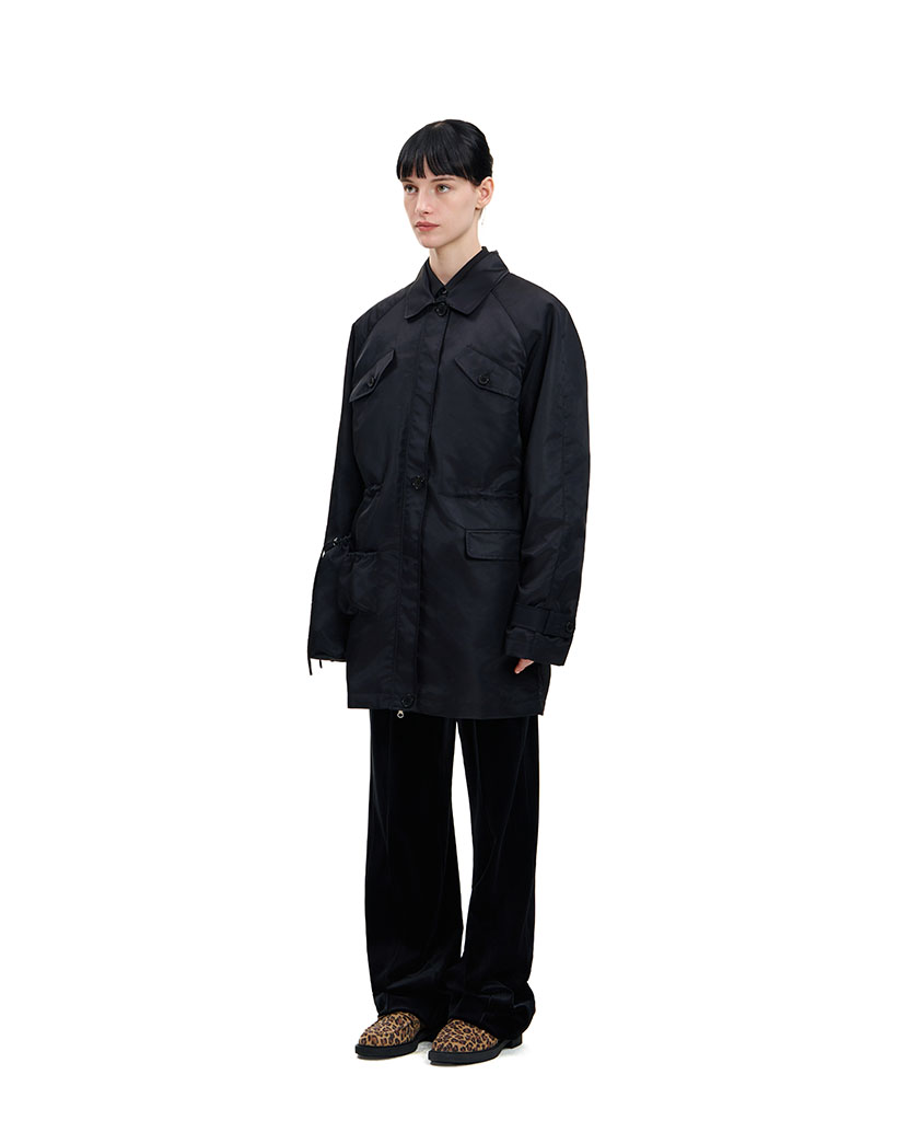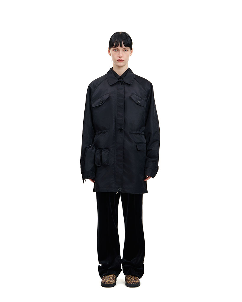 BLACK RE-NYLON MULTI-POCKET SAFARI JACKET WITH BUTTON-ON THERMAL VEST