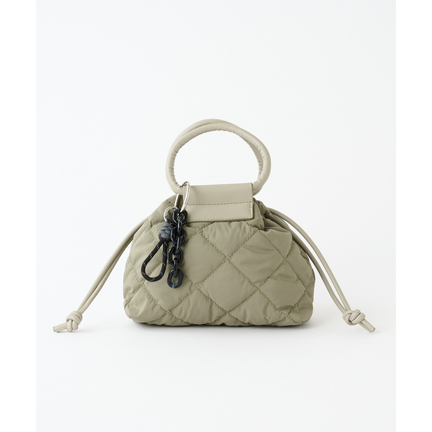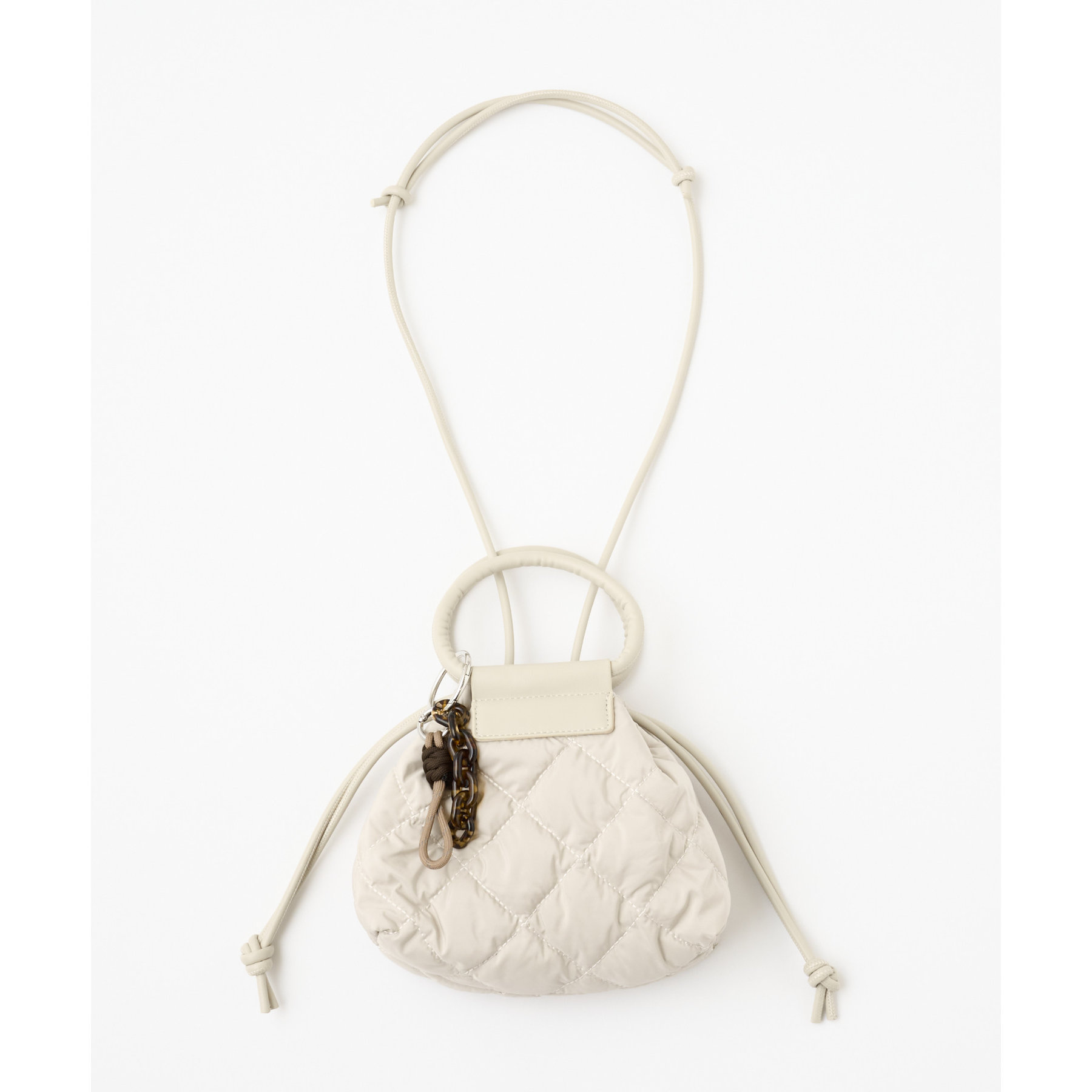 サッと出かける時にピッタリなミニマムサイズのショルダーバッグ。コロンッとした小さいサイズながらに、キルティングのデザインやチャームが付属していることで、デザイン性・存在感があります。チャームは取り外し可能なので、他のお鞄などに付けていただくのもオススメです♪また、ショルダー紐は長さ調節が可能な為、様々な持ち方で仕様いただけます◎(紐を中に収納し、巾着バッグとして使うのも可愛いです!)カラーは定番カラーのブラック・ベージュ・カーキの3色展開です!