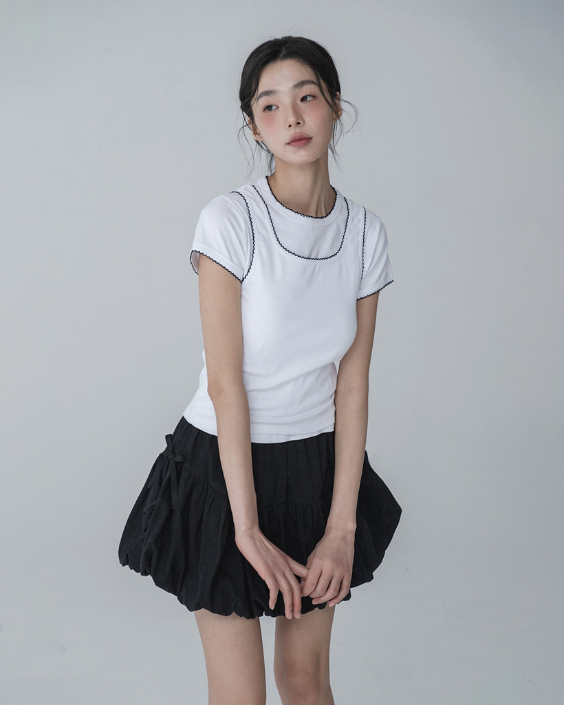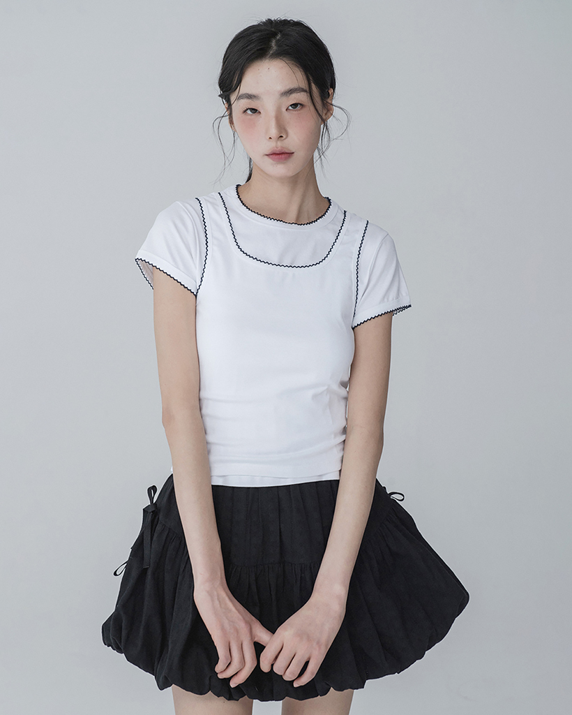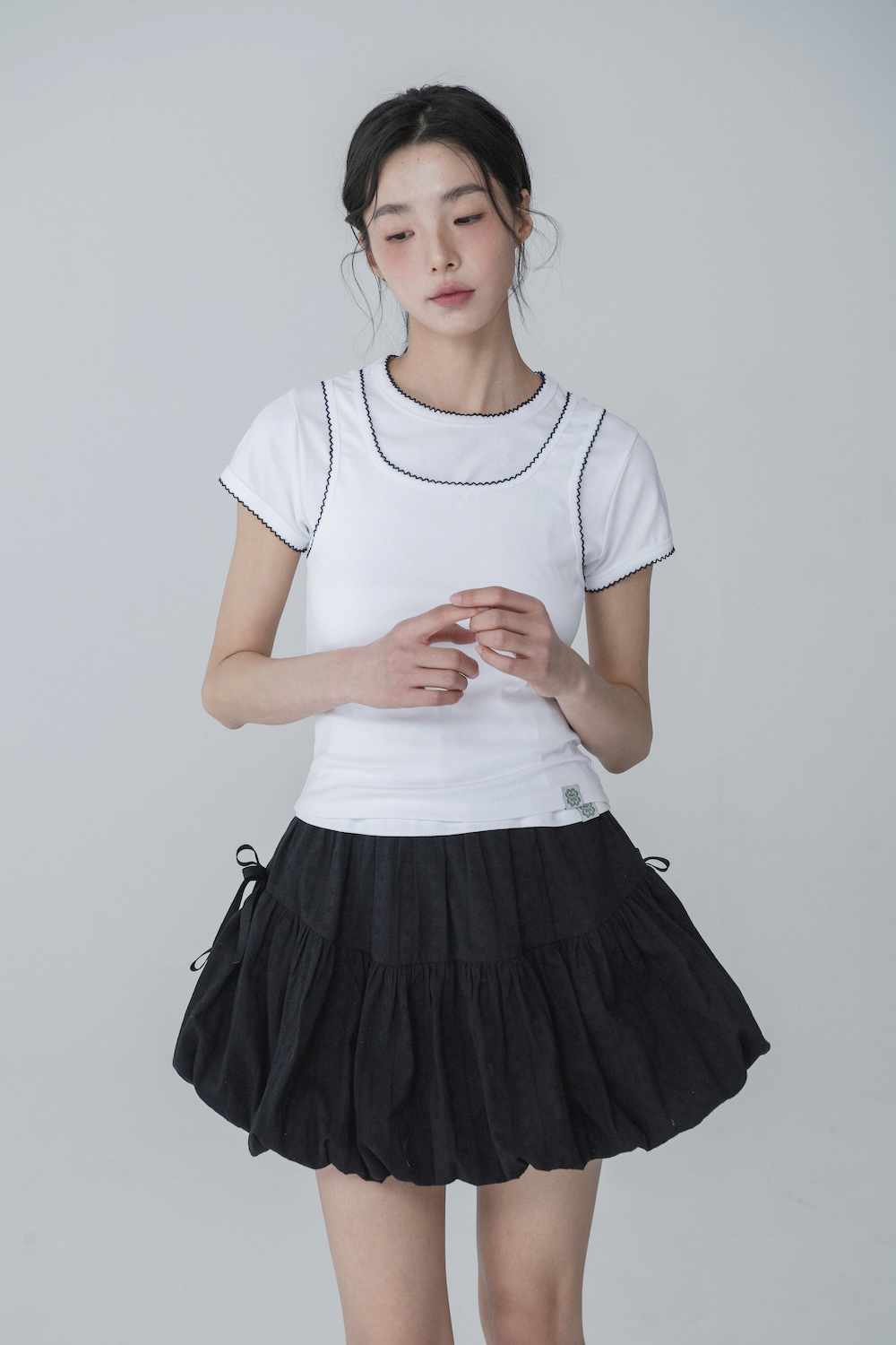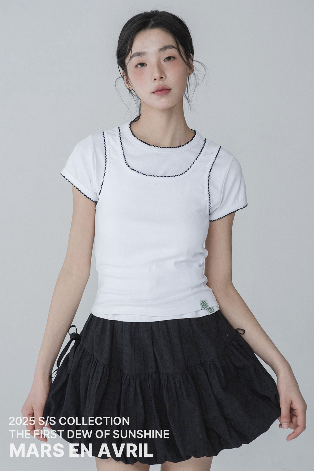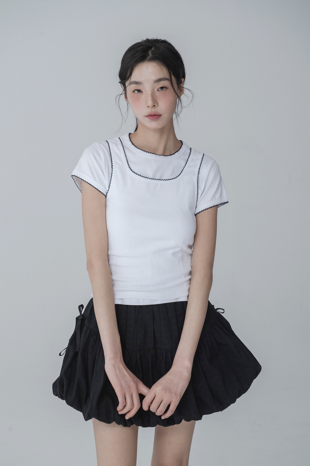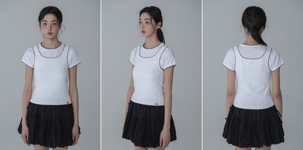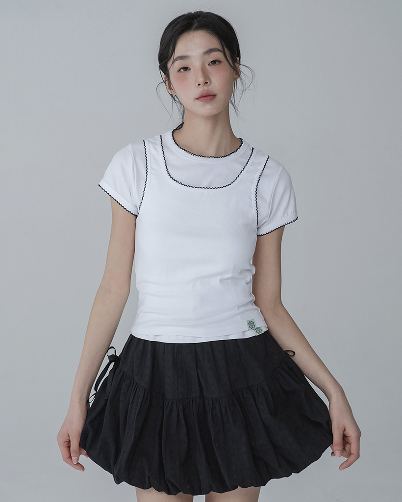 BUBBLE LAYERED SLEEVELESS & TSHIRT SET_WHITE NAVY