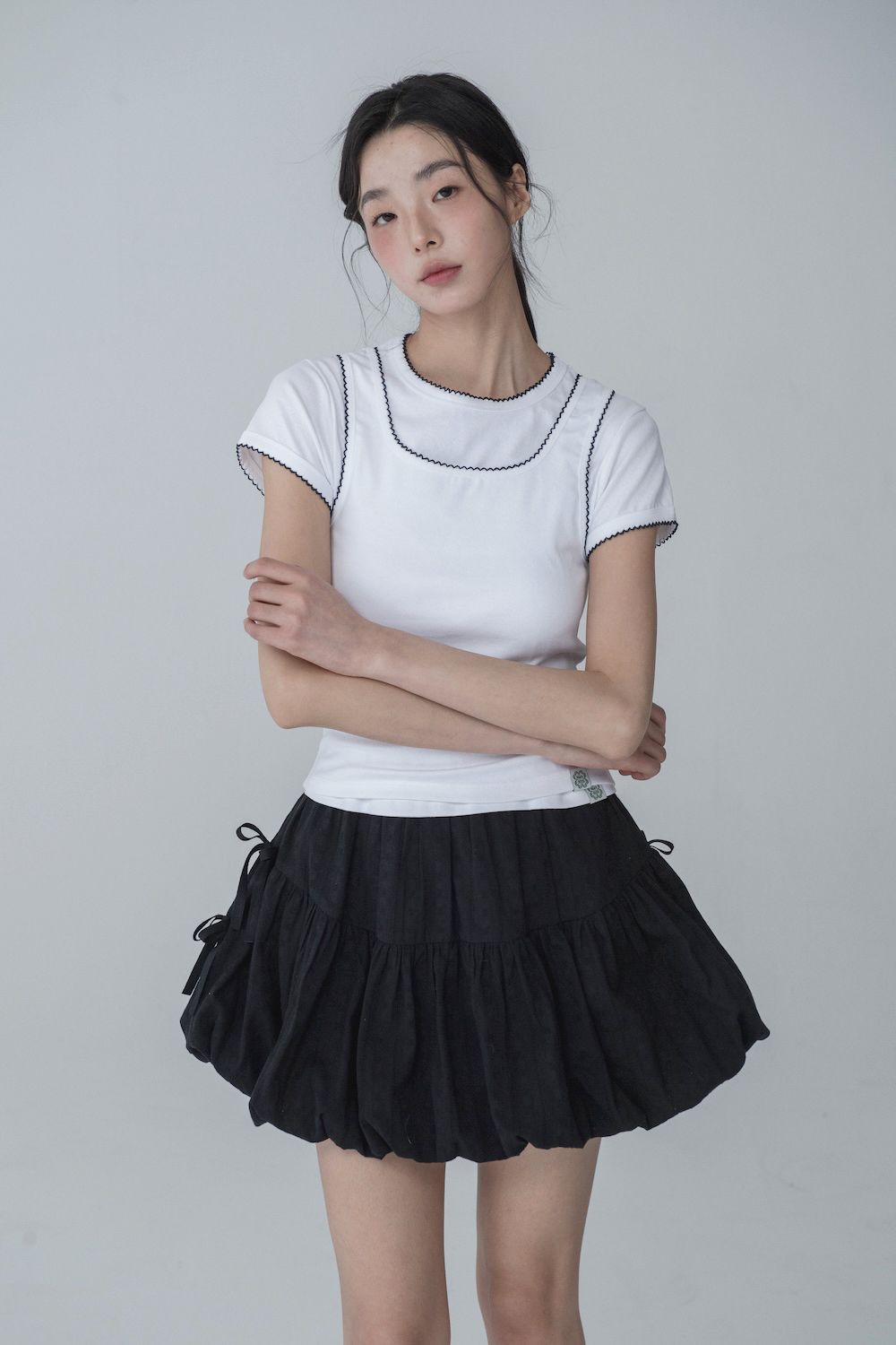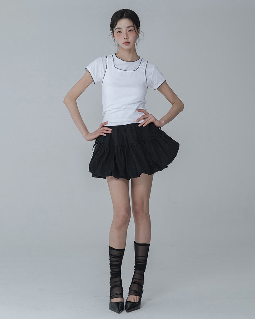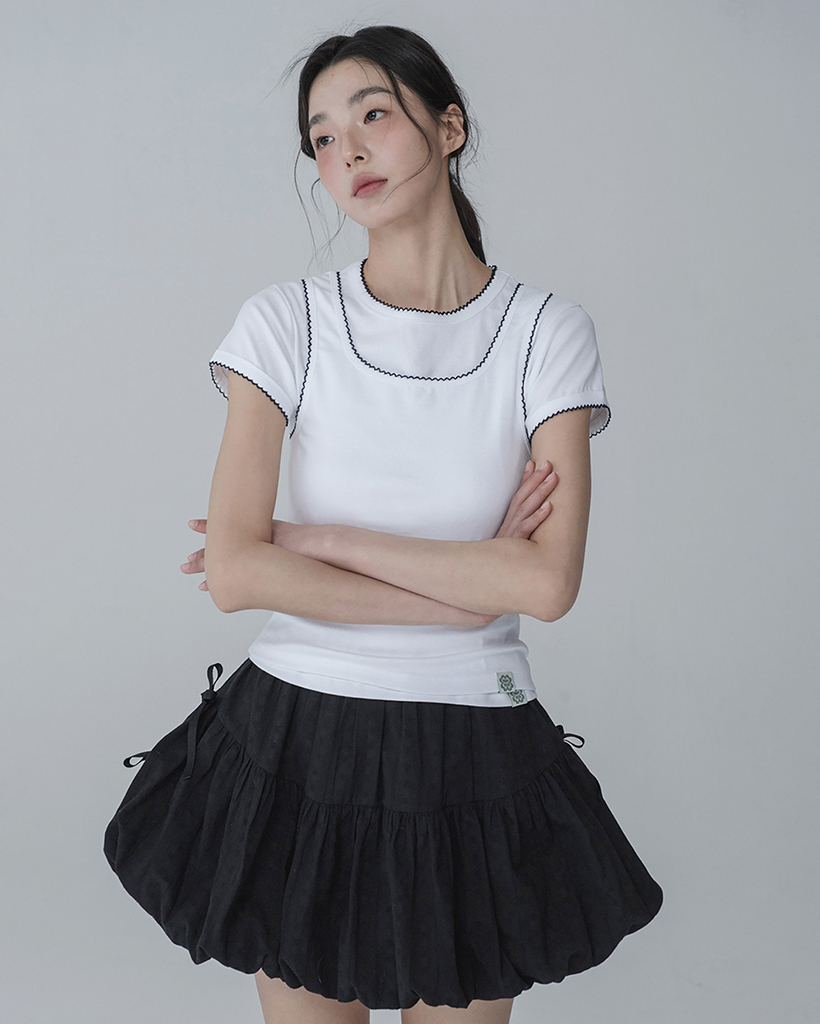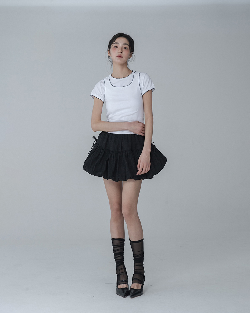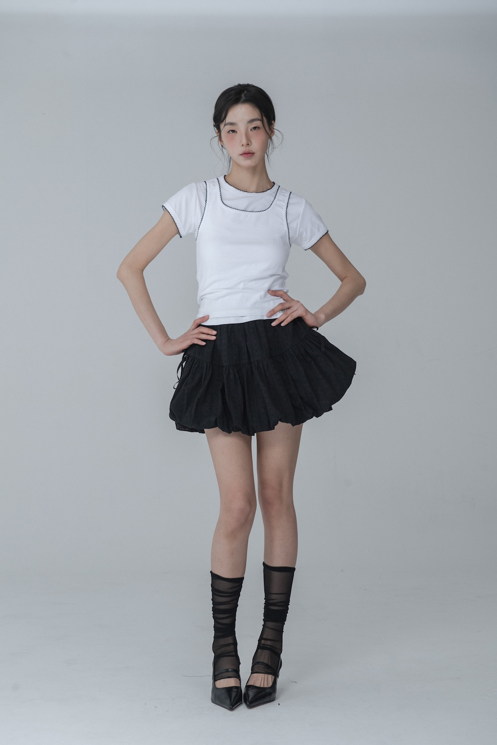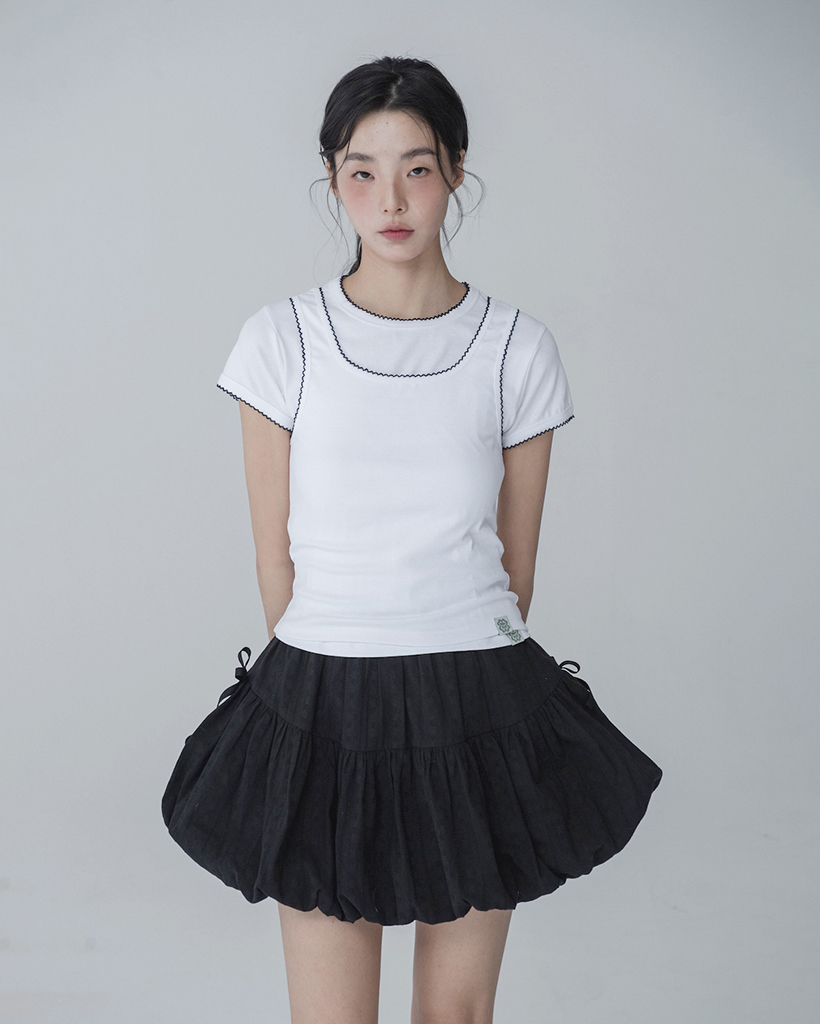 BUBBLE LAYERED SLEEVELESS & TSHIRT SET_WHITE NAVY