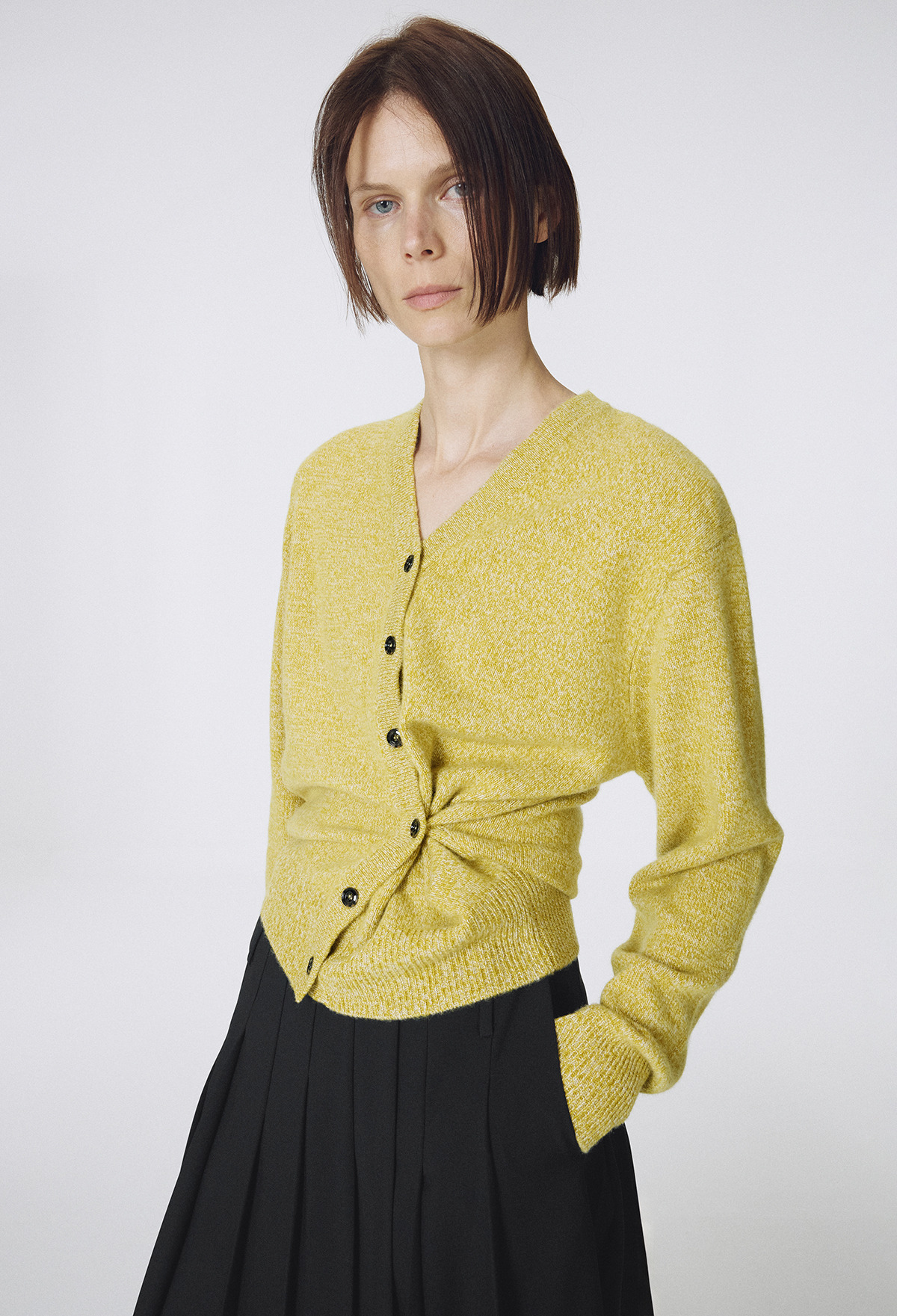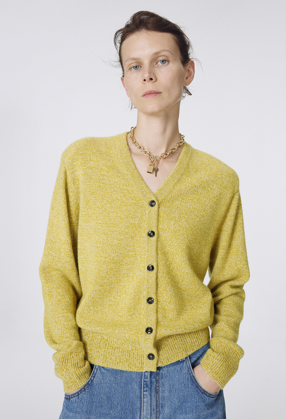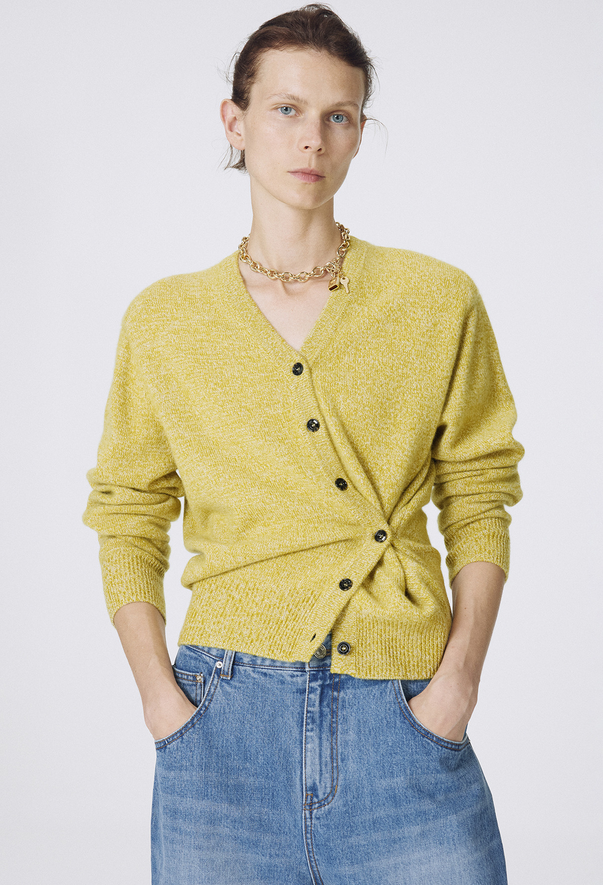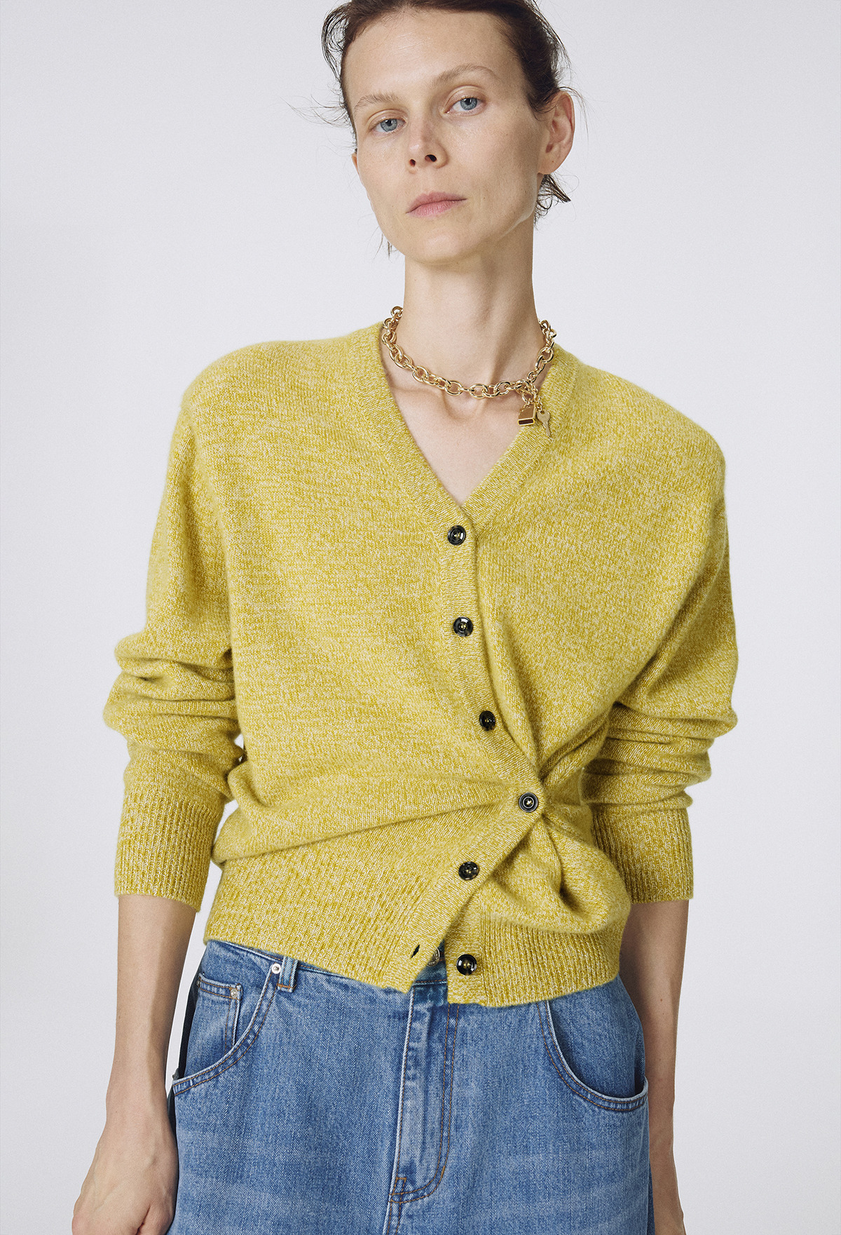 Cashmere Padded Cardigan Melange Olive