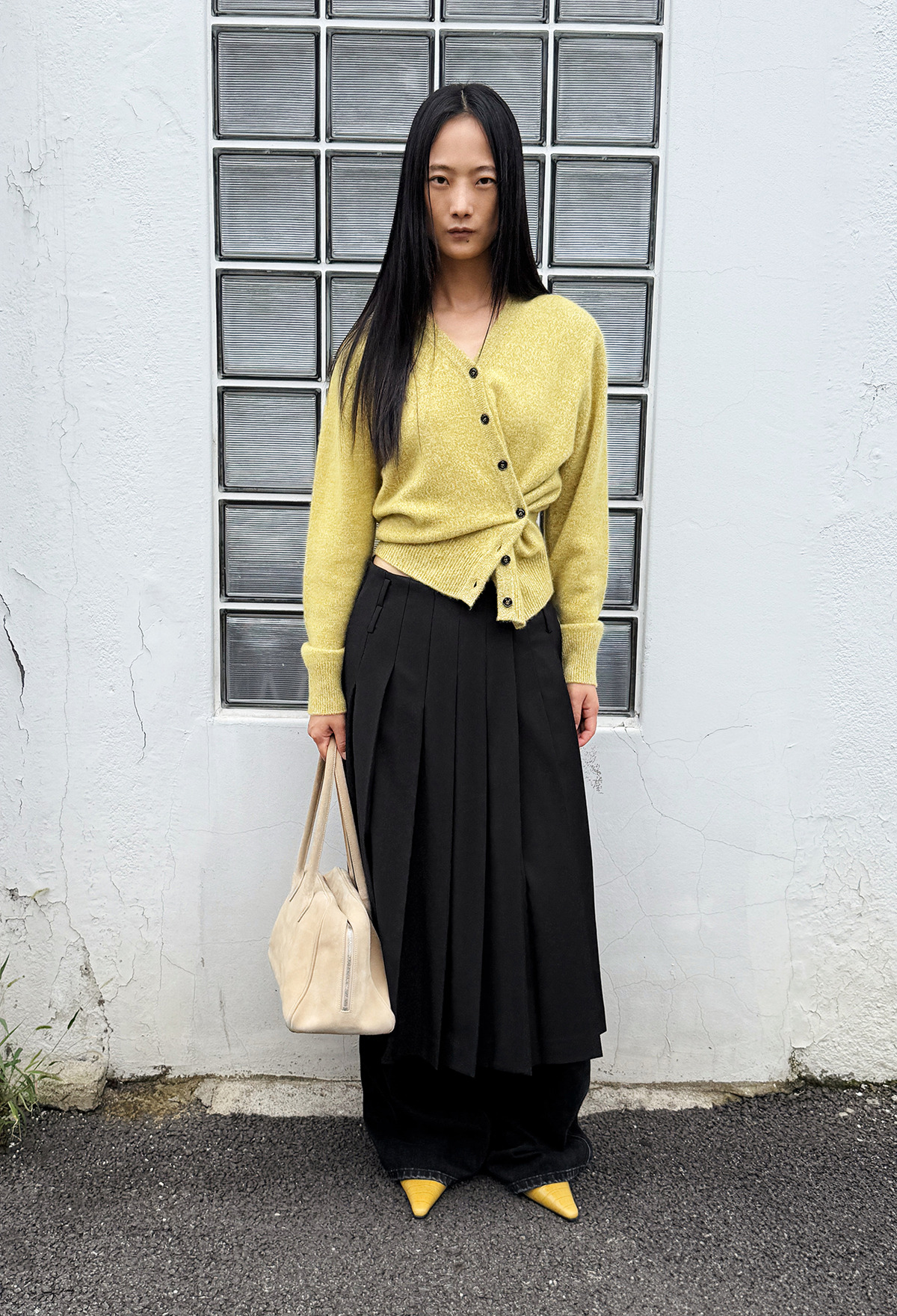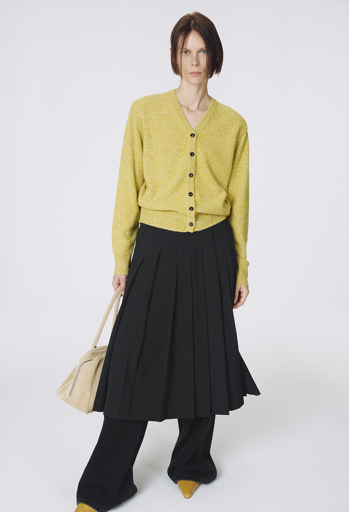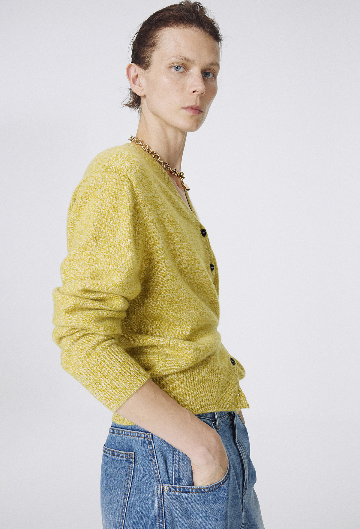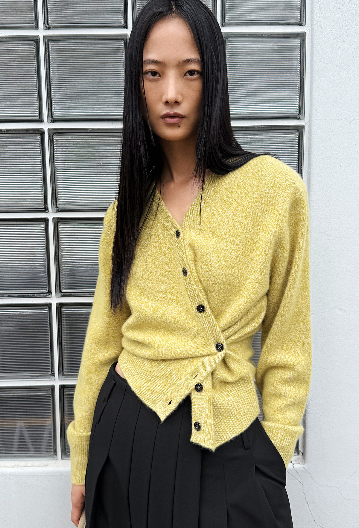 Cashmere Padded Cardigan Melange Olive