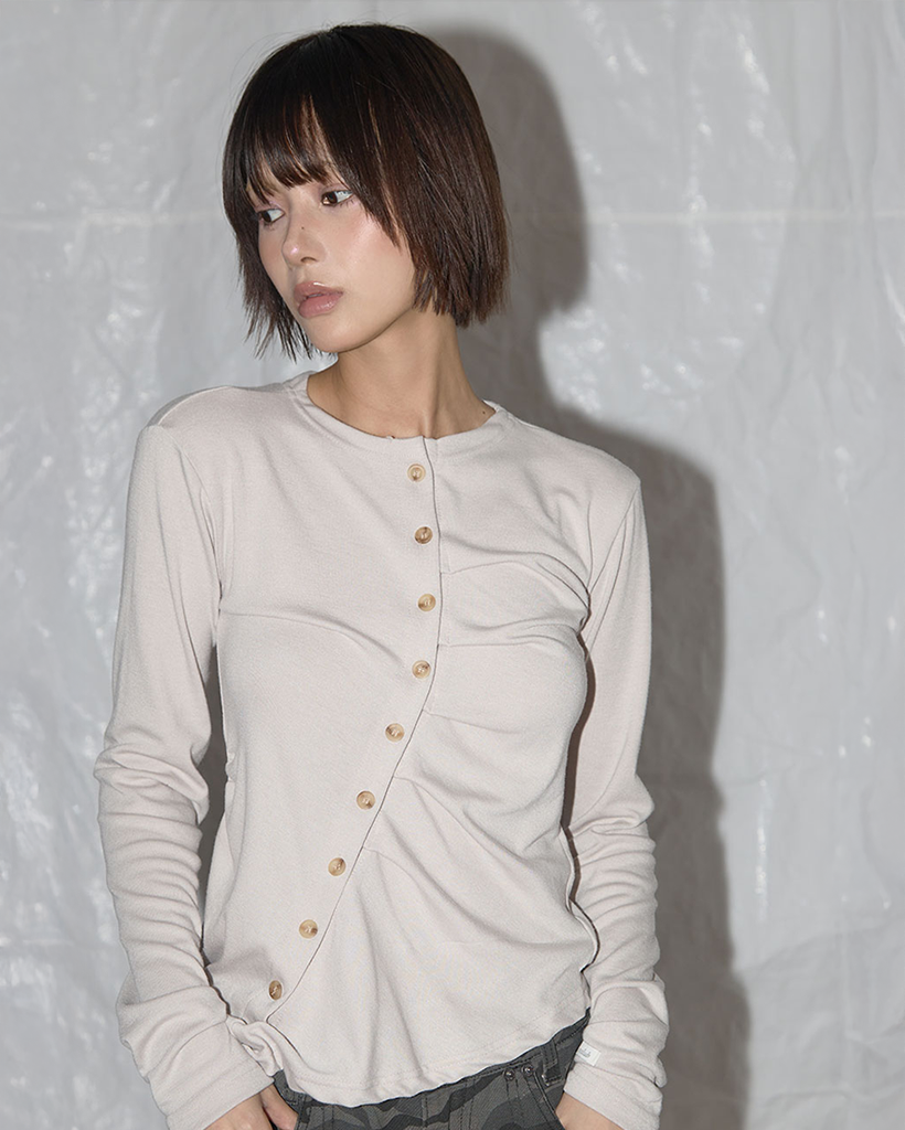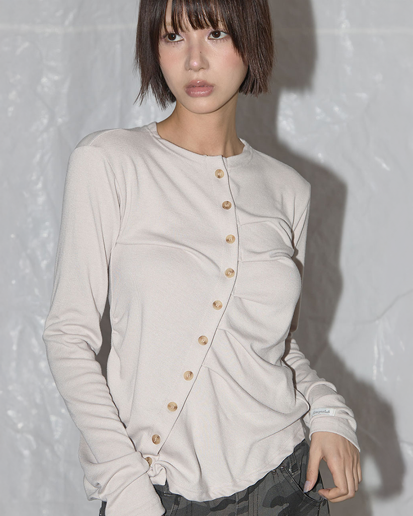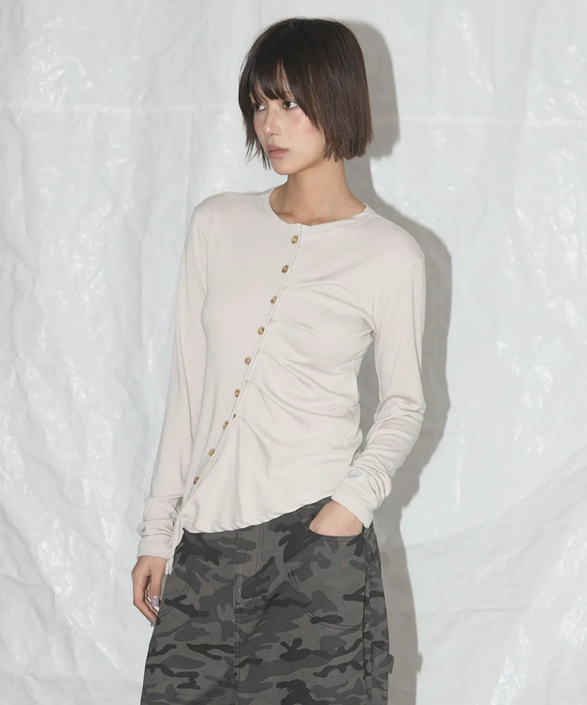 [Influencer pick] Unbalance Shirring Cardigan (Beige) F25QB076