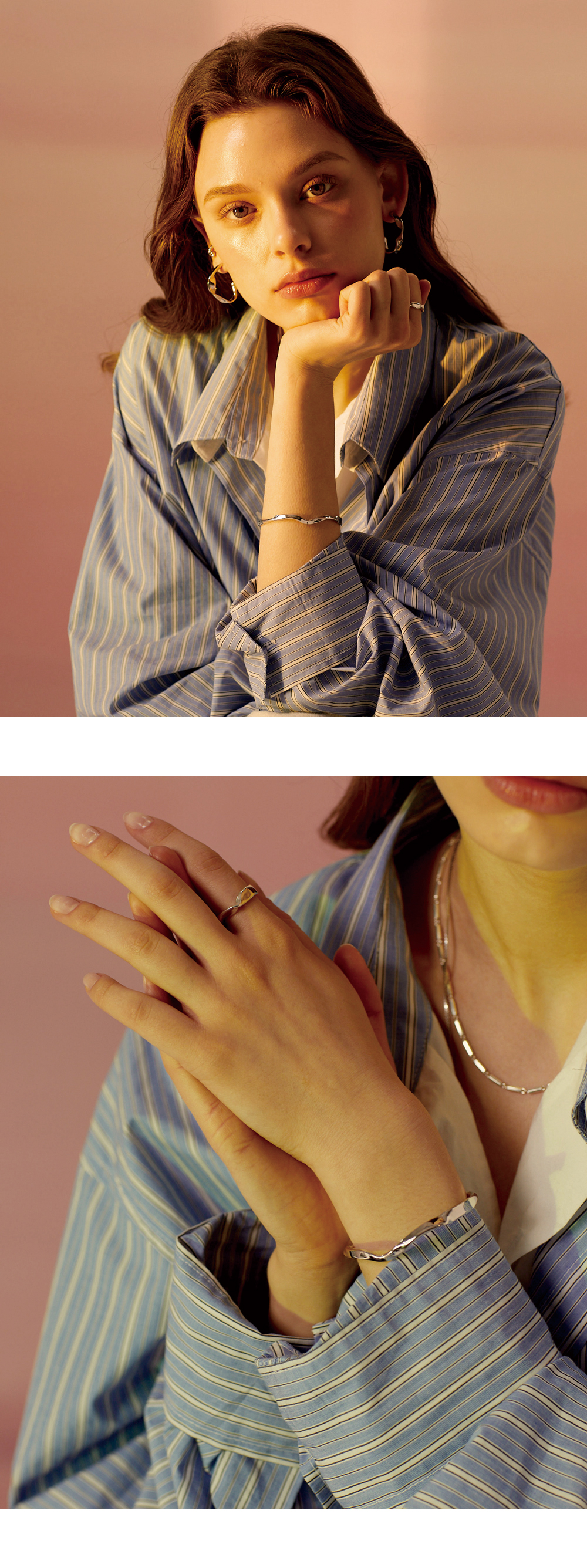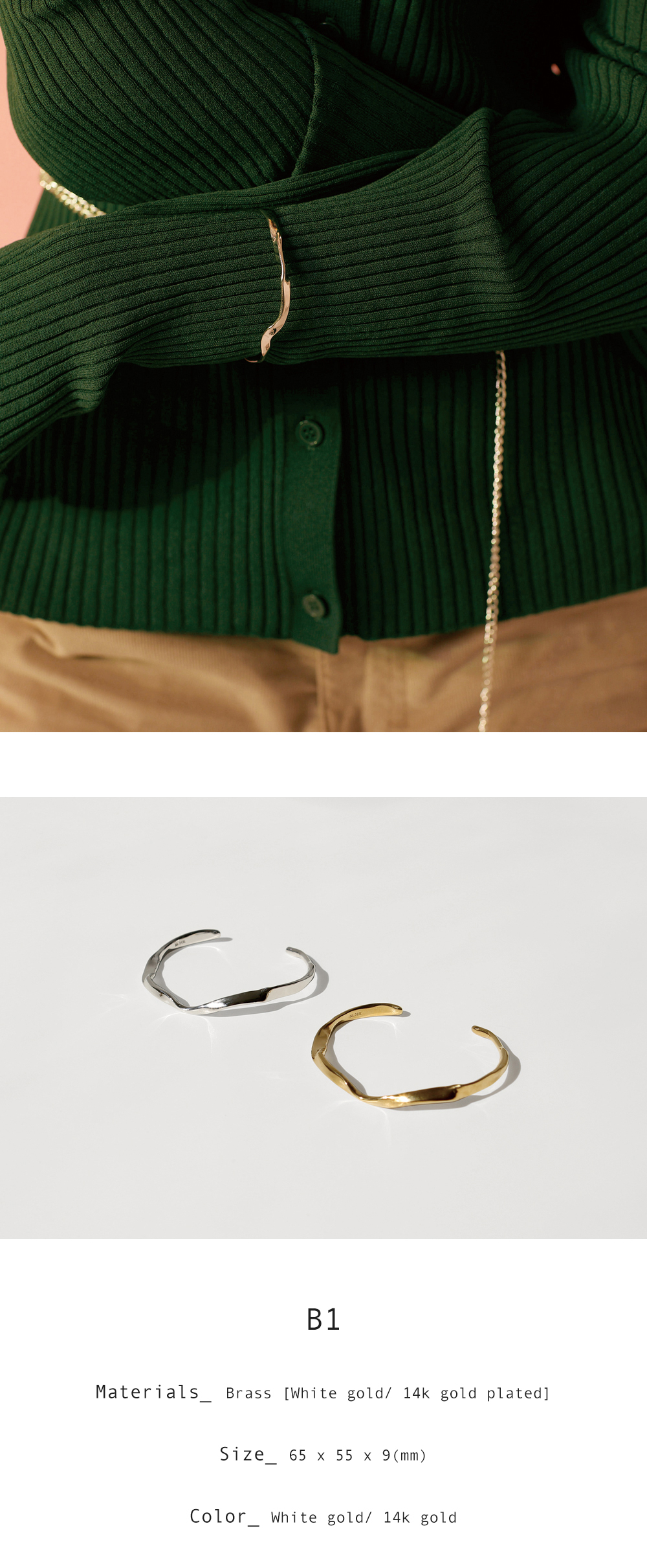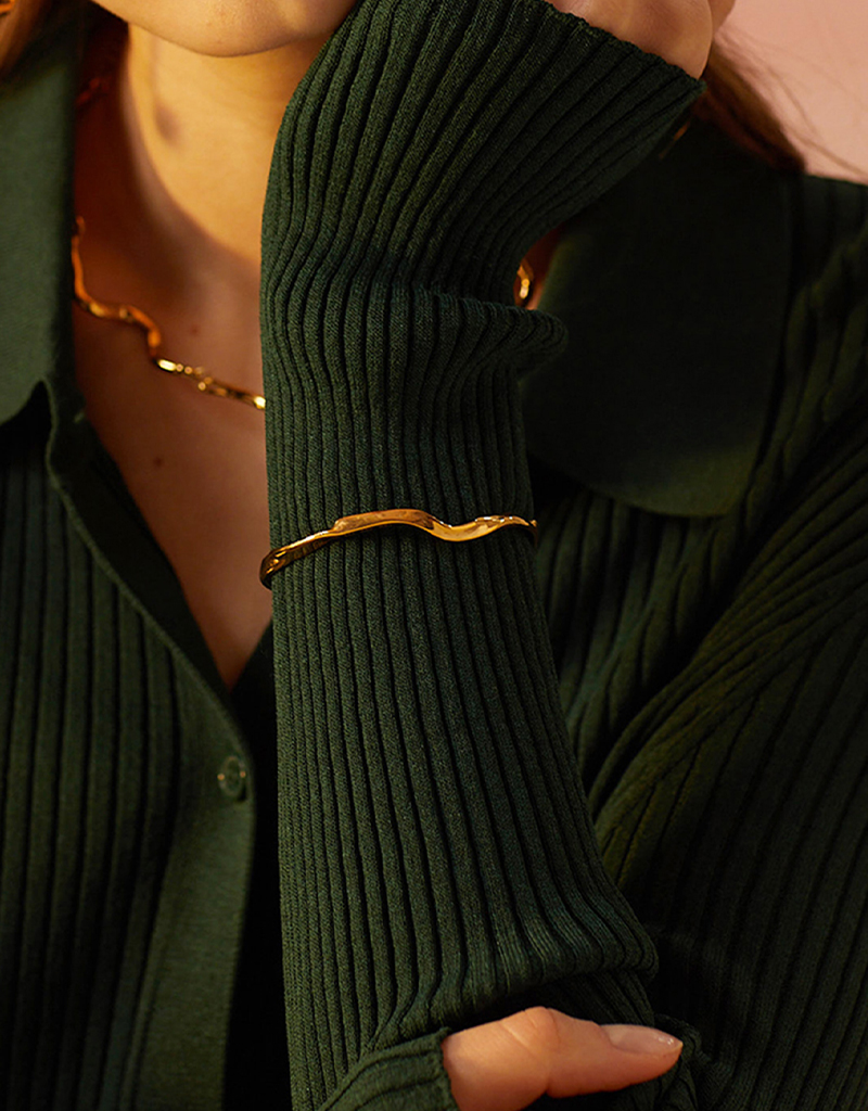 揺らめきを思わせるカーブがなめらかに腕に沿うデザインで、シンプルさの中にユニークさを感じさせます。