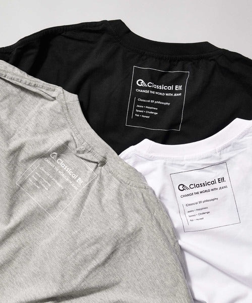Classical Elf オーバーサイズ ロング丈バックプリント無地クルーネックロゴビッグTシャツ(半袖) cl3003