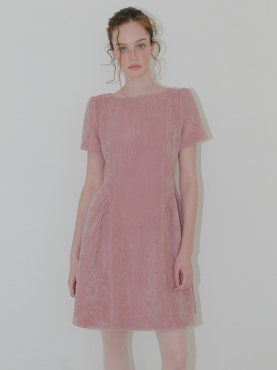 Shirring Flare Mini Dress, Pink