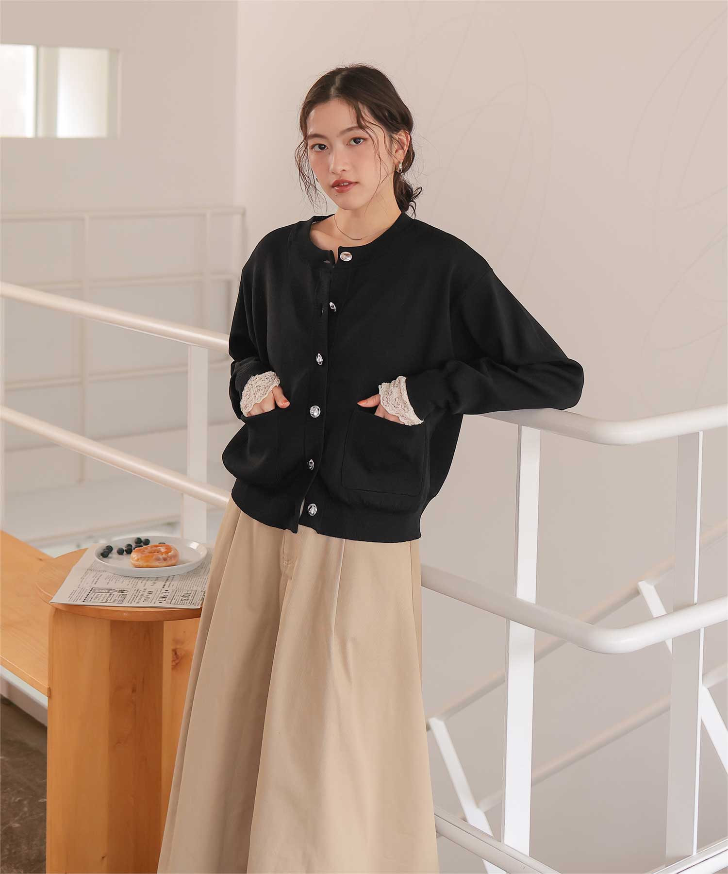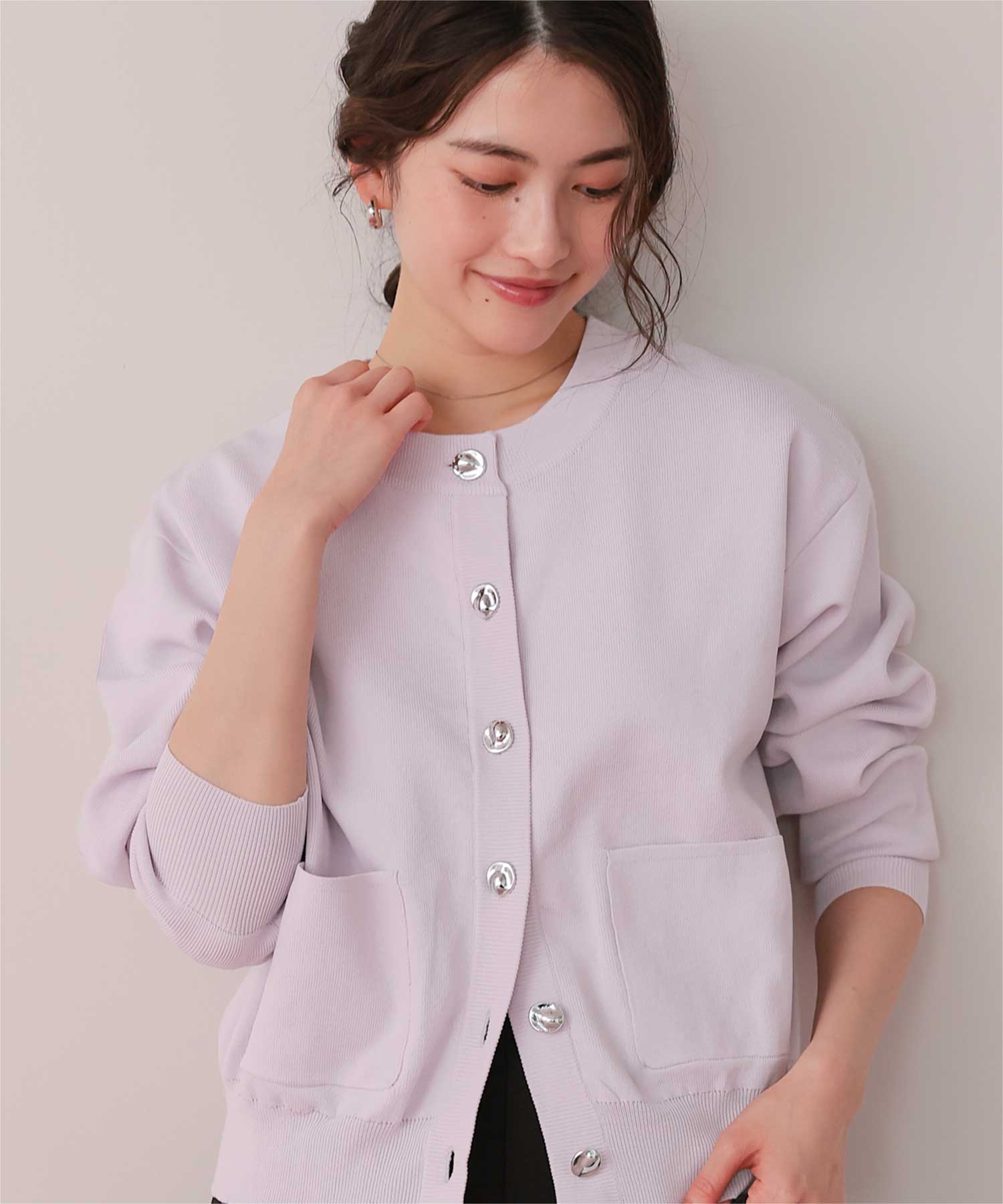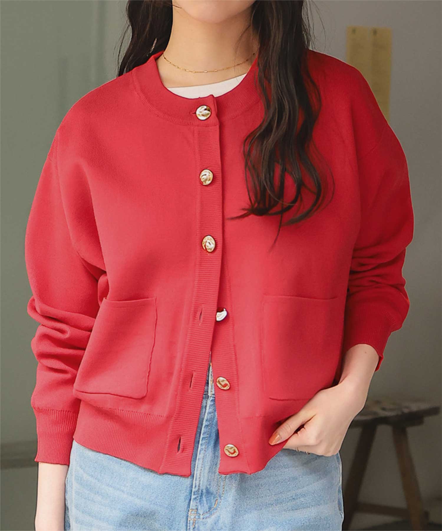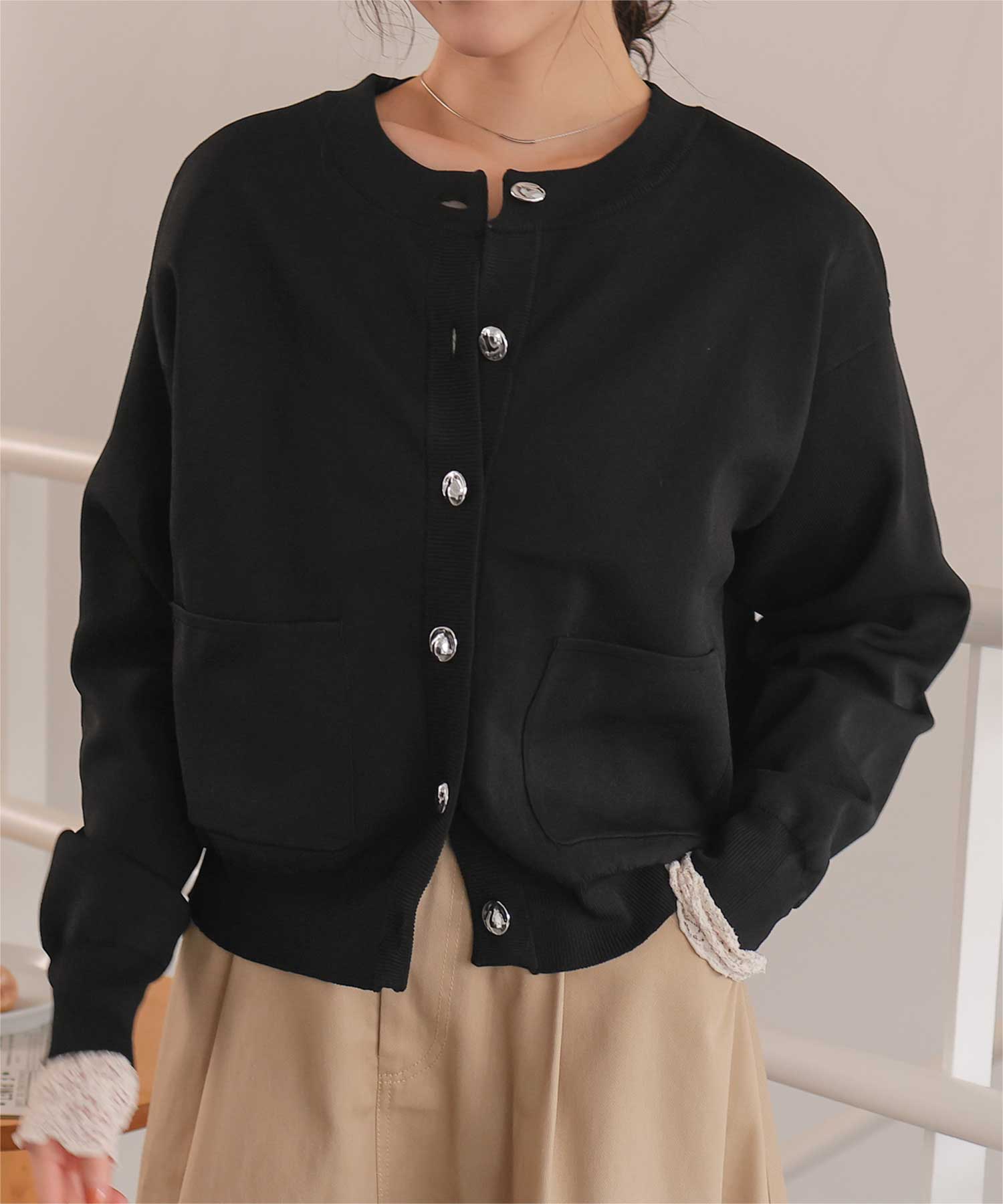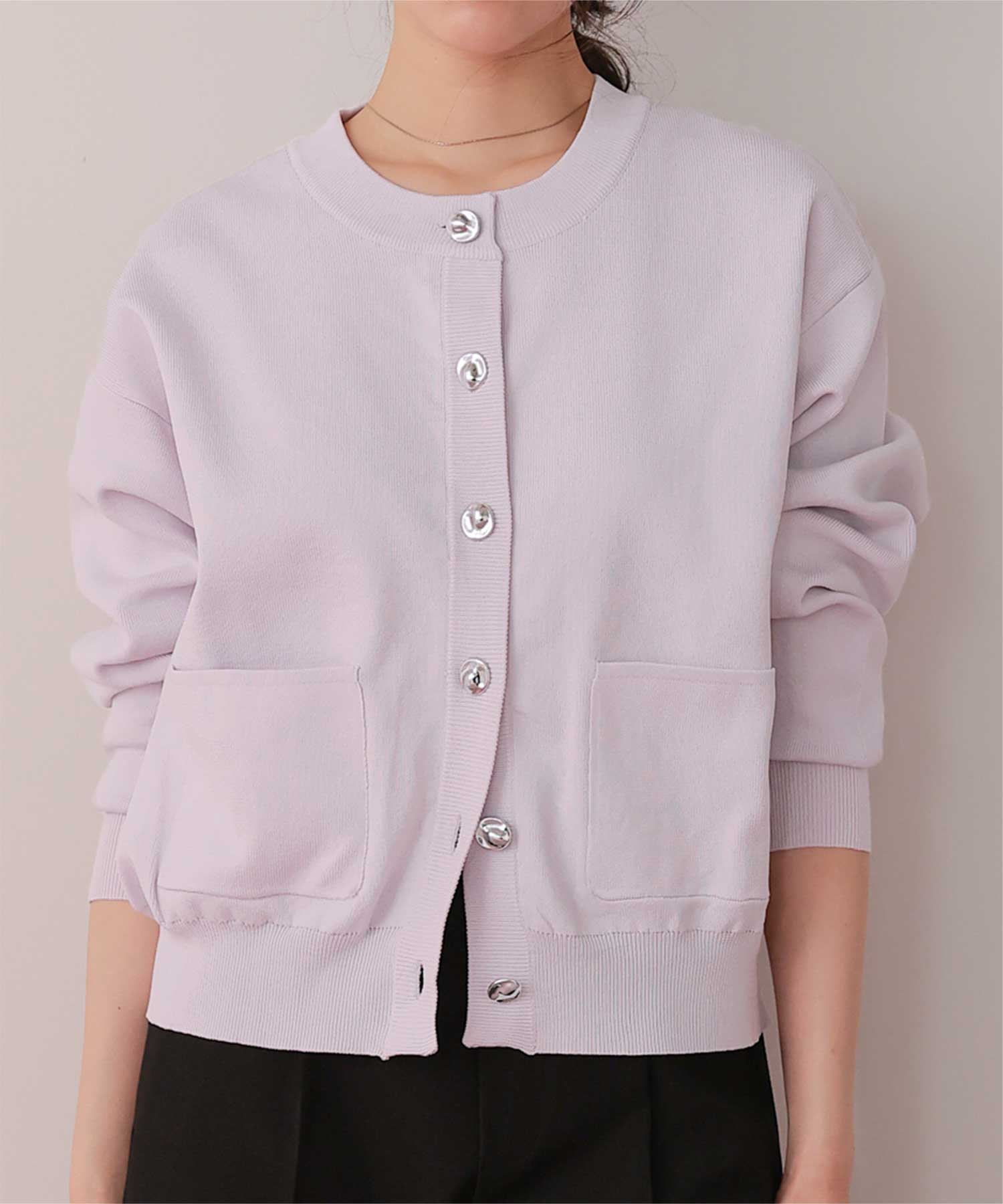 デザイン釦ポケットニットカーディガン