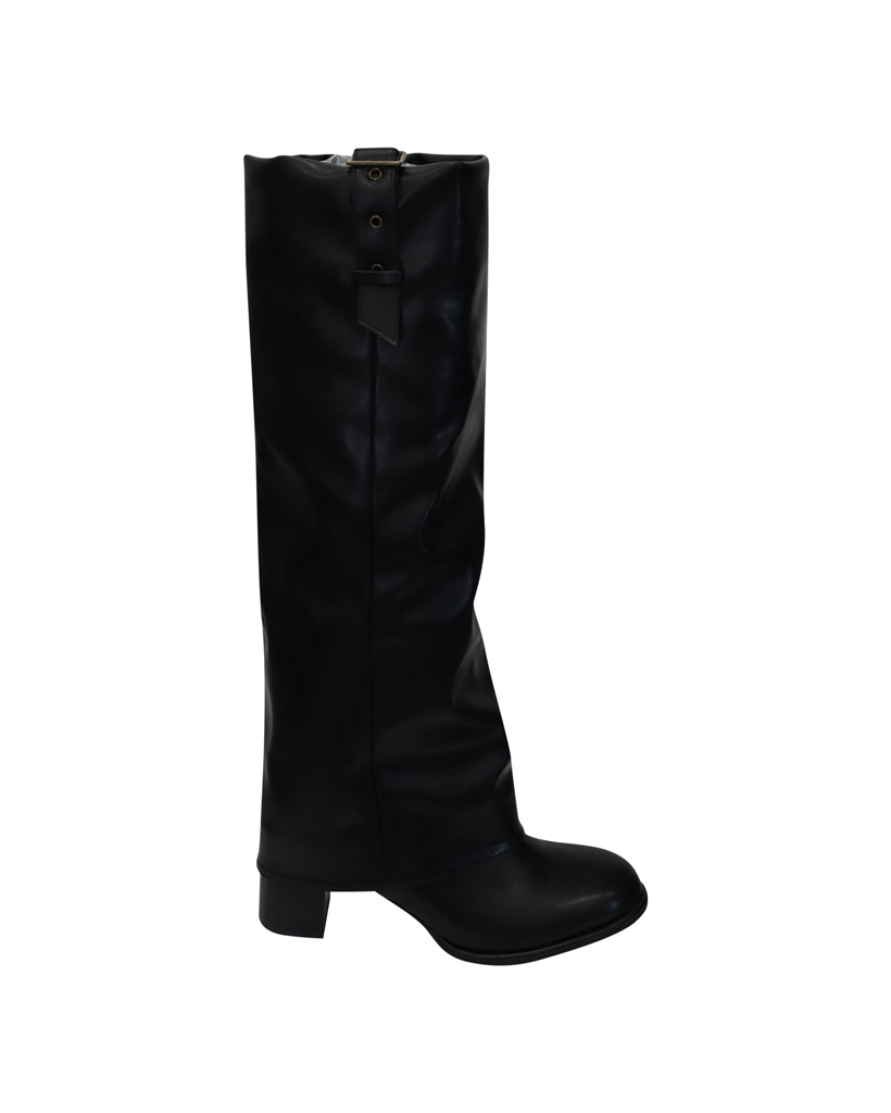 RUSTY BUCKLE TUCKED LONG BOOTS_BLACK