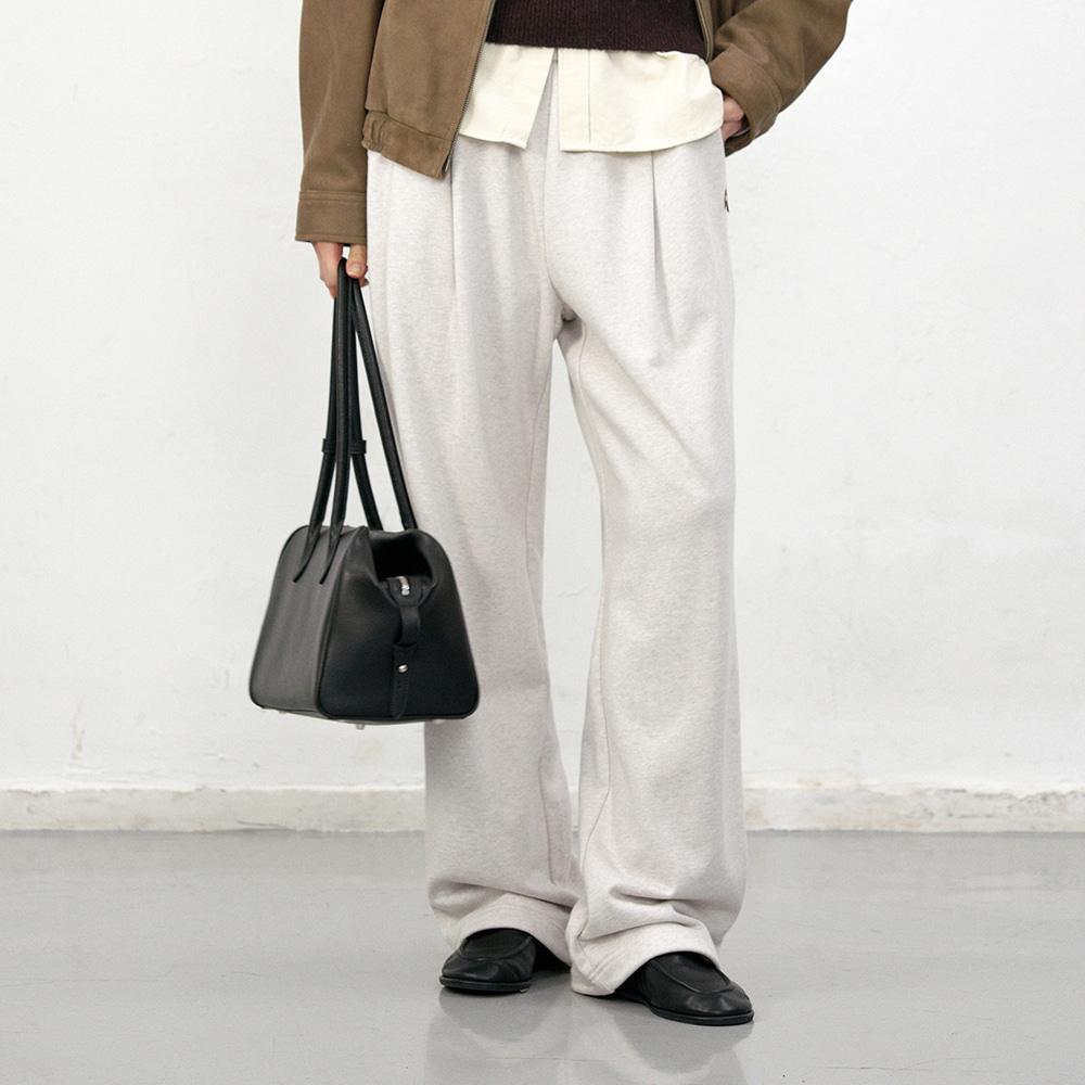 UNISEX LEATHER LOGO WIDE SWEAT PANTS OATMEAL MELANGE_UDPA5C102I1