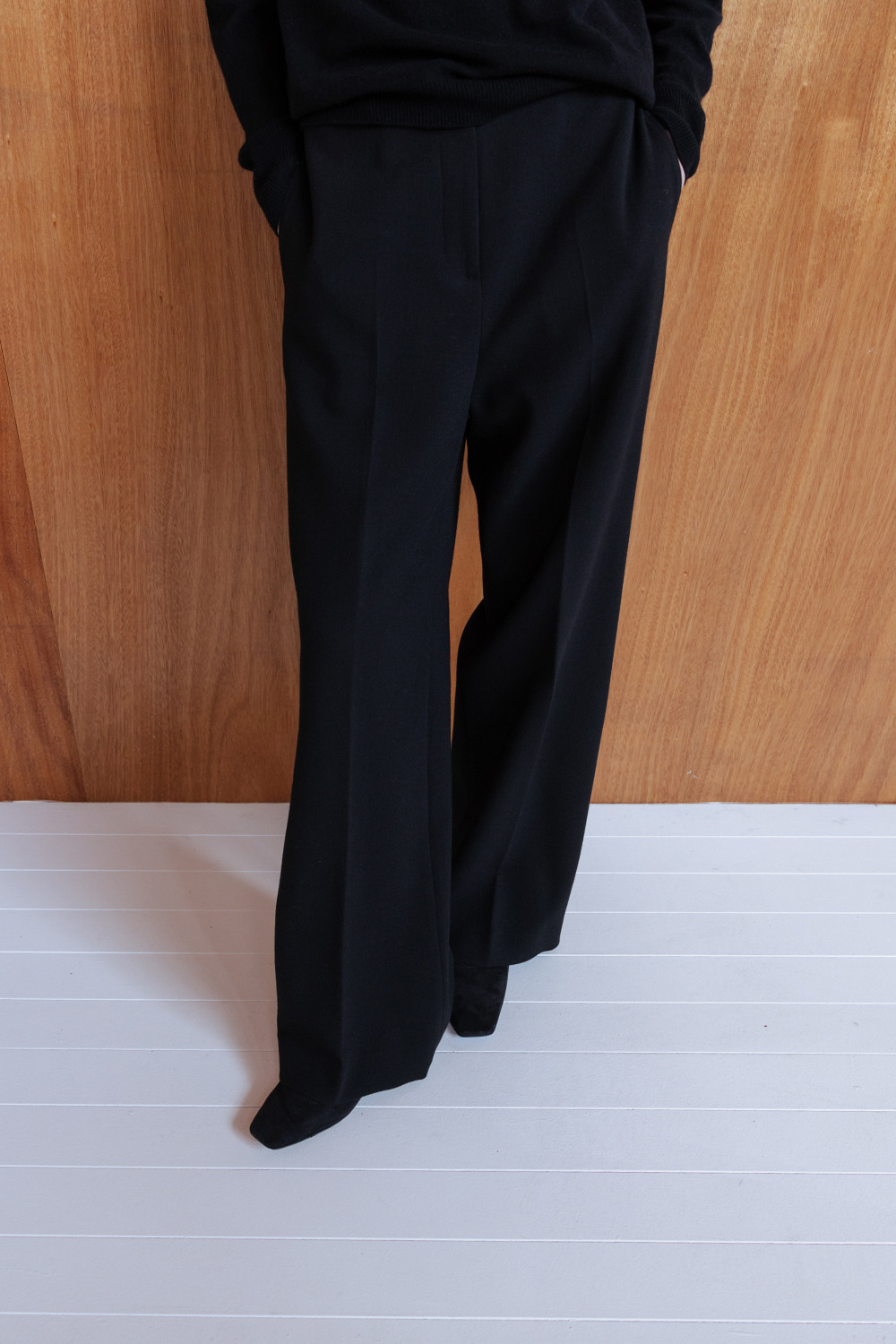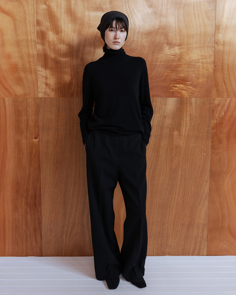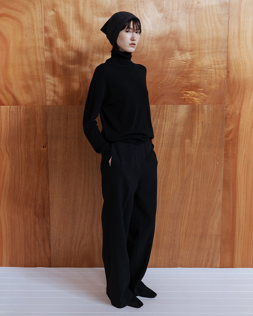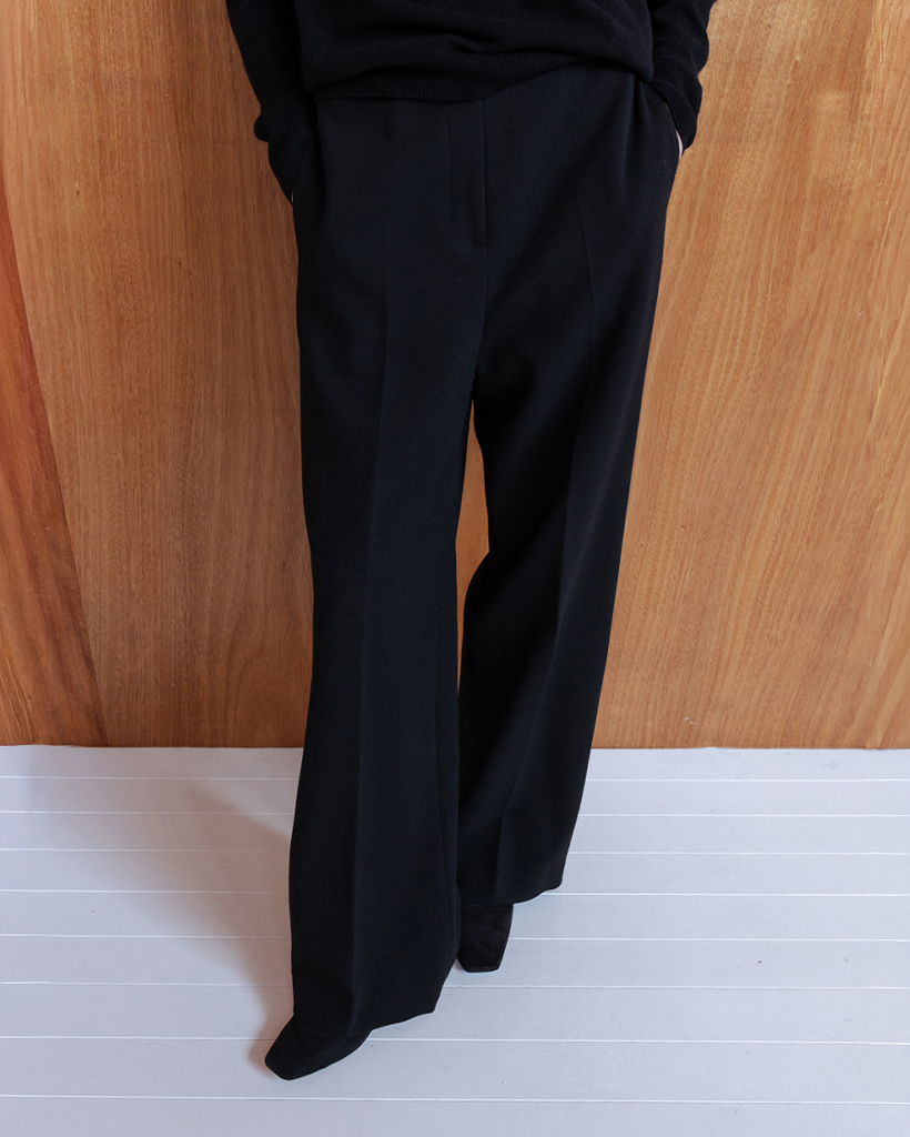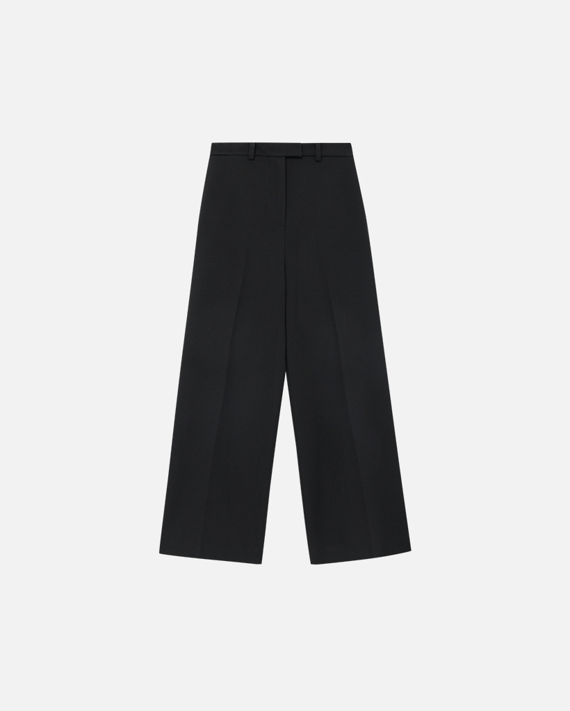 WOOL BLEND SEMI WIDE TROUSERS - BLACK