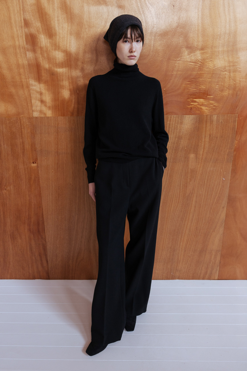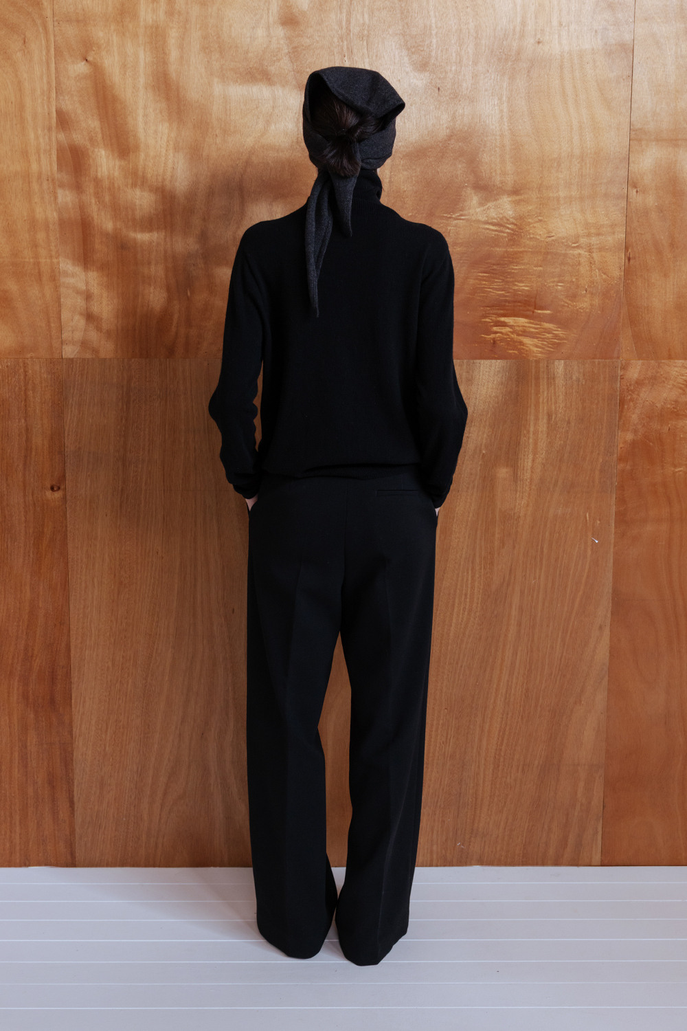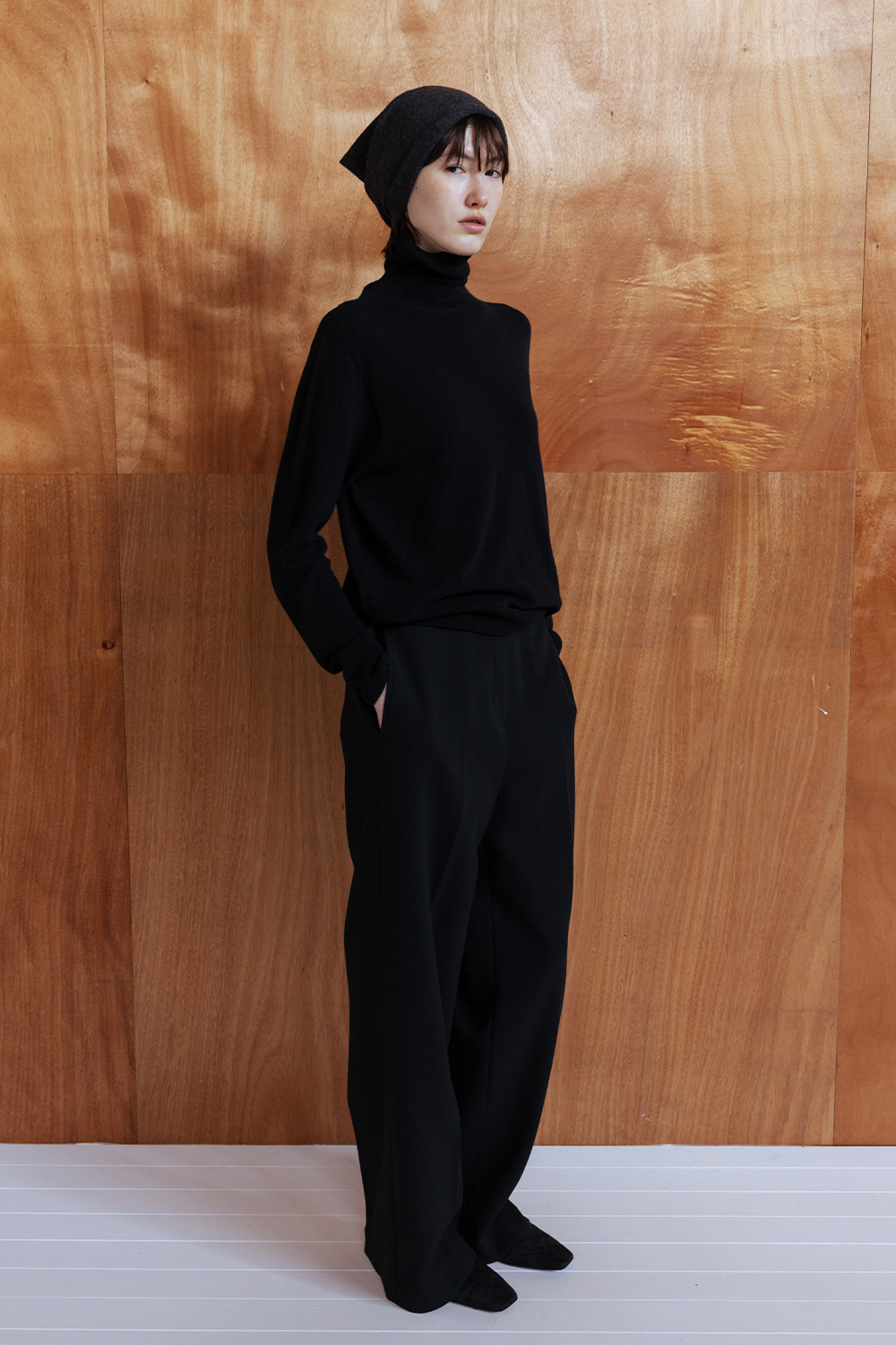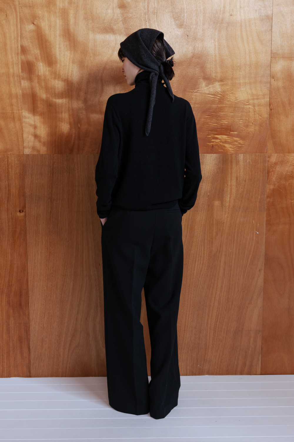 WOOL BLEND SEMI WIDE TROUSERS - BLACK