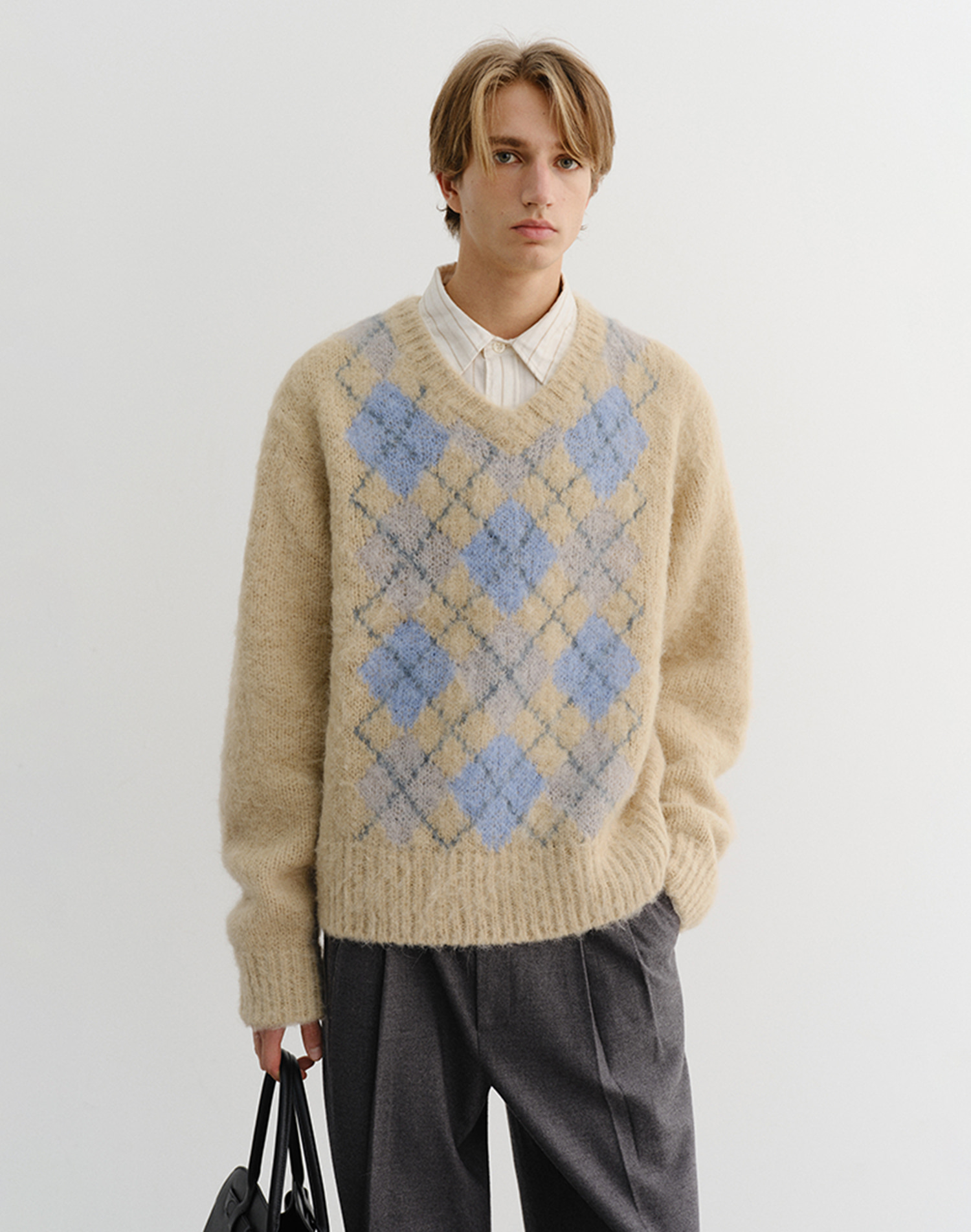 UNISEX BABY ALPACA ARGYLE SWEATER IVORY BEIGE_M_UDSW5D123I2